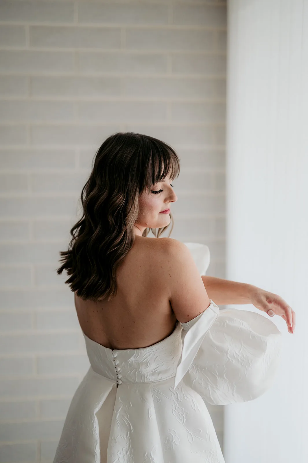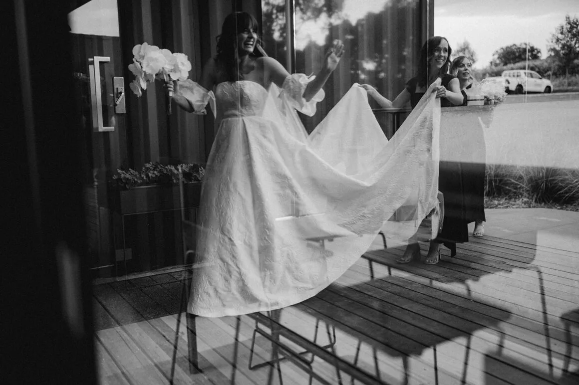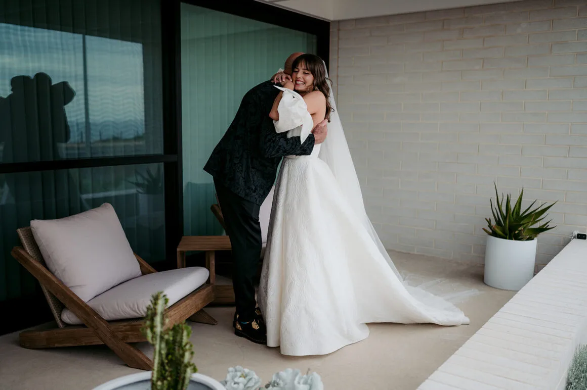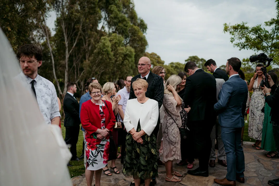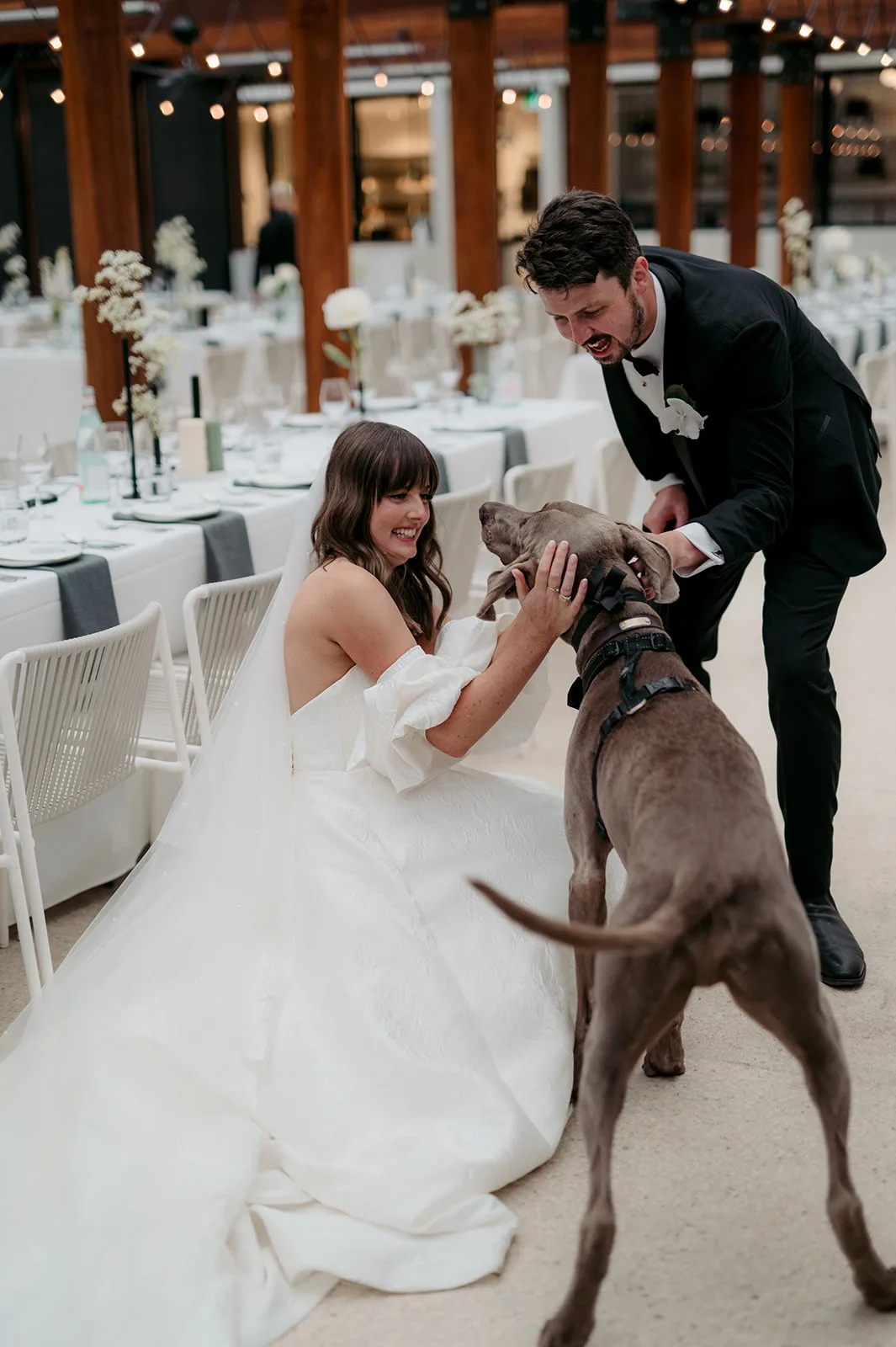 “Mitolo Wines was exactly the style of venue I wanted,” shares the bride, who wore a Sassi Holford gown paired with stunning Dove Grey Bridal earrings. “The backdrop of the vineyards, hills, and ocean in the distance that I’d grown up with as ‘home.’”