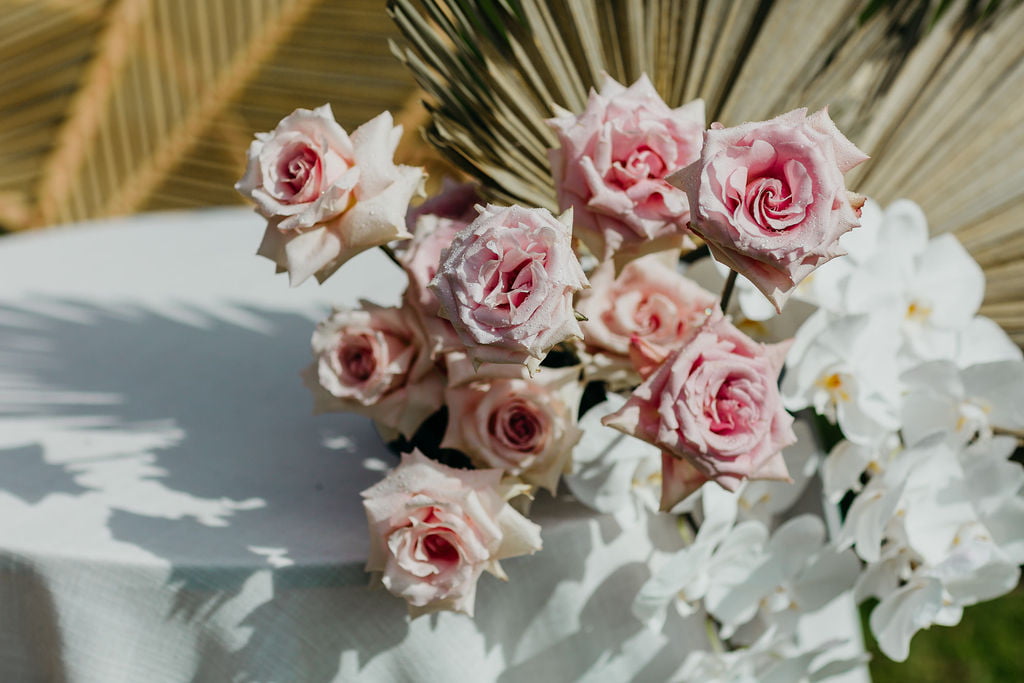 THE VIBE “The vibe was modern, stylish and a bit extra with neutral tones – browns, peach, pink, white and gold. We had lots of lovely textures with the furniture and styling – cane, wood, perspex, foliage, dried ferns, neon etc. This was all thanks to stylist extraordinaire Dani from The Make Haus.”