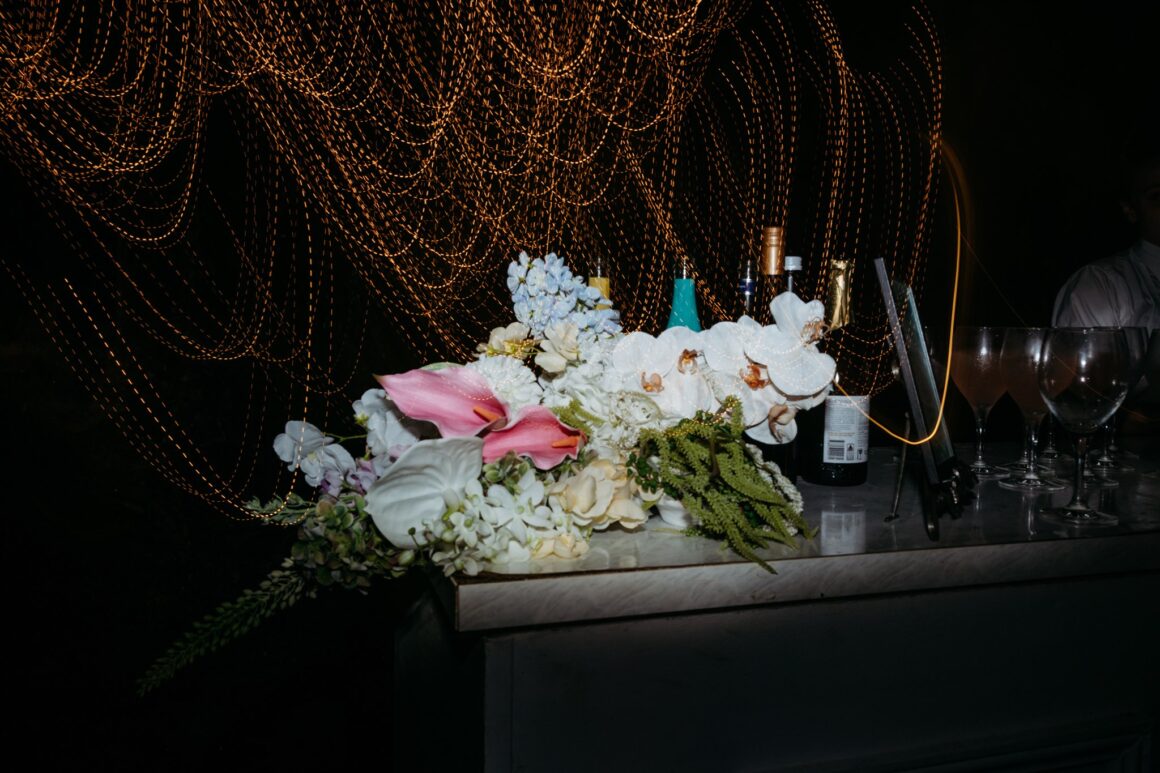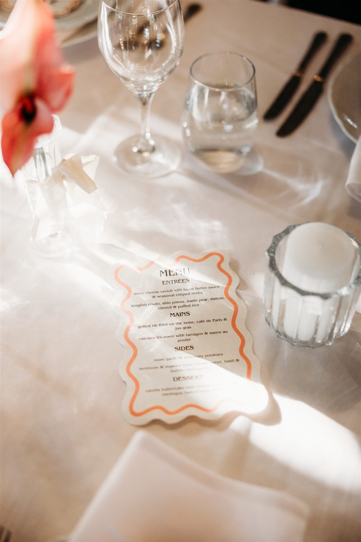 “I loved our reception table decor that Laurence and his groomsmen actually set up on the day. I spent hours hand gluing individual pearls and tying ribbons onto faux flowers (Sonder + Stone Boutique) and candle sticks and tying ribbon details and it was so special seeing the vision come to life. We also used candle sticks that were my late great grandmothers and my parents’ champagne glasses from their wedding.”
