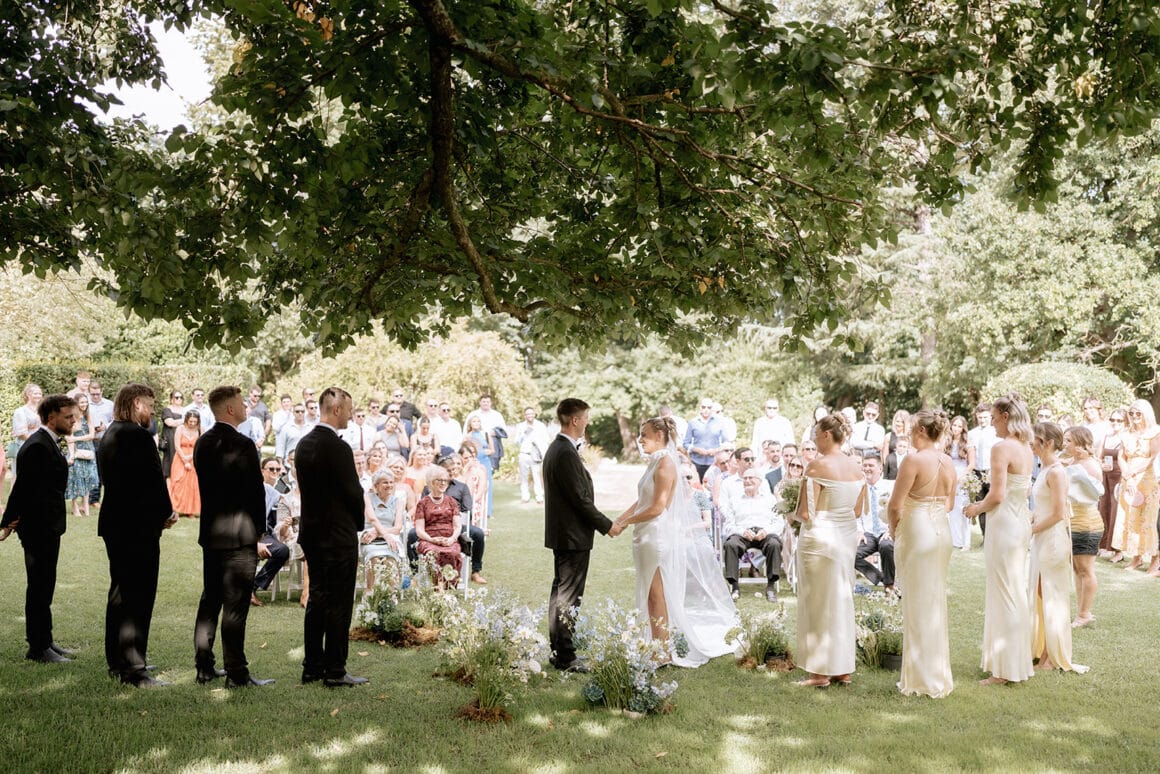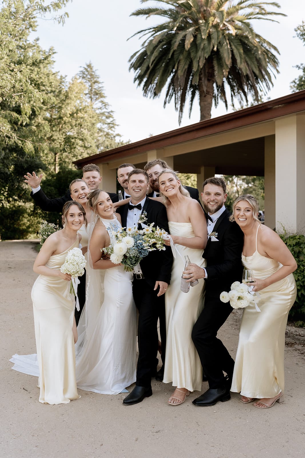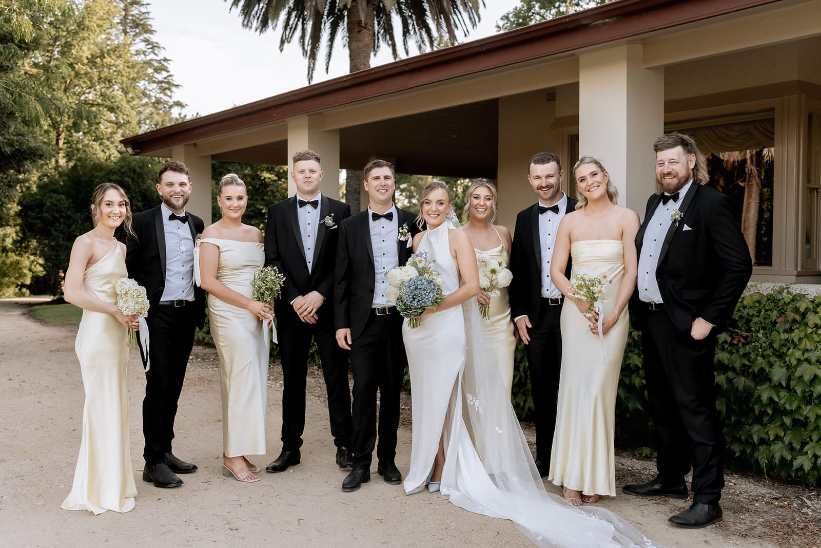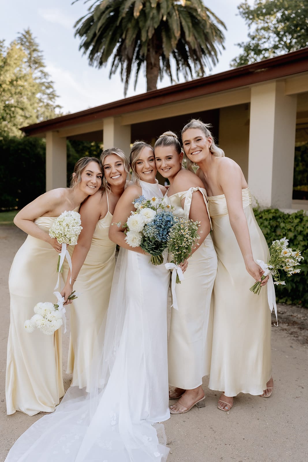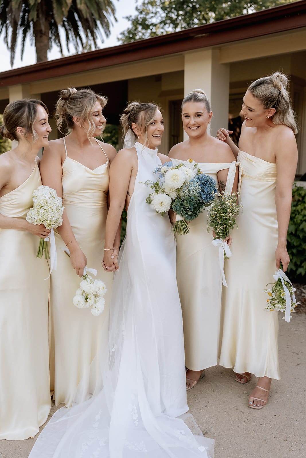 Saying “I do” at the stunning Mewburn Park Homestead, Emily and Liam opted for an Amalfi Coast-inspired celebration – “Limoncello Spritz on arrival, an oyster bar, butter yellow bridesmaid dresses, flowers with pops of blue, and cannolis instead of a cake to top it all off”.