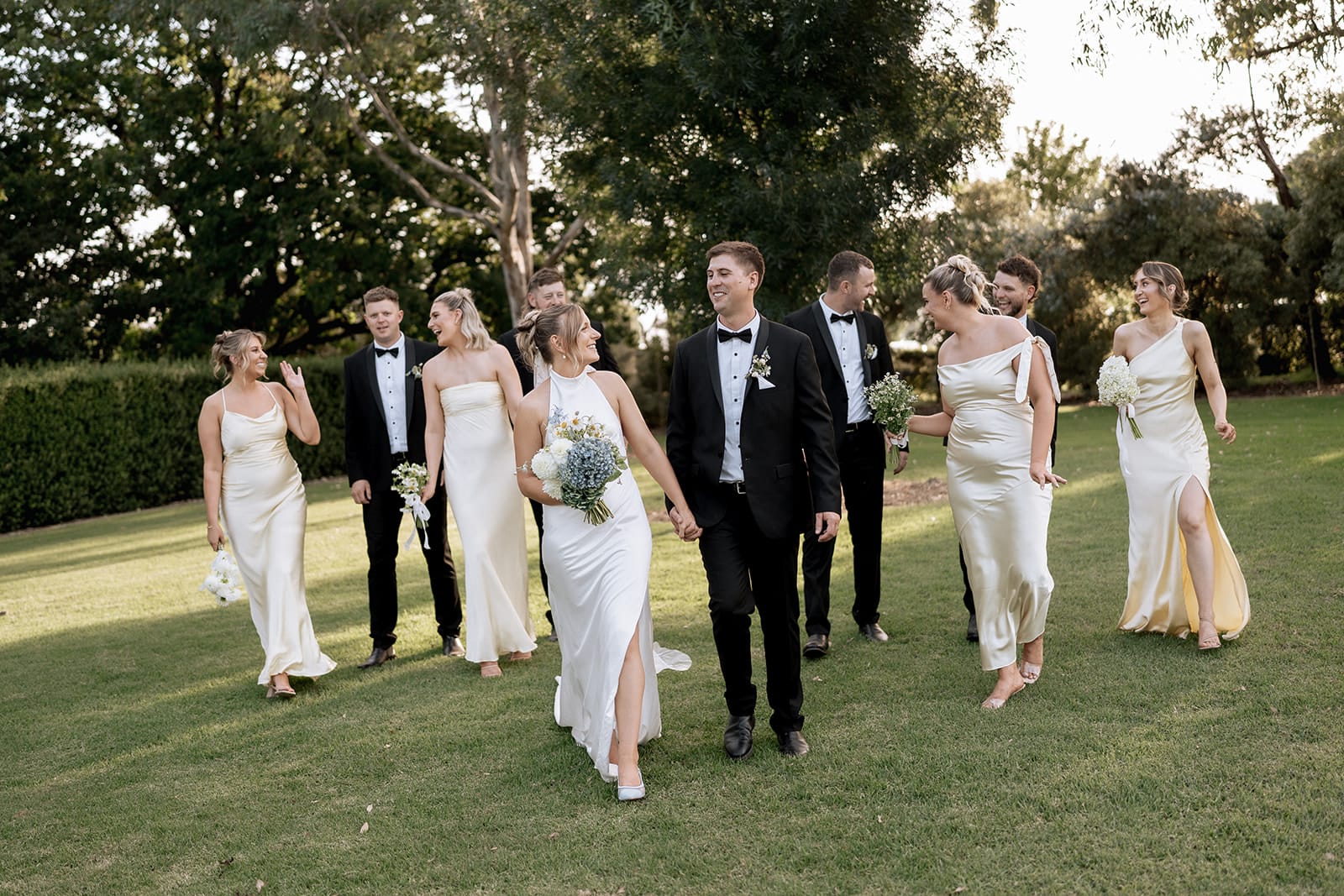 CONTRIBUTING VENDORS Photographer Samantha Elizabeth Event Planner & Stylist Forethought Weddings Florist Pepperberry Flora Stationery & Signage State of Elliot Ceremony & Reception venue Mewburn Park Homestead Catering The Criterion Hotel Sale Cannolis Mavros Deli Wedding Favours Boozie’s Entertainment DJ Nige and Kombi Celebrant Kellie Eddy Celebrant Rings Louise Jean, Kuzzoi Transport Dyson Buses Grazing Table The Gippsland Grazer THE BRIDE Bridal Gown Designer Grace Loves Lace Veil Grace Loves Lace Flower CrownRobes The Whole Bride Shoes Siren Shoes Accessories Love Isabelle, Francesca Hair Chelsea from Blonde Hue Makeup Zara from The Makeup Hub Fragrance SŚAINT PARFUM Bridesmaid Dresses Shona Joy, Billy J Bridesmaid Shoes Billini Bridesmaid Gifts Love Isabelle, The Whole Bride THE GROOM Suit, Shirt & Tie Dicksons Mensland Warragul Shoes R.M. Williams Grooming Ravens Barber Groomsmen Suits Dicksons Mensland Warragul