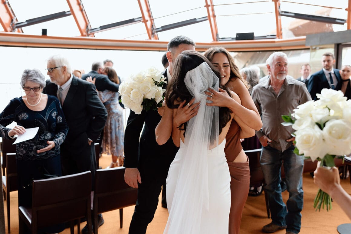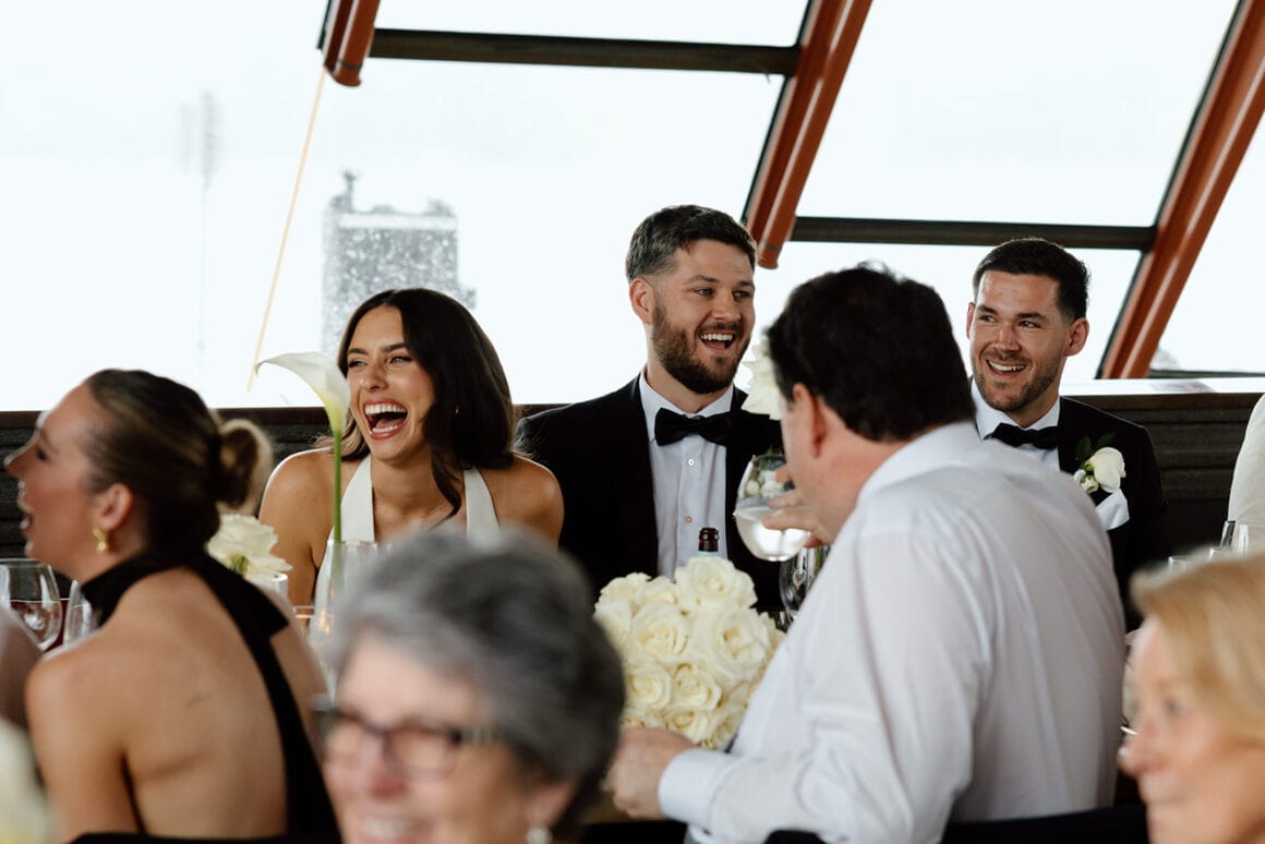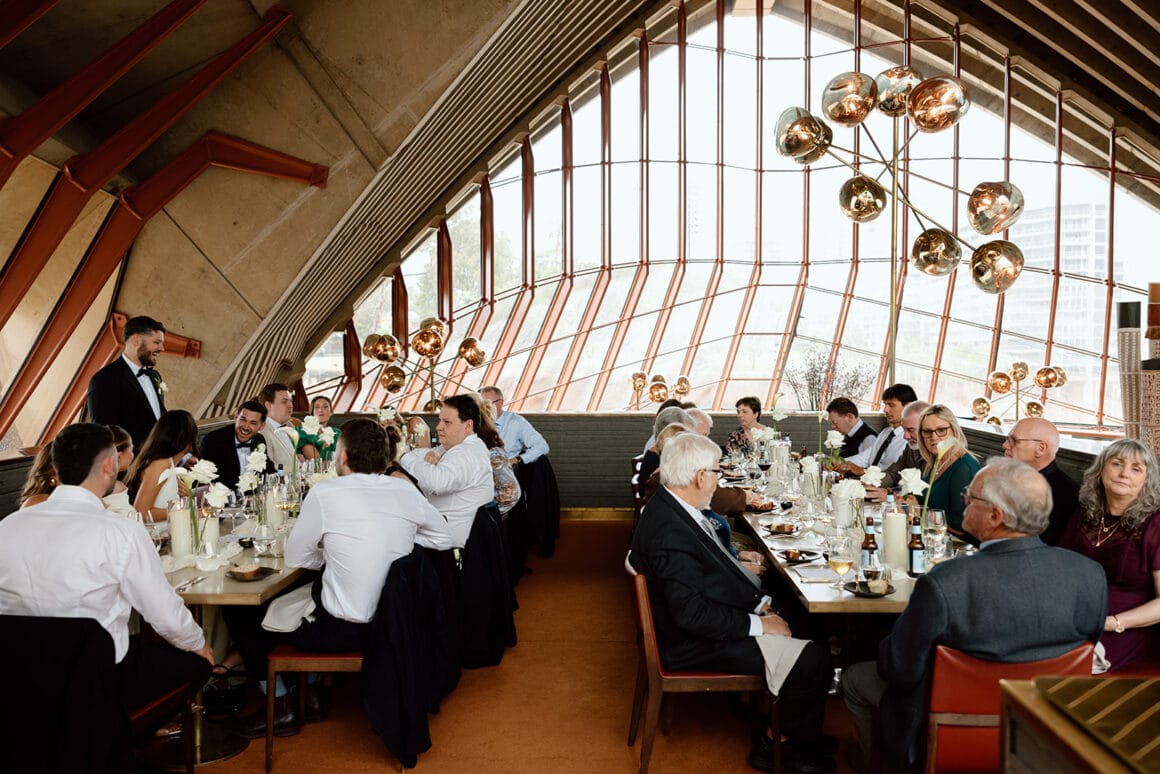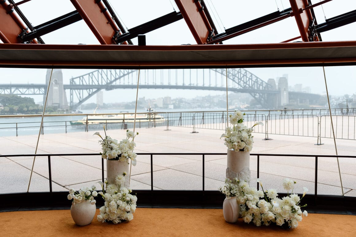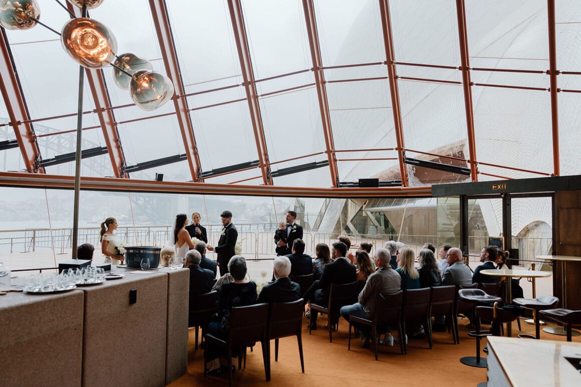 It was a rainy spring day in Sydney when Brendan, Erin, and 28 of their favourite humans sought shelter at Bennelong restaurant (within of the Sydney Opera House) to celebrate the lovers’ wedding.