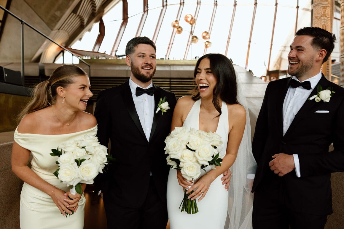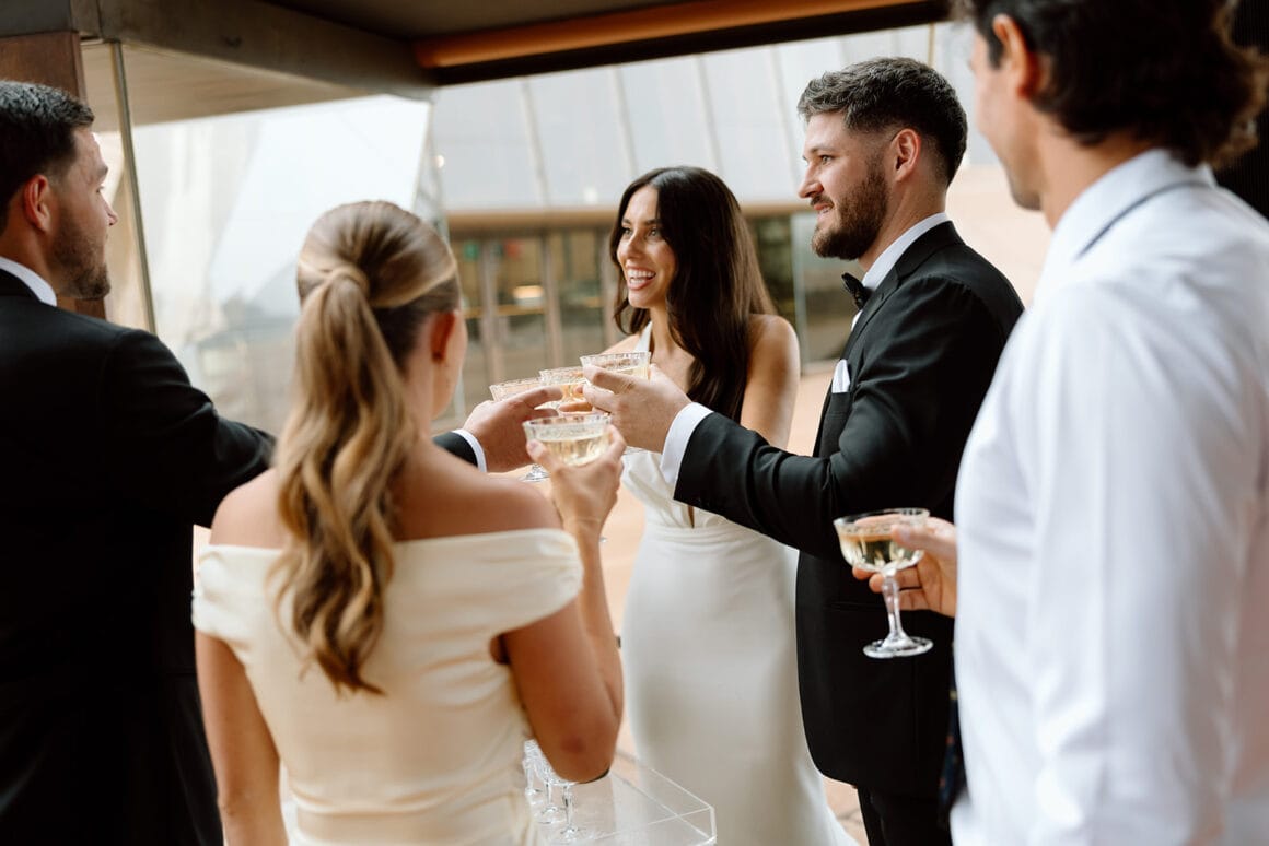 Photographer Matt Ashton Photography Cinematographer/Content Creator Captured By Jess Florist Peach Flower & Co Stationery DIY Venue & Catering Bennelong Restaurant Cake Maker Cake Bliss Hire Items The Pretty Table Entertainment Akustica Duo Celebrant Marry Me Michelle Rings Simon Curwood Jewellers THE BRIDE Bridal Gown Designer Made With Love Bridal Getting Ready Midnight Mischief Shoes ASOS Accessories Sarah & Sebastian, Mimco Hair Hannah Martin – HM Hair Fragrance/Perfume Dior via Myer Bridesmaid Dresses Bec + Bridge Bridesmaid Gifts Sarah & Sebastian THE GROOM Suit & Tie InStitchu Shoes Florsheim Groomsmen Suits InStitchu
