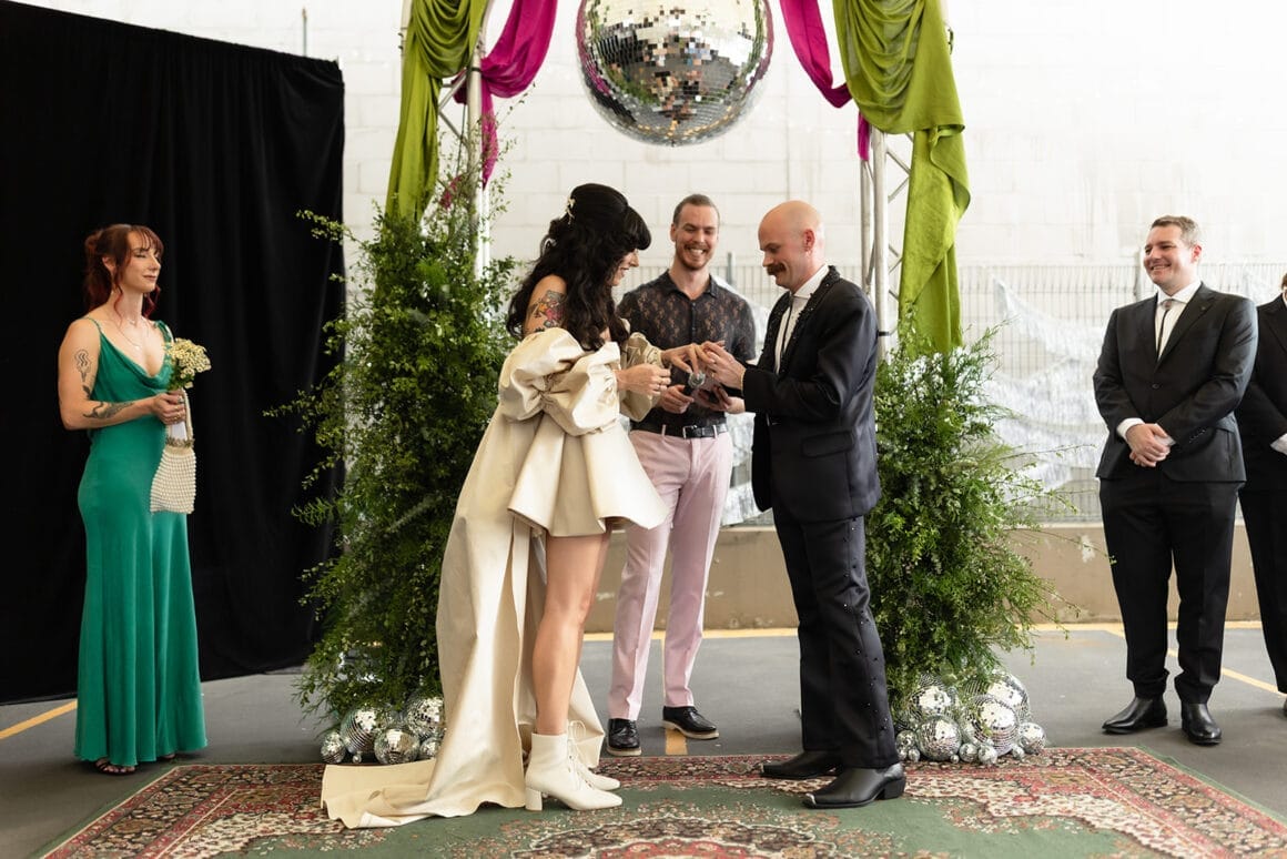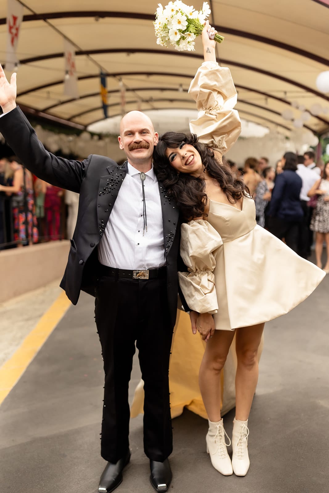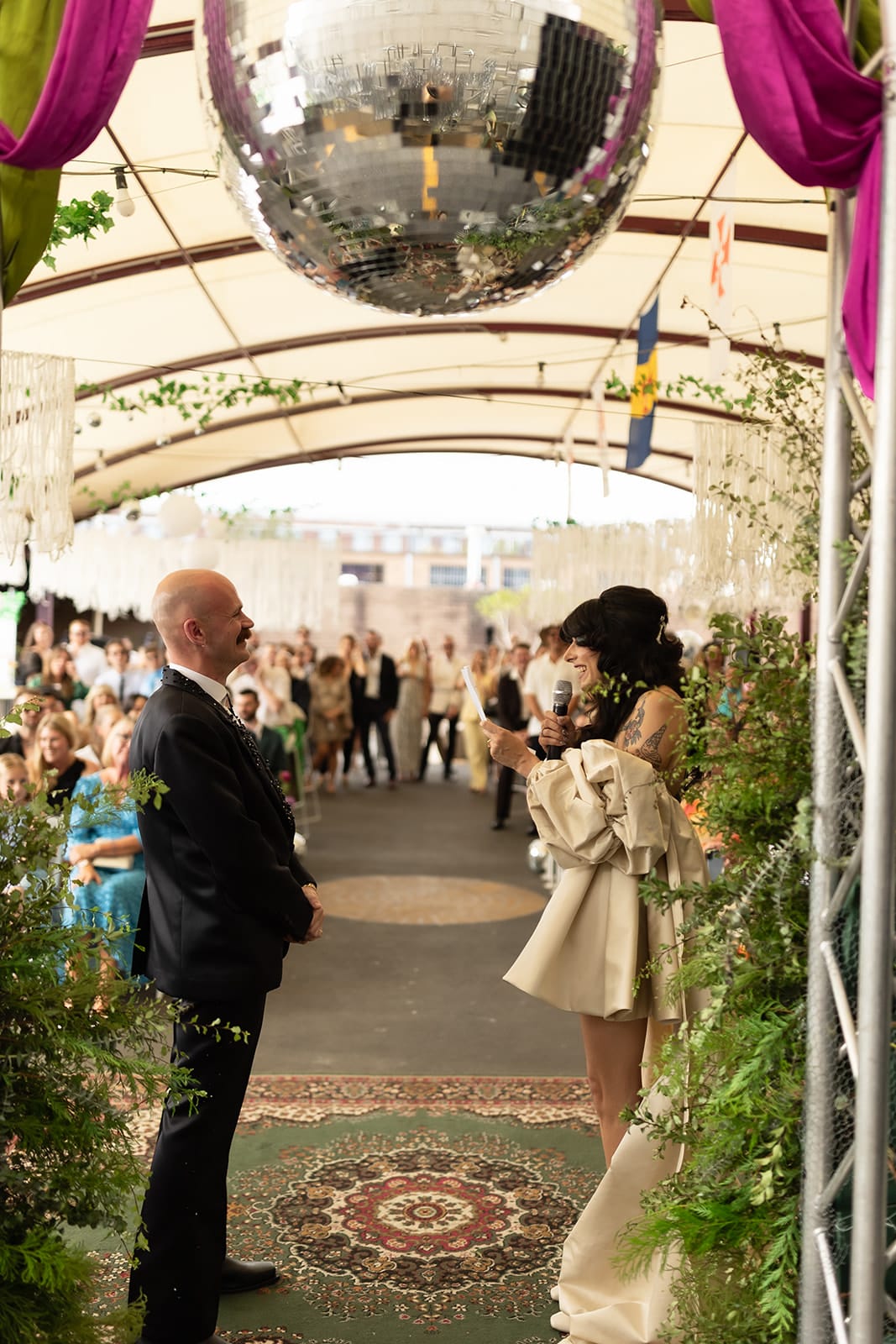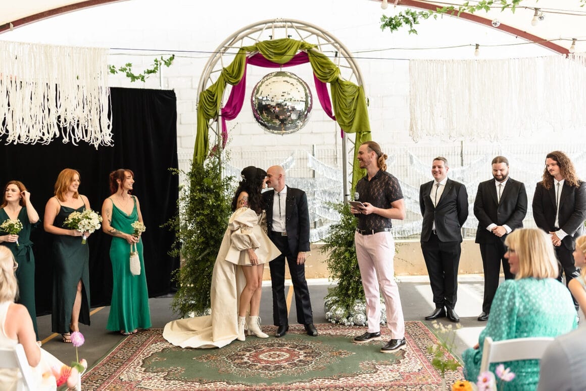 Fabiana and Alexander (aka Fabs and Alex) wed with a Sydney-city shindig lovingly dubbed “The Big Dance”. “All we wanted was to celebrate our love with our favourite people in the best way we know how. A party where people would dance until the sun came up,” shared the duo, who said ‘I do’ under a disco ball altar.