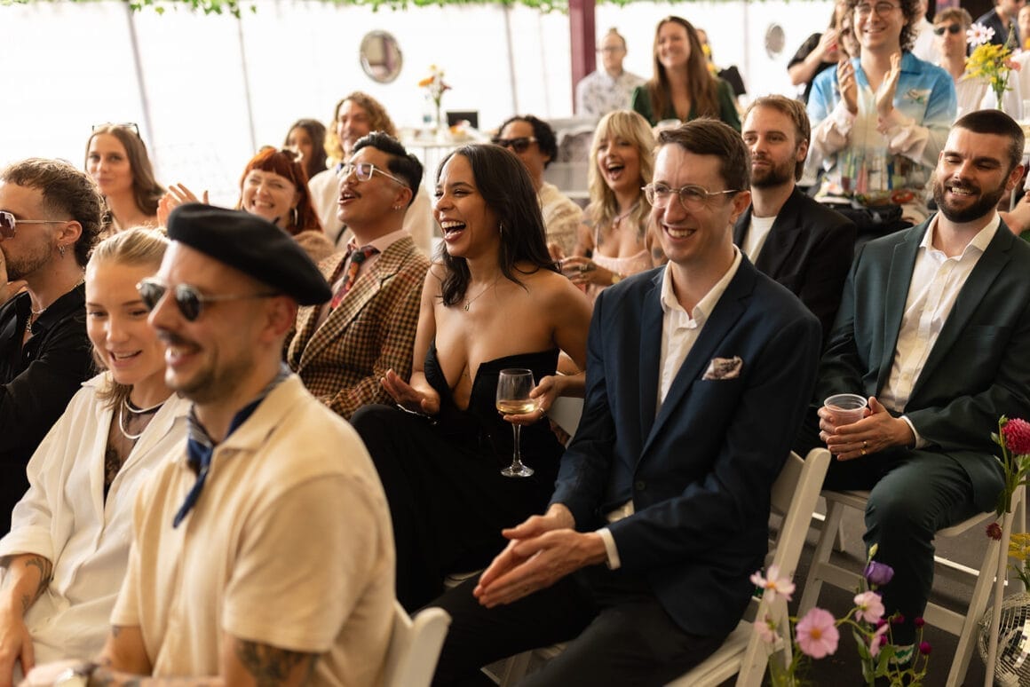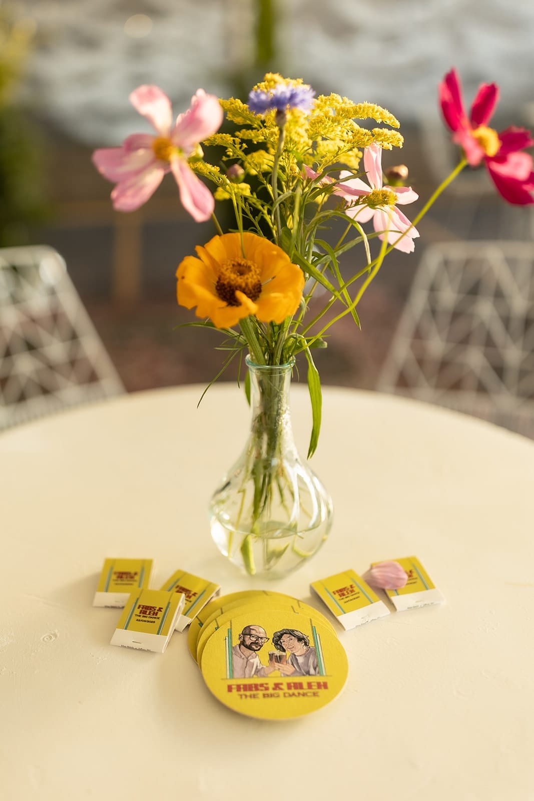 “I loved our invites so much. They were beer coasters, done in the theme of Alex’s favourite beer ‘Reshes’. That became the branding that went across everything. I have the most amazing creative friends who helped in any way they could. My flowers/my decorations/set up. The love we felt that day was in every touch point of the wedding. We both feel so incredibly lucky to have such beautiful friends.”