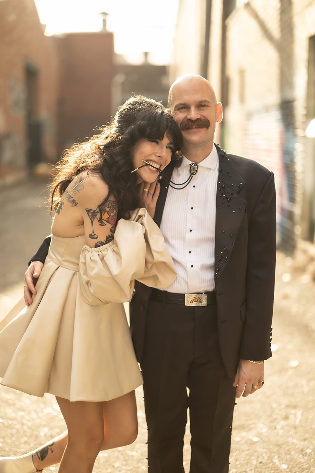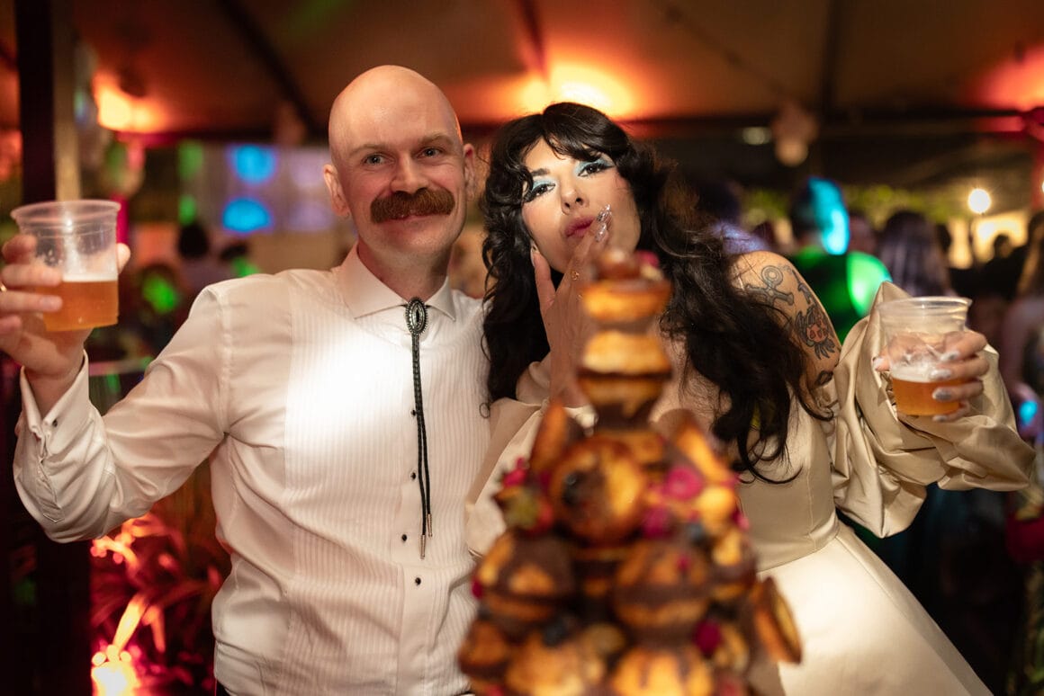 Featuring a Portuguese tart tower, custom beer coaster-style invites and some seriously rock star-worthy ensembles, this bride and groom say with pride, that it was “all sorts of weird and all very much us.”