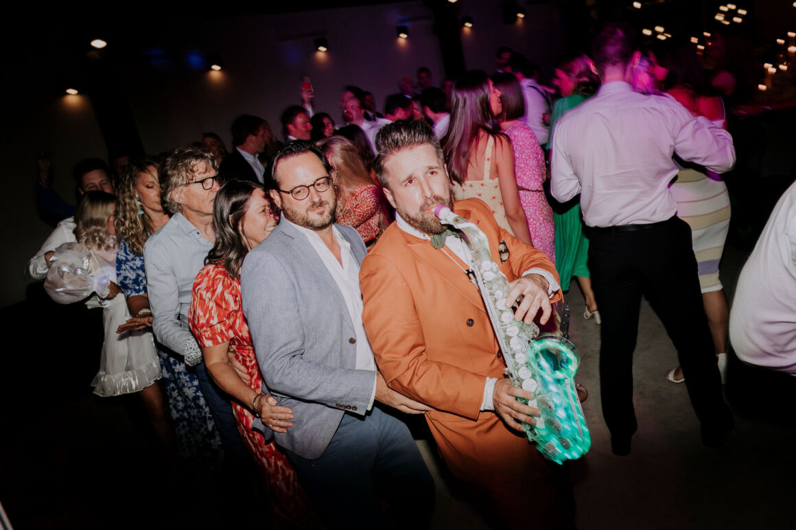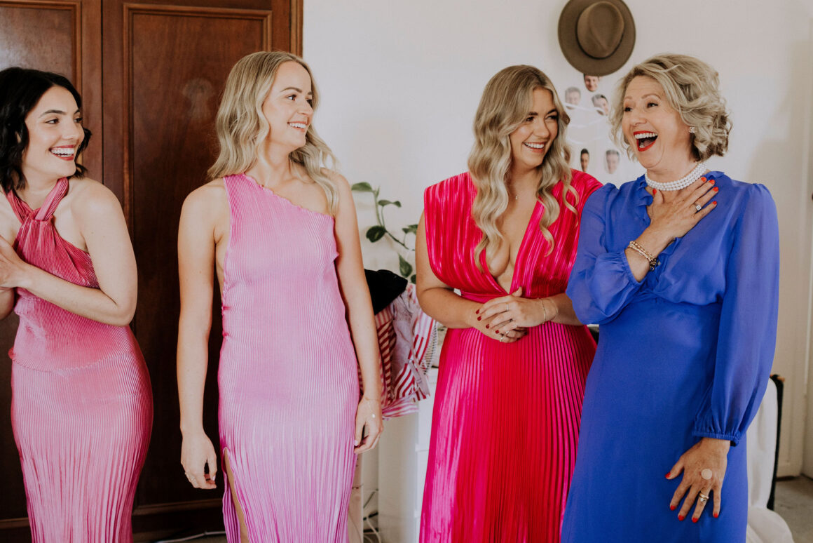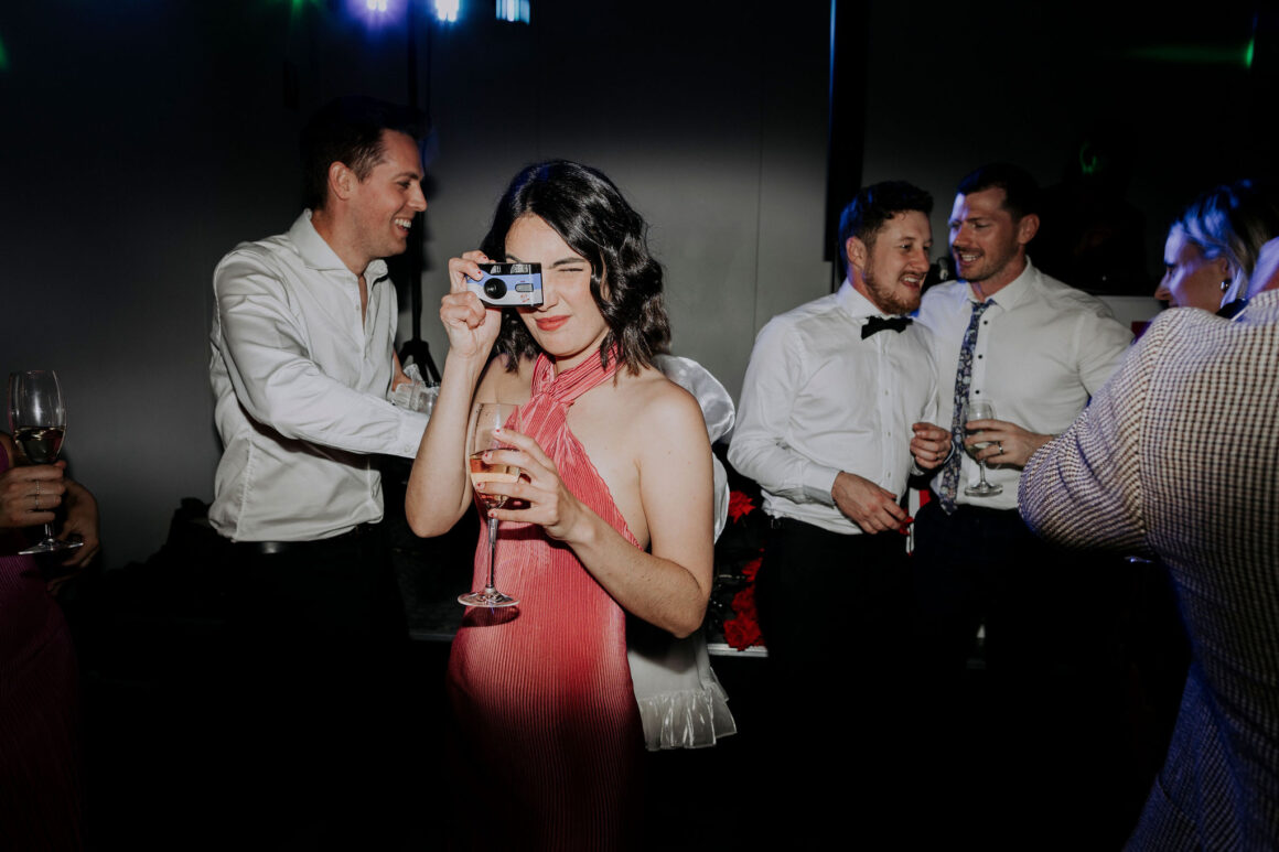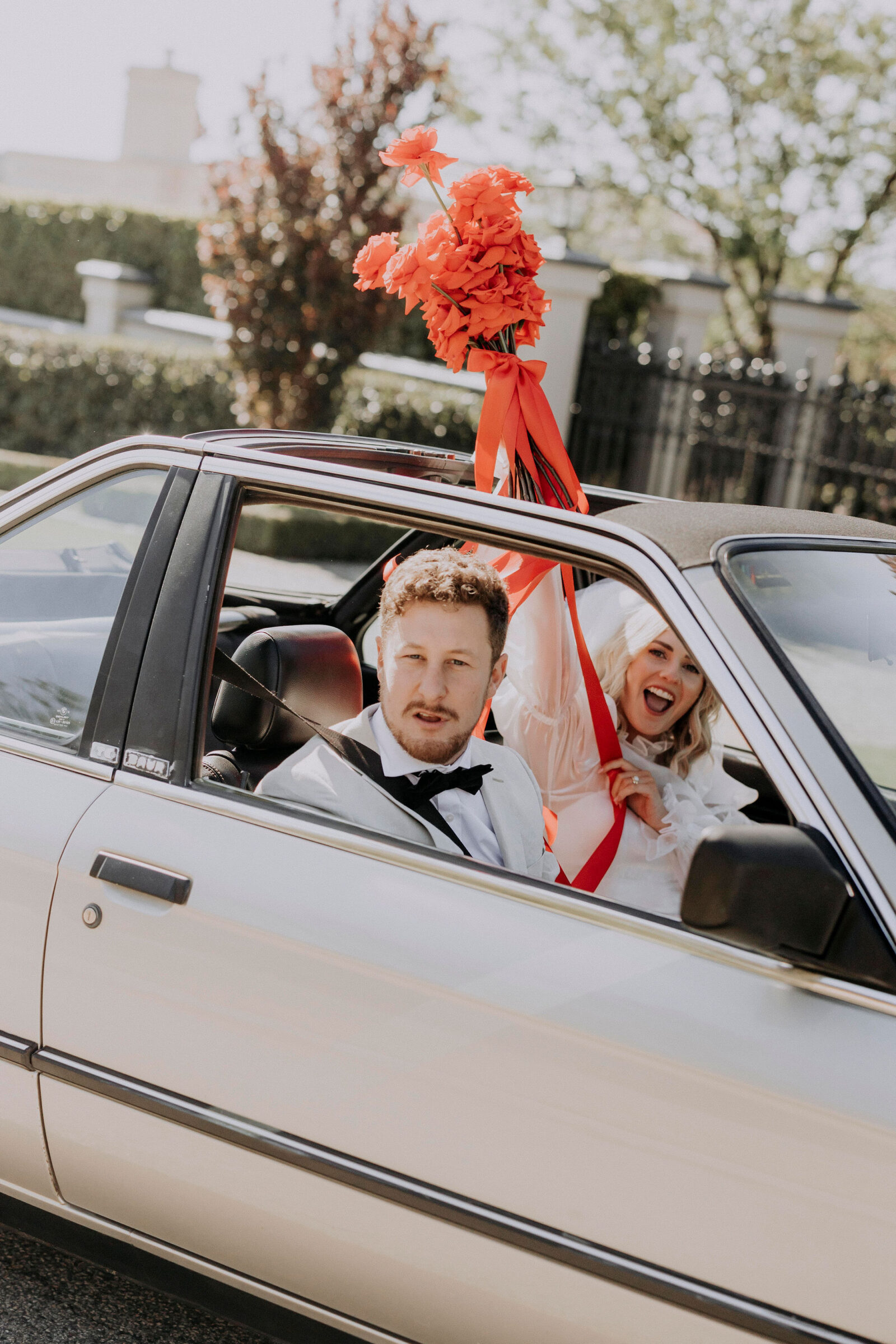“It’s so hard to choose our favourite details from our day, it was jam-packed with entertainment, colour and of course our nearest and dearest. But our top highlights would have to be Mark Turner, the saxophonist, sneaking onto the dancefloor playing ‘Fireball’ by Pitbull whilst the waitstaff brought out trays of fireball shots. Mcdonalds cheeseburgers being delivered at 11pm for a late night snack (always a must). But the most special moment would have to be getting married in the beautiful front garden of our home in Dalkeith, once my grandmother’s home, who spent countless hours (if not days, months, years) on the beautiful garden. We invited our whole bridal/groom party to get ready together, which created such a relaxed atmosphere which we loved. We also had a private ceremony with our bridal party and immediate family, to spend time with all of them before we jetted off to our reception party at 3six5 Event Space.”