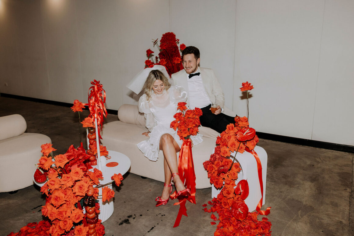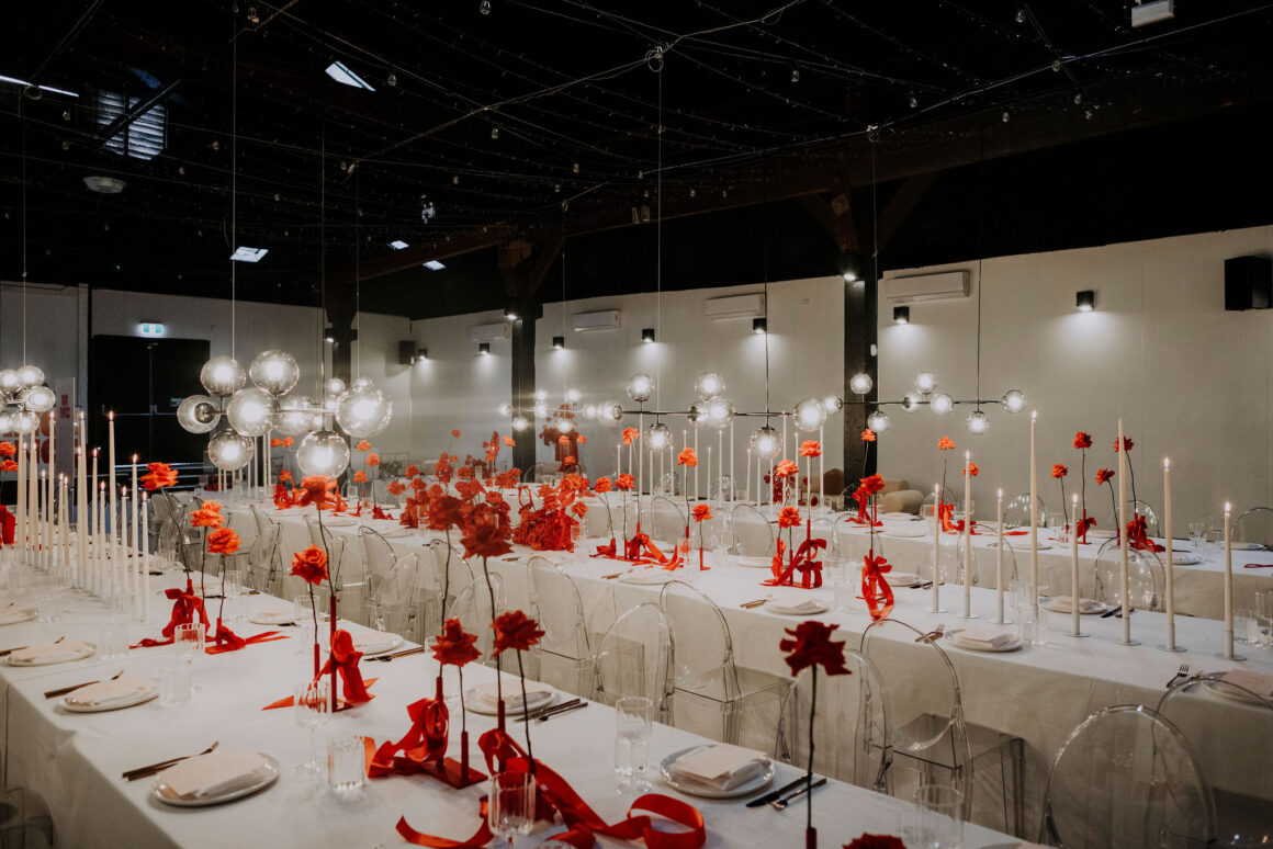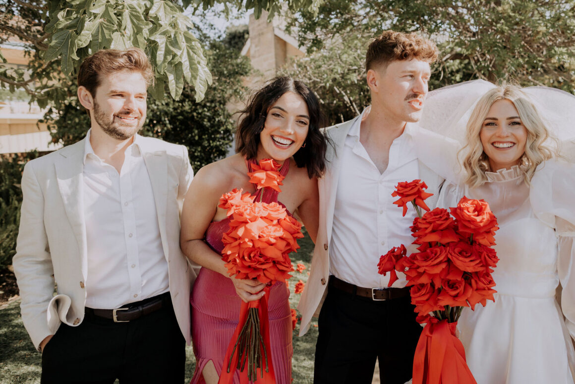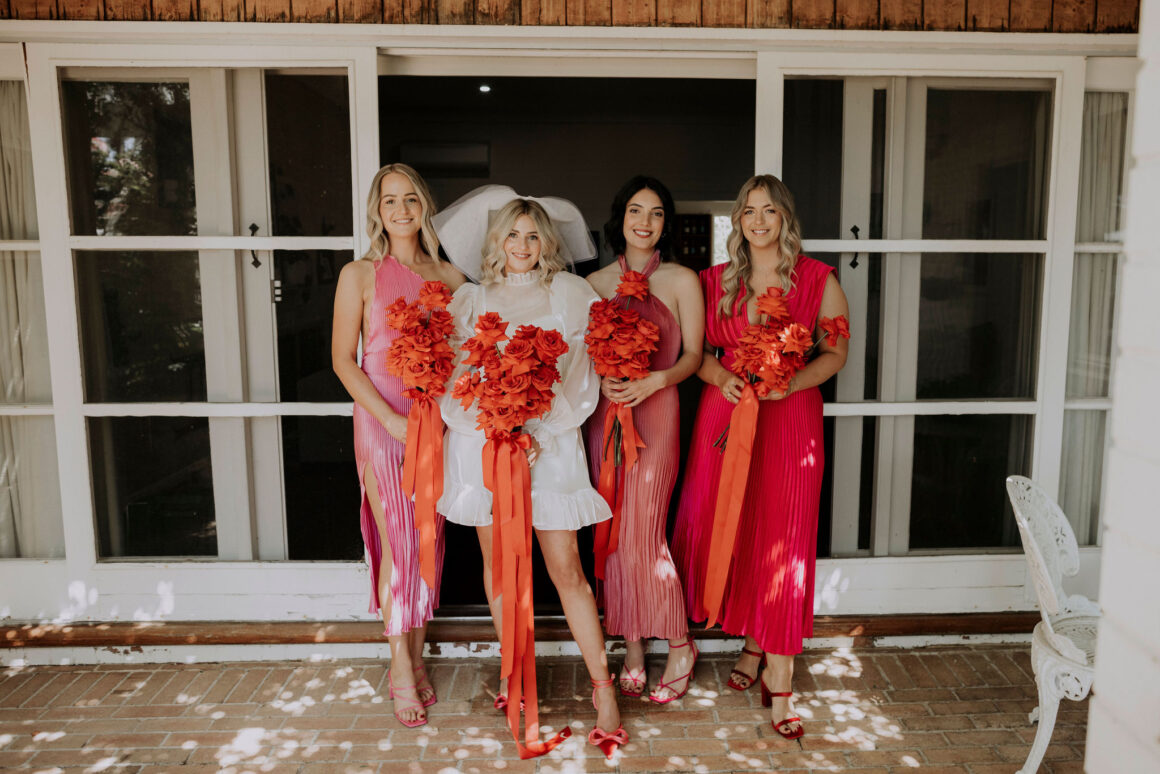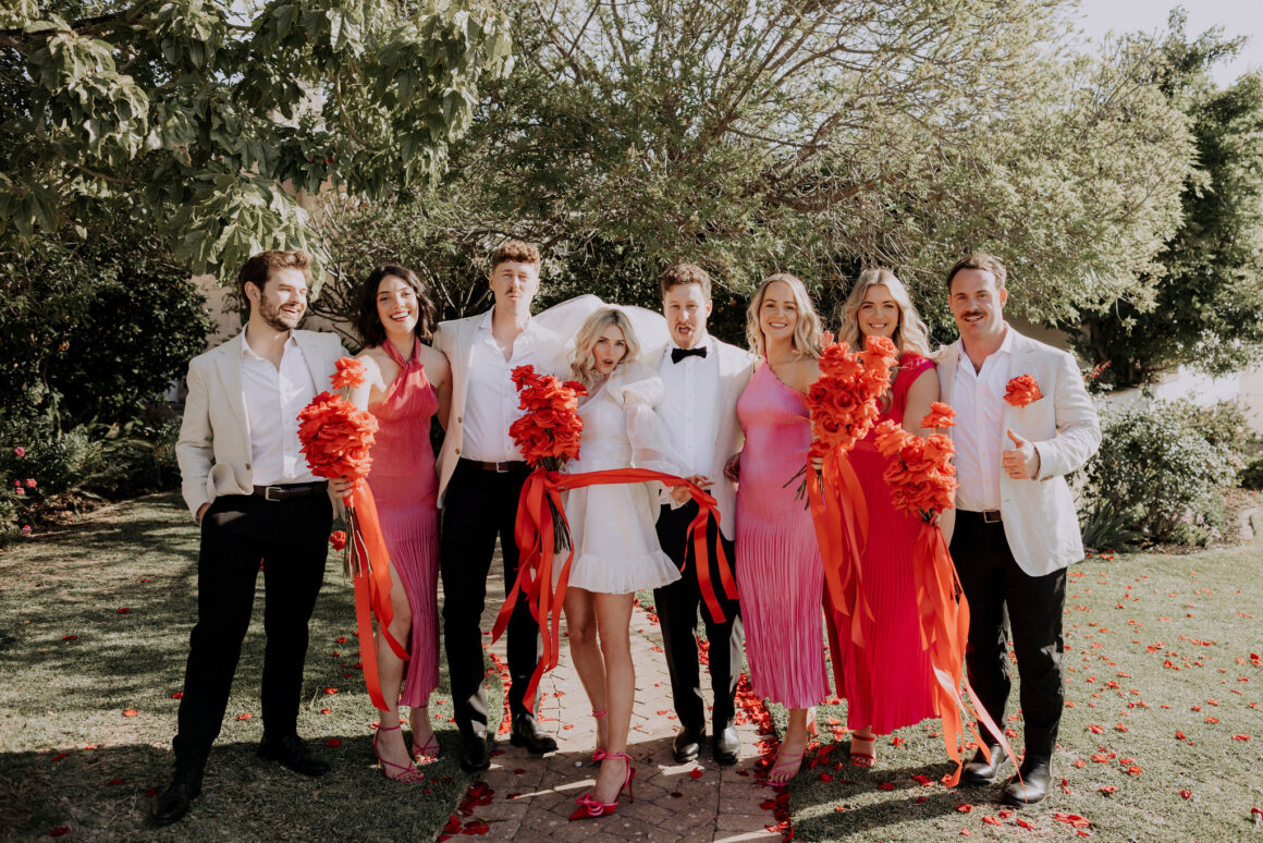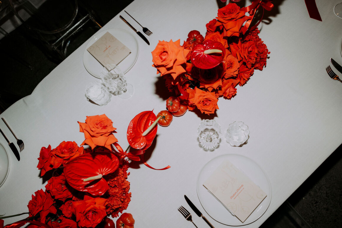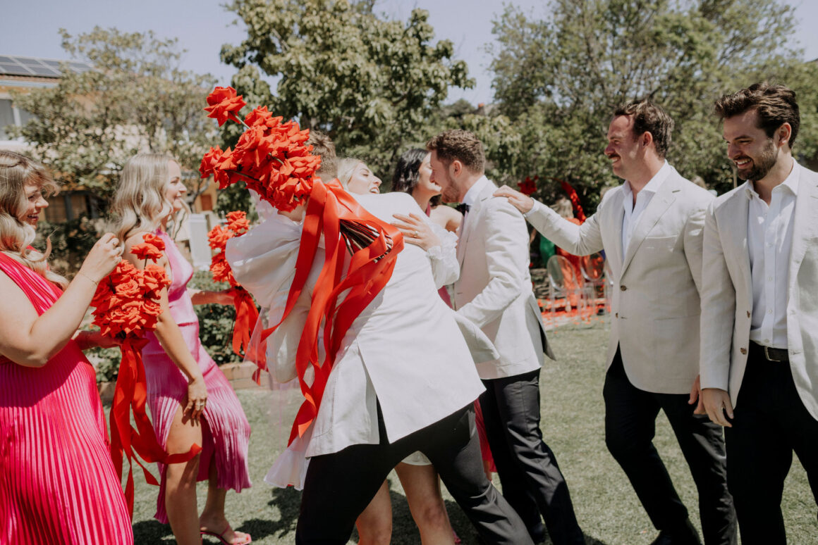 As far as themes go, Gen had seen her fair share—being a florist herself and all. So, spoilt for choice, picking a vibe wasn’t easy. “Once I decided I wanted to go bold, well…we went BOLD,” The bride shares. “With the help from Jess (Bertie Does), Kate and Georgia (my two business partners at Sir Botanical), we came up with the most delicious bright red wedding, and boy, was it a goody.”