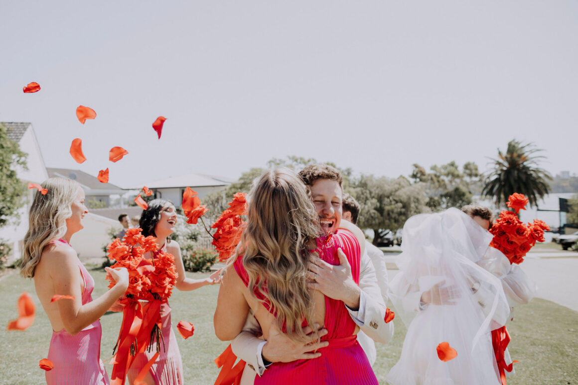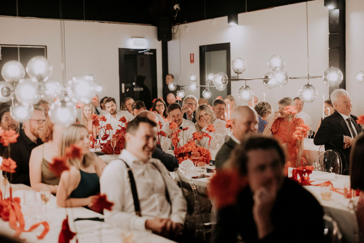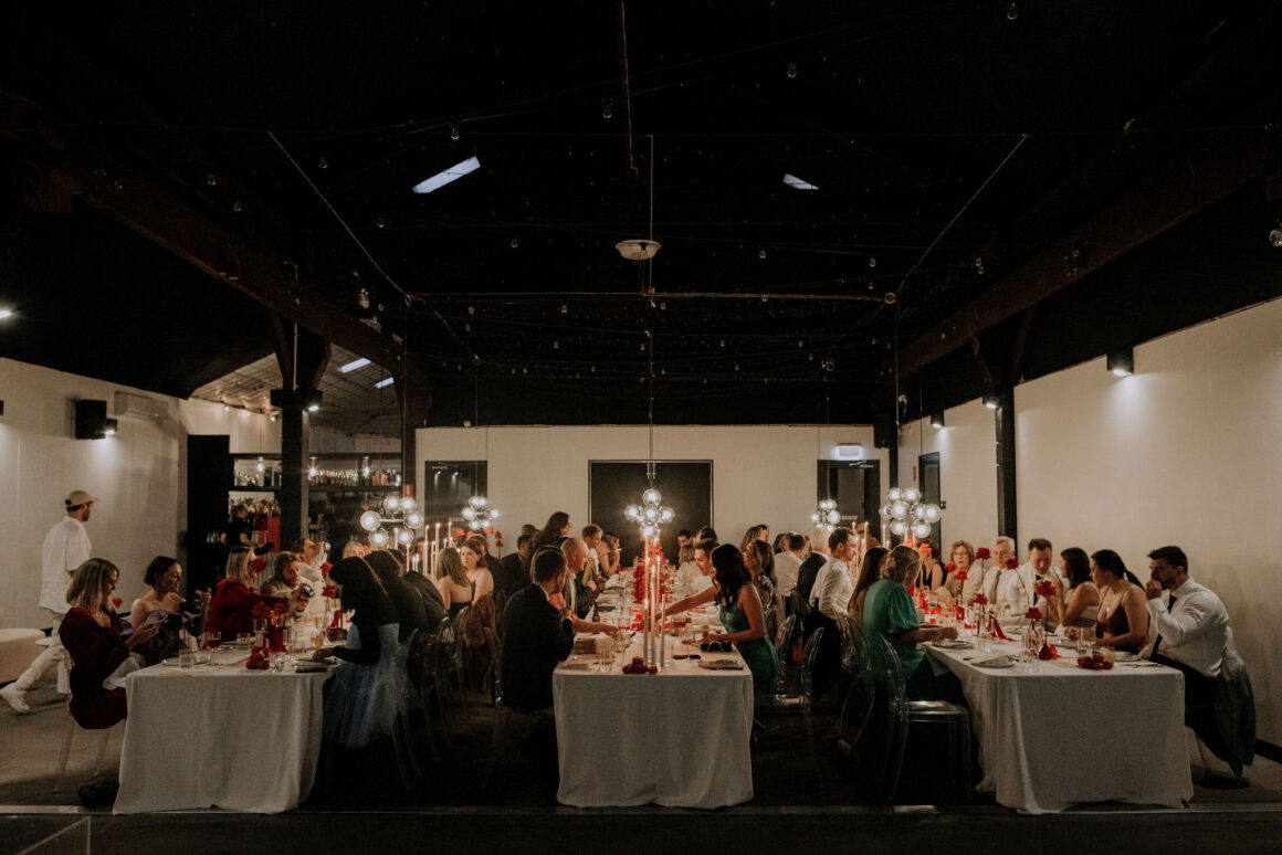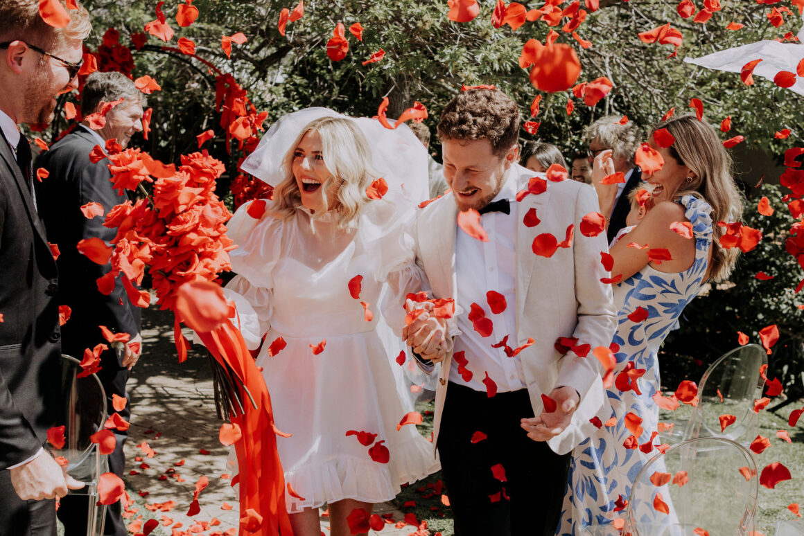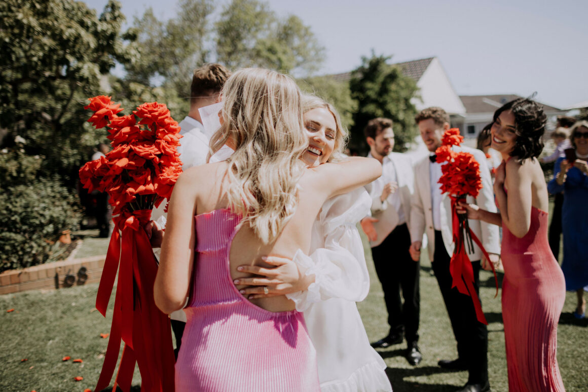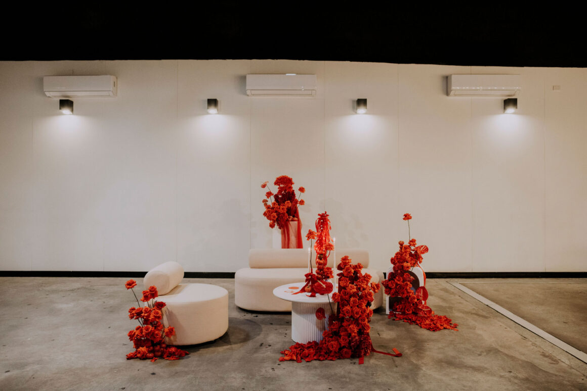 As far as themes go, Gen had seen her fair share—being a florist herself and all. So, spoilt for choice, picking a vibe wasn’t easy. “Once I decided I wanted to go bold, well…we went BOLD,” The bride shares. “With the help from Jess (Bertie Does), Kate and Georgia (my two business partners at Sir Botanical), we came up with the most delicious bright red wedding, and boy, was it a goody.”
