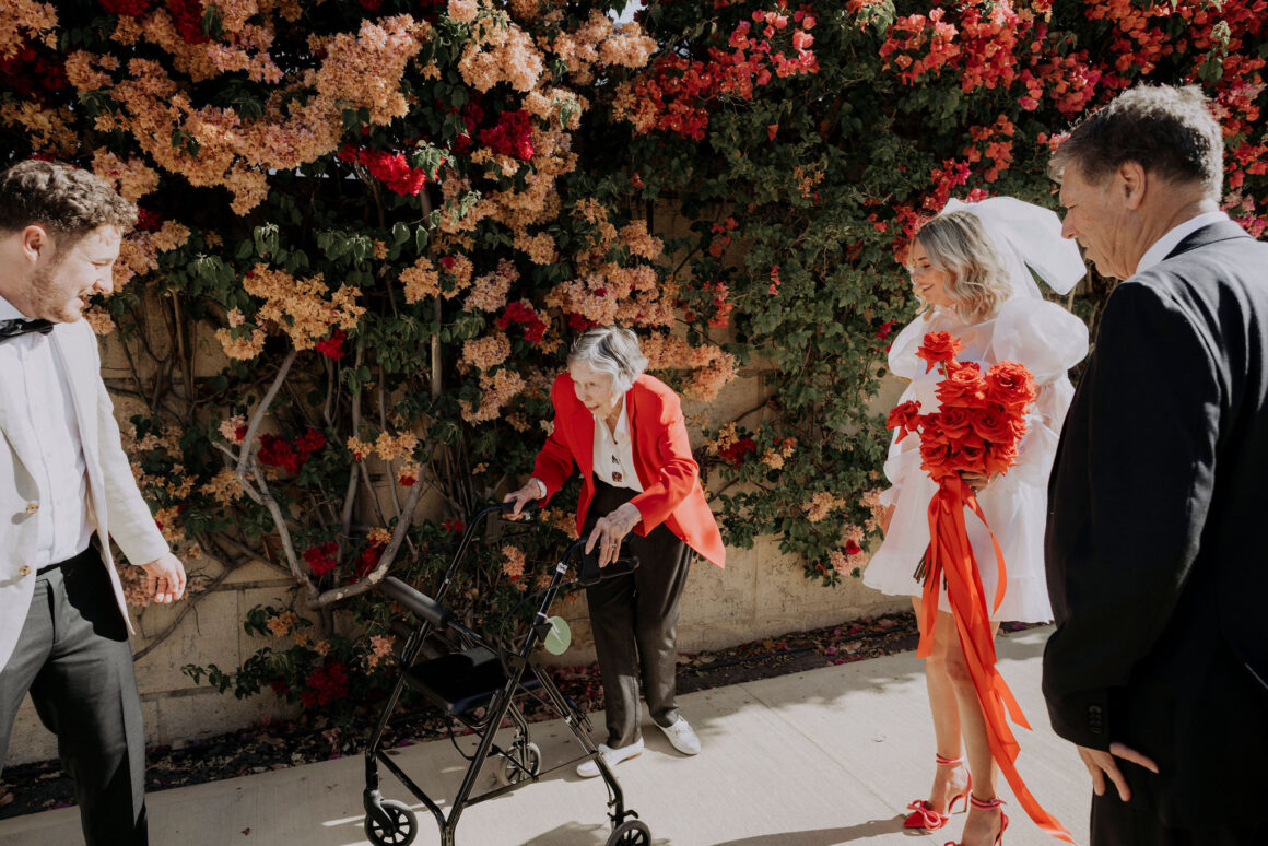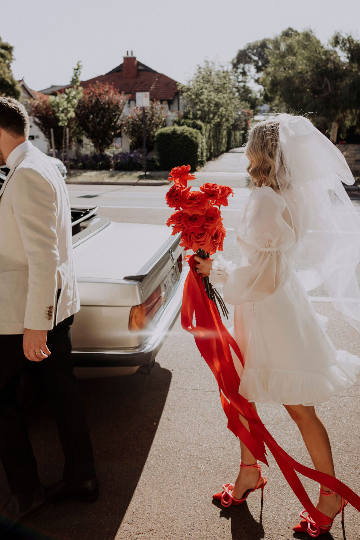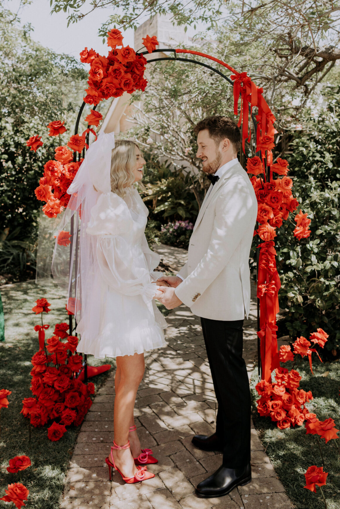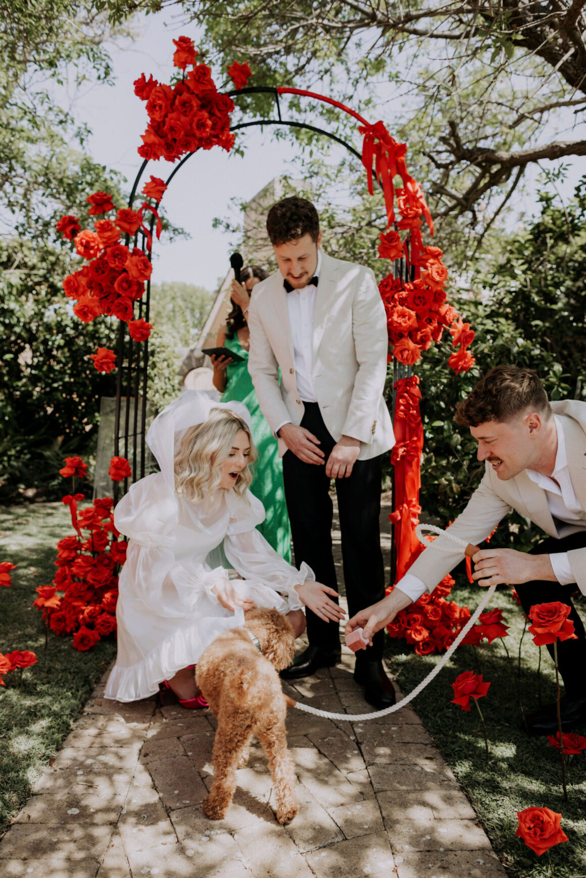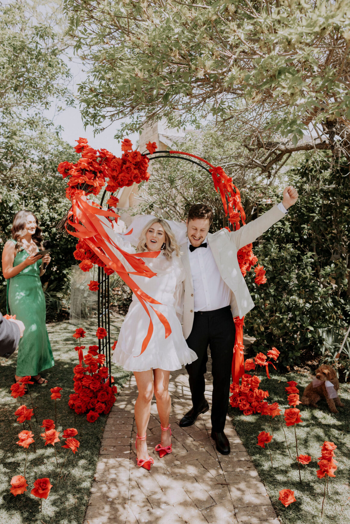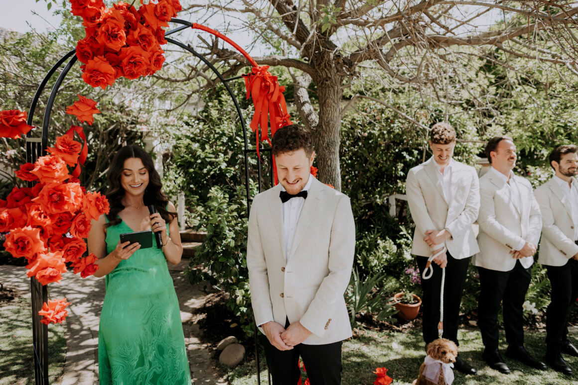 As far as themes go, Gen had seen her fair share—being a florist herself and all. So, spoilt for choice, picking a vibe wasn’t easy. “Once I decided I wanted to go bold, well…we went BOLD,” The bride shares. “With the help from Jess (Bertie Does), Kate and Georgia (my two business partners at Sir Botanical), we came up with the most delicious bright red wedding, and boy, was it a goody.”
