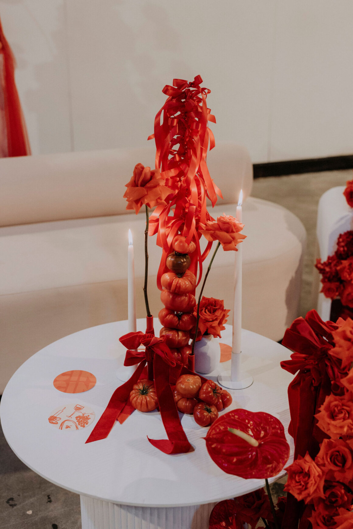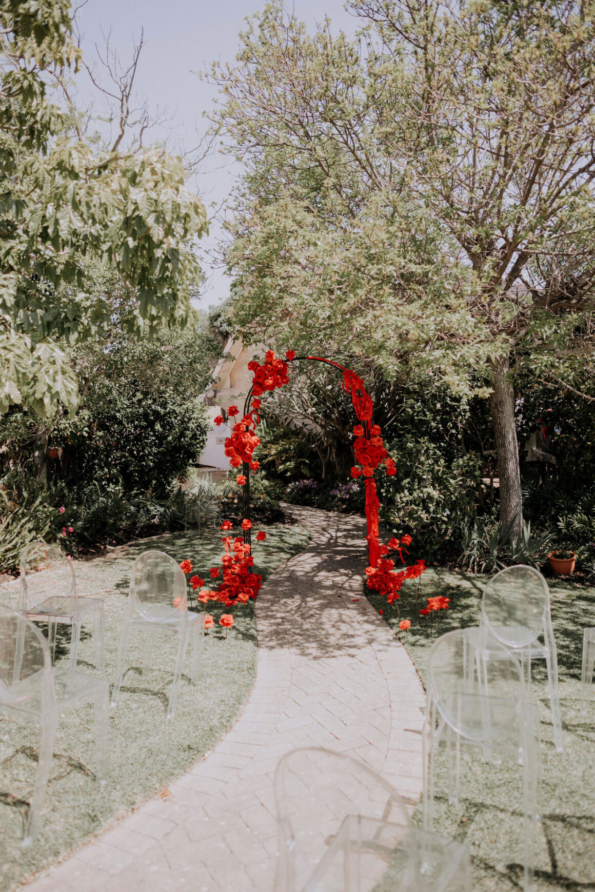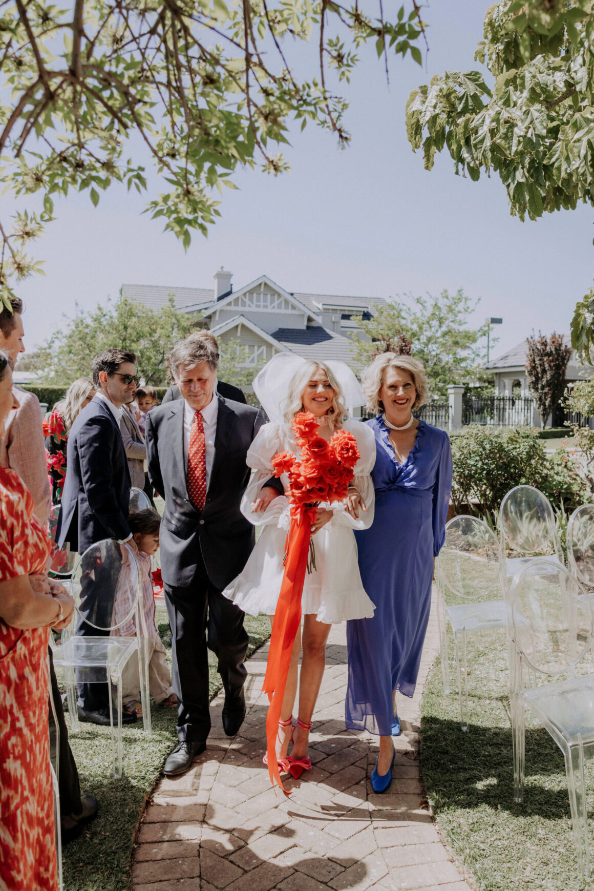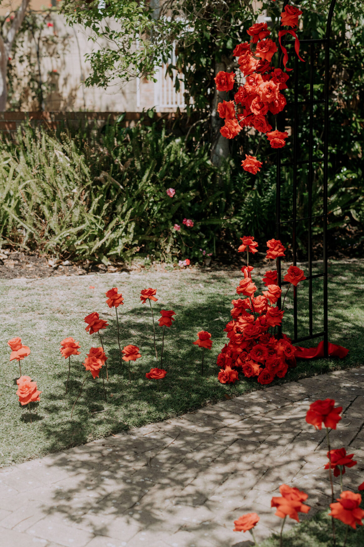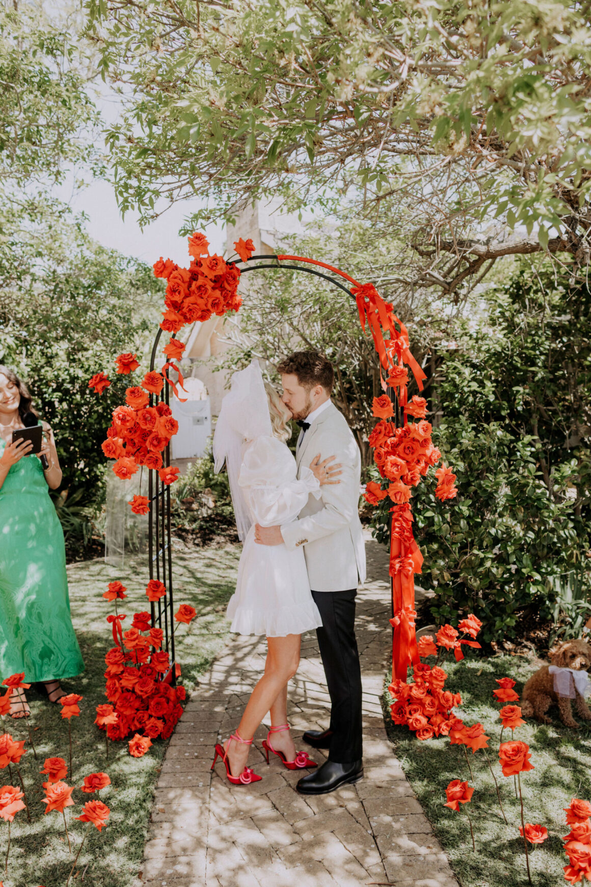 As far as themes go, Gen had seen her fair share—being a florist herself and all. So, spoilt for choice, picking a vibe wasn’t easy. “Once I decided I wanted to go bold, well…we went BOLD,” The bride shares. “With the help from Jess (Bertie Does), Kate and Georgia (my two business partners at Sir Botanical), we came up with the most delicious bright red wedding, and boy, was it a goody.”