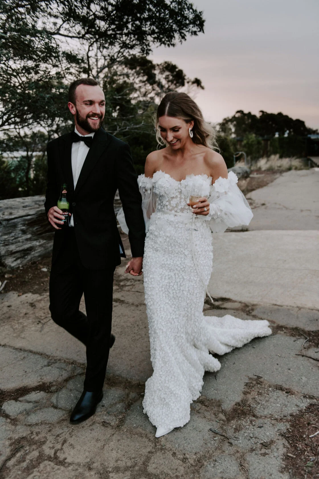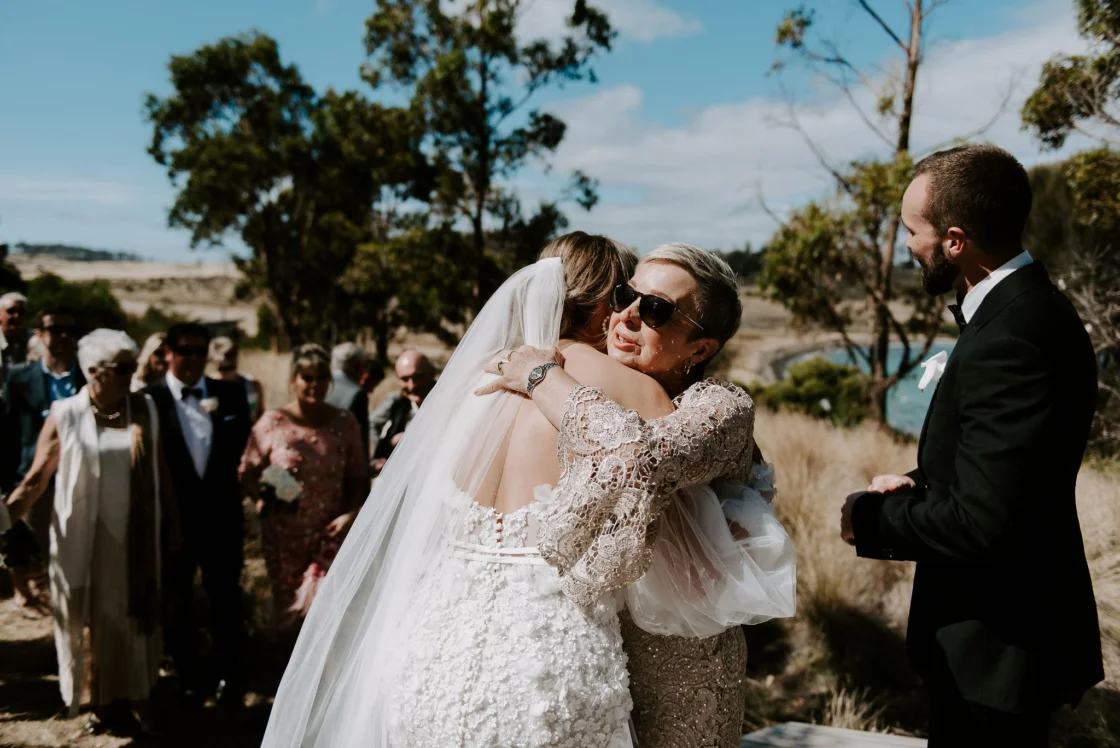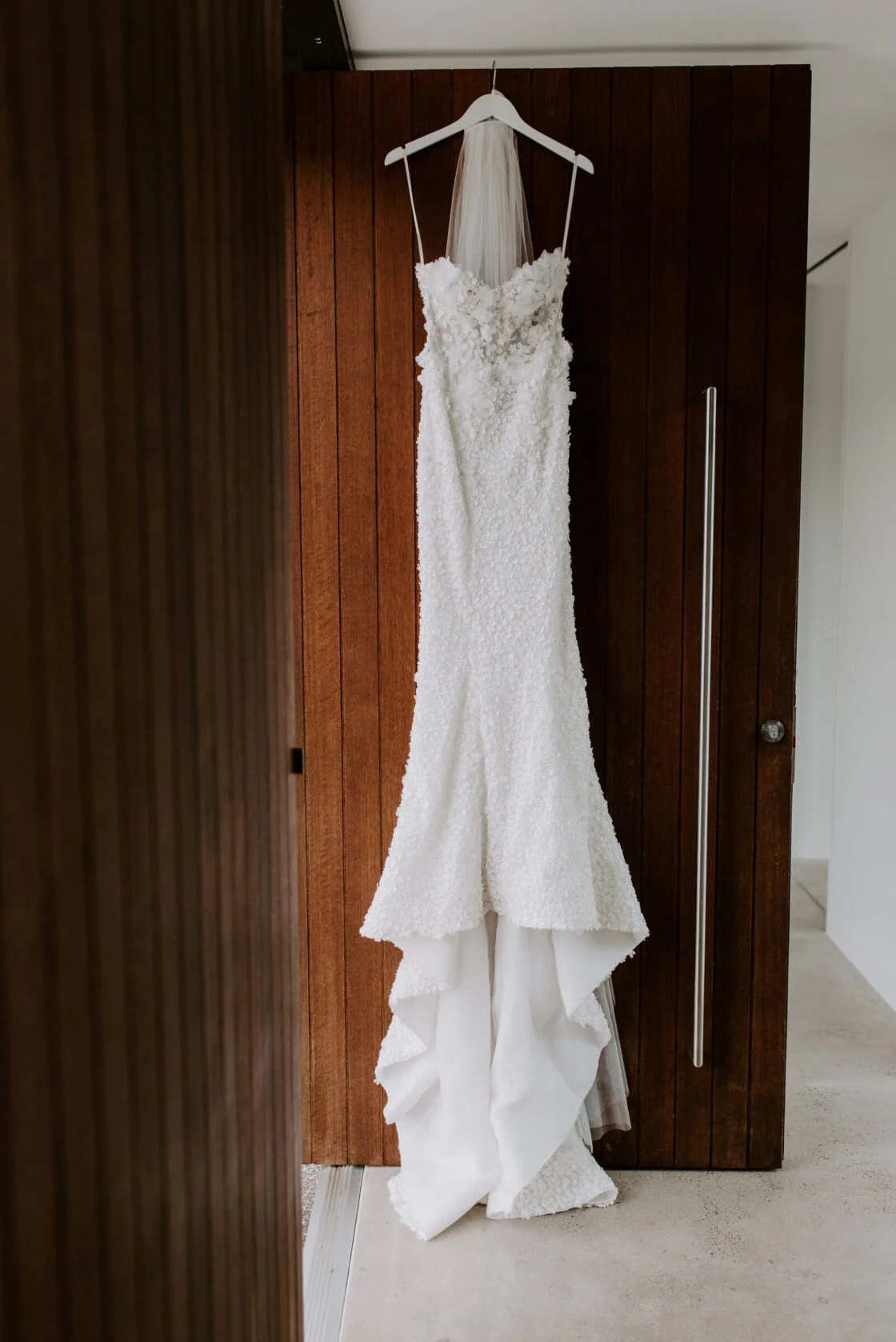 THE DRESS “We can be a little limited for options in Tasmania which worried me when I first started to look for a dress. I had planned and researched a trip to Sydney with my mum and sister but unfortunately wasn’t able to go due to border restrictions. I decided to take a huge gamble and buy my Pallas Couture wedding dress off an Instagram photo after just a few quick measurements taken. It was definitely meant to be, the dress fitted perfectly! I was totally in love with it.”