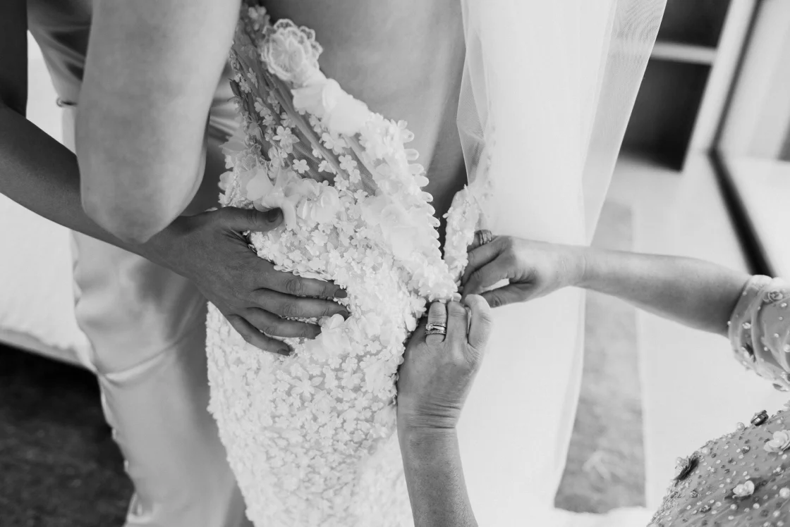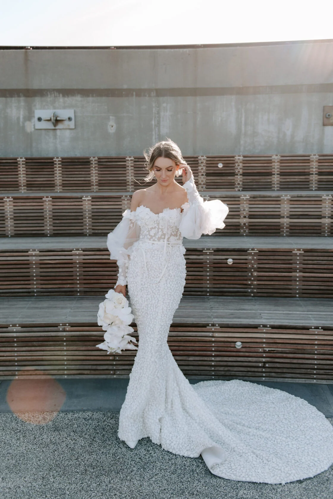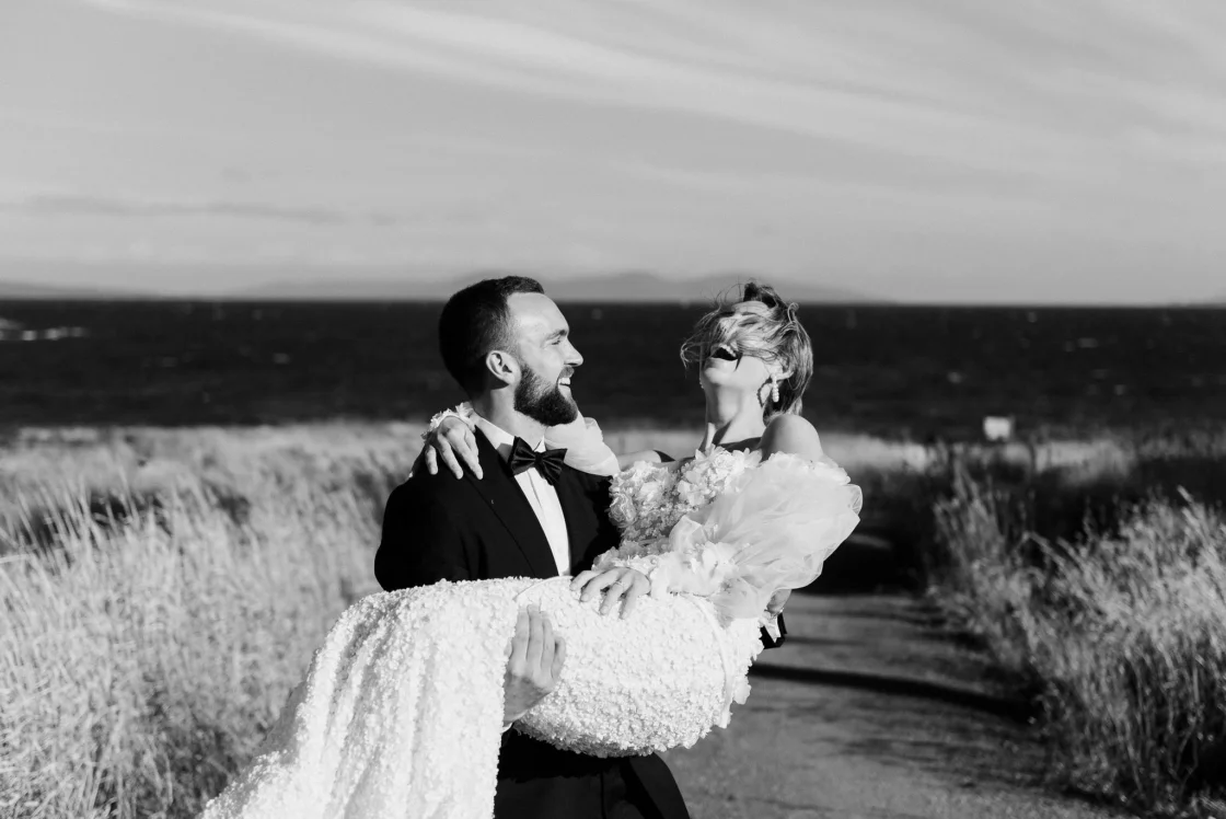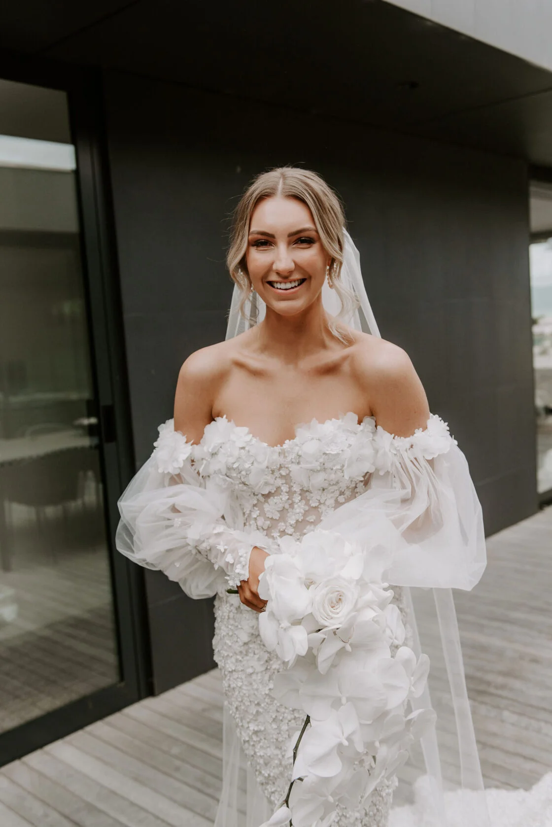 THE DRESS “We can be a little limited for options in Tasmania which worried me when I first started to look for a dress. I had planned and researched a trip to Sydney with my mum and sister but unfortunately wasn’t able to go due to border restrictions. I decided to take a huge gamble and buy my Pallas Couture wedding dress off an Instagram photo after just a few quick measurements taken. It was definitely meant to be, the dress fitted perfectly! I was totally in love with it.”