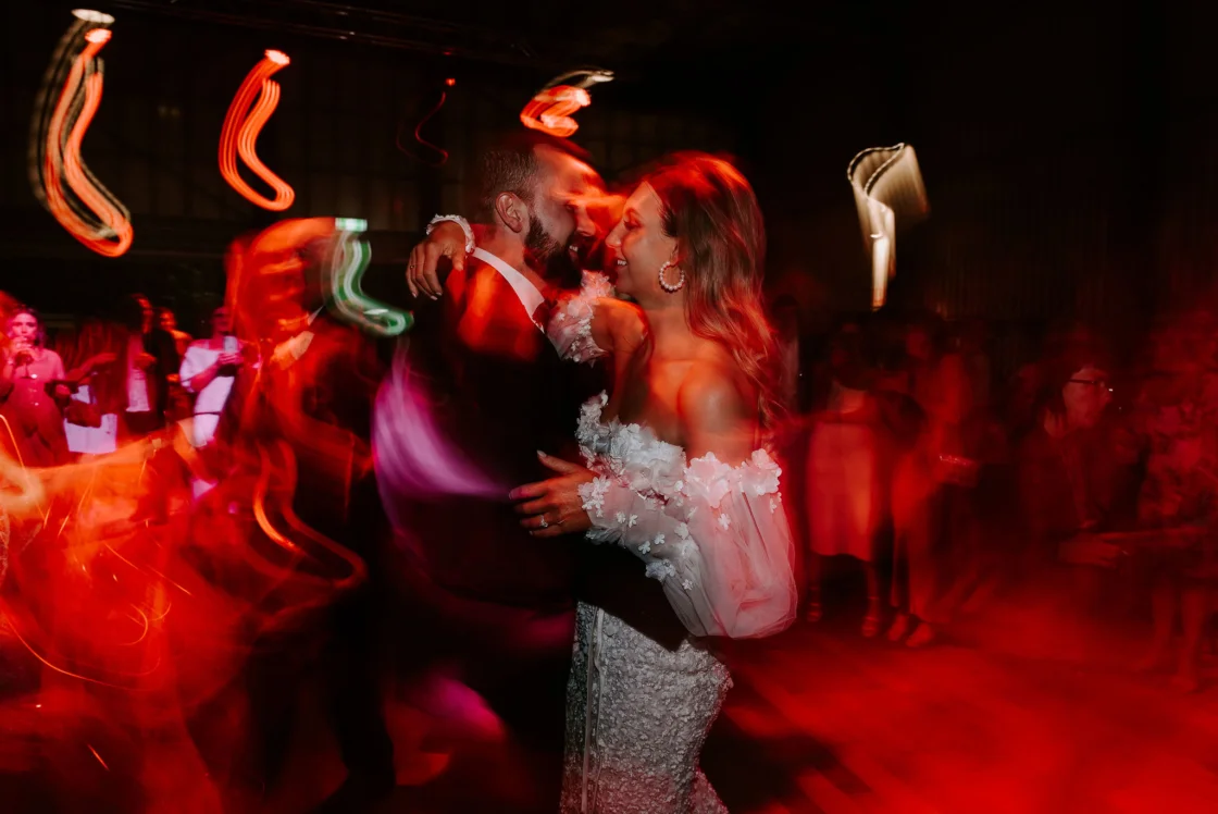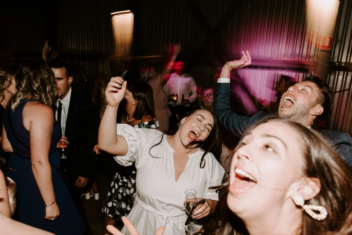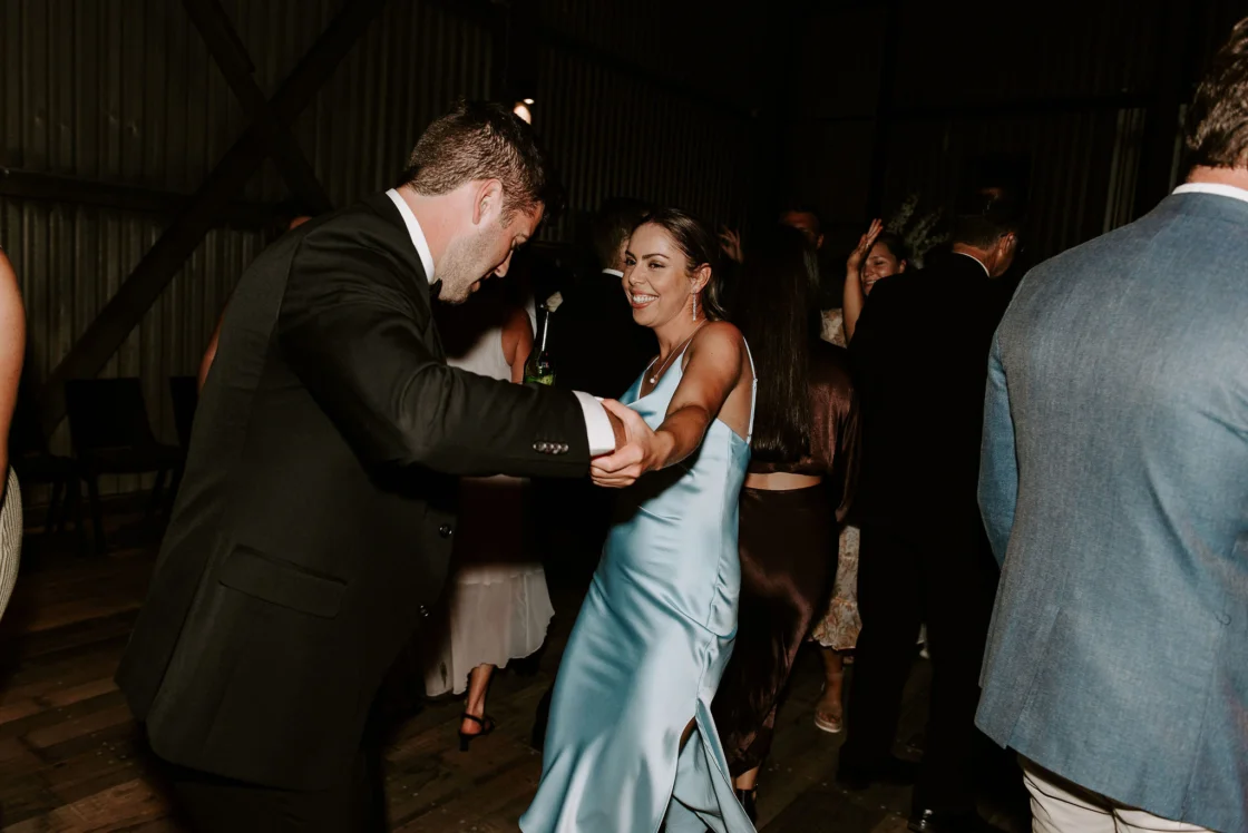 WE’RE GLAD WE… “We had a surprise for our guests that included moving from the wonderful Banksia Room, where our reception was held, to an industrial Tin Shed originally used as part of the former wood chip mill. In the shed, we had a full band on stage – Baker Boys Band – and that’s where the party really began! While the idea of a third location originally scared us, we are so glad we did it.”