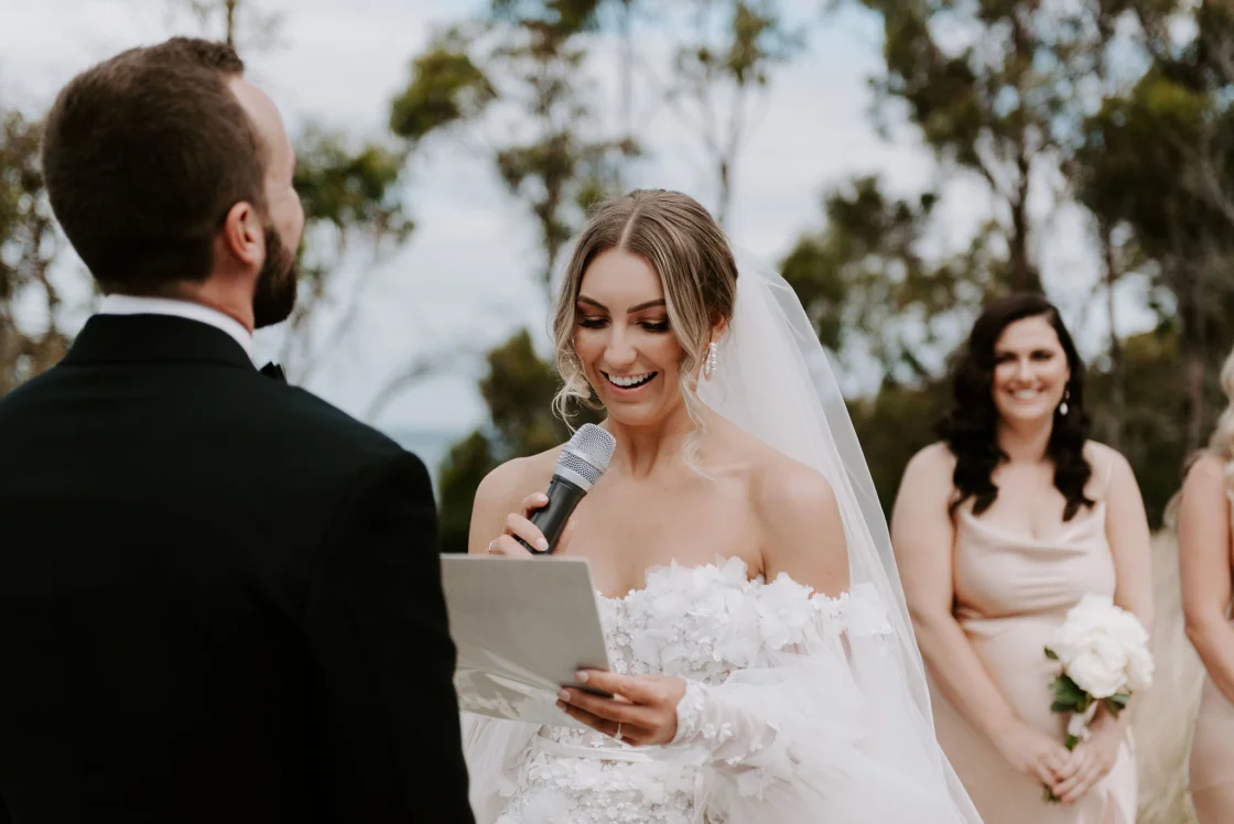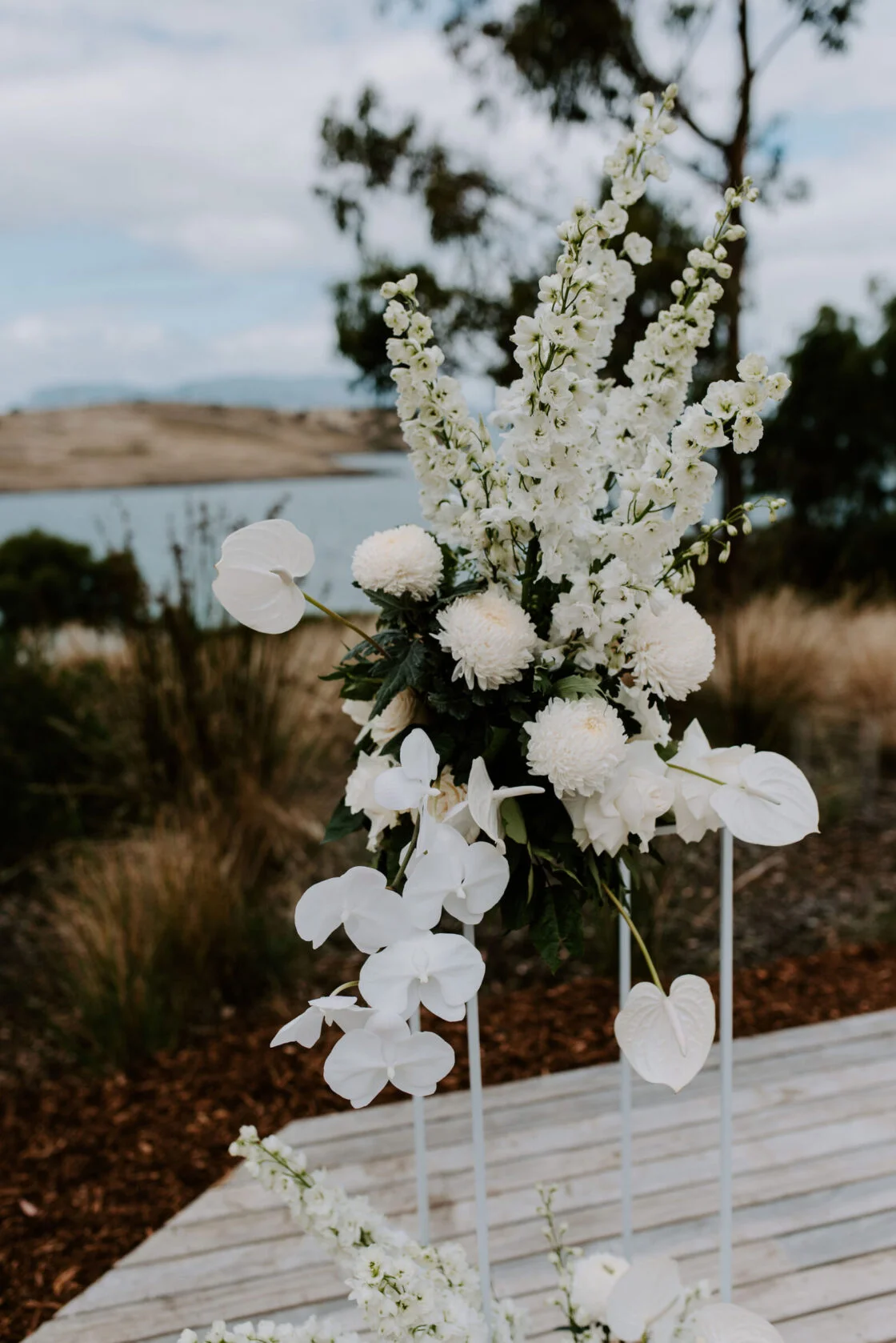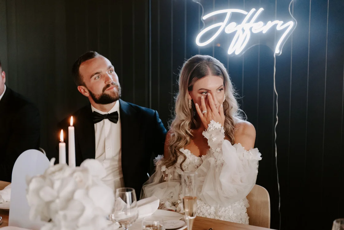 FAVE DETAILS “The catering – the food was delicious and there was plenty of it. Sabre Catering and Events slow-cooked beef and lamb from my family farm and there was nothing better than sitting down, totally relaxed after our speeches, to eat some of the amazing food we had planned for the evening. The champagne tower was executed to perfection by Joseph Burton Wines and it was so much fun as our first pour on the deck with the sun shining. The florals by The Floral Criteria really brought everything together – seeing the flower stands at the ceremony and the florals on the tables at the reception was a huge highlight. And of course, the photography – Sophie Sullivan our amazing photographer, captured absolutely every little detail and moment of the day, which we will be forever grateful for.”
