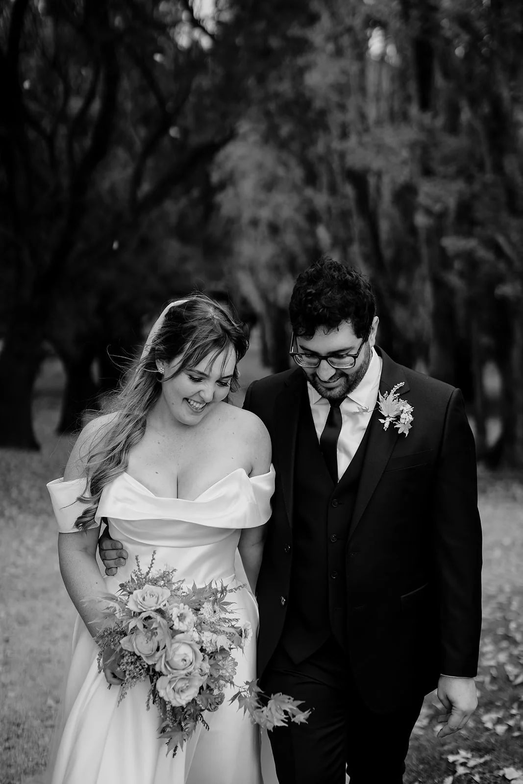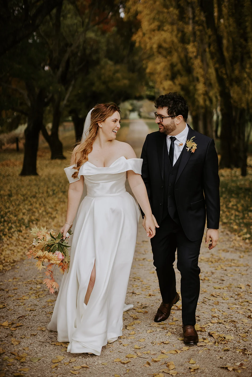 THE VIBE “We had a very romantic style wedding; we wanted to incorporate a lot of nature and beauty. As it was autumn in Tasmania, we used a lot of the autumnal foliage from our surroundings and incorporated this into the floral arrangements. Khaled and I wanted to make sure we prioritised taking time out for ourselves together, as it’s so easy to get swept up in the day. We took regular little moments for ourselves to enjoy the newly-wed feeling and made sure we stayed by each other’s sides for the day. We also wanted to make sure our guests left with full bellies and fuller hearts.”