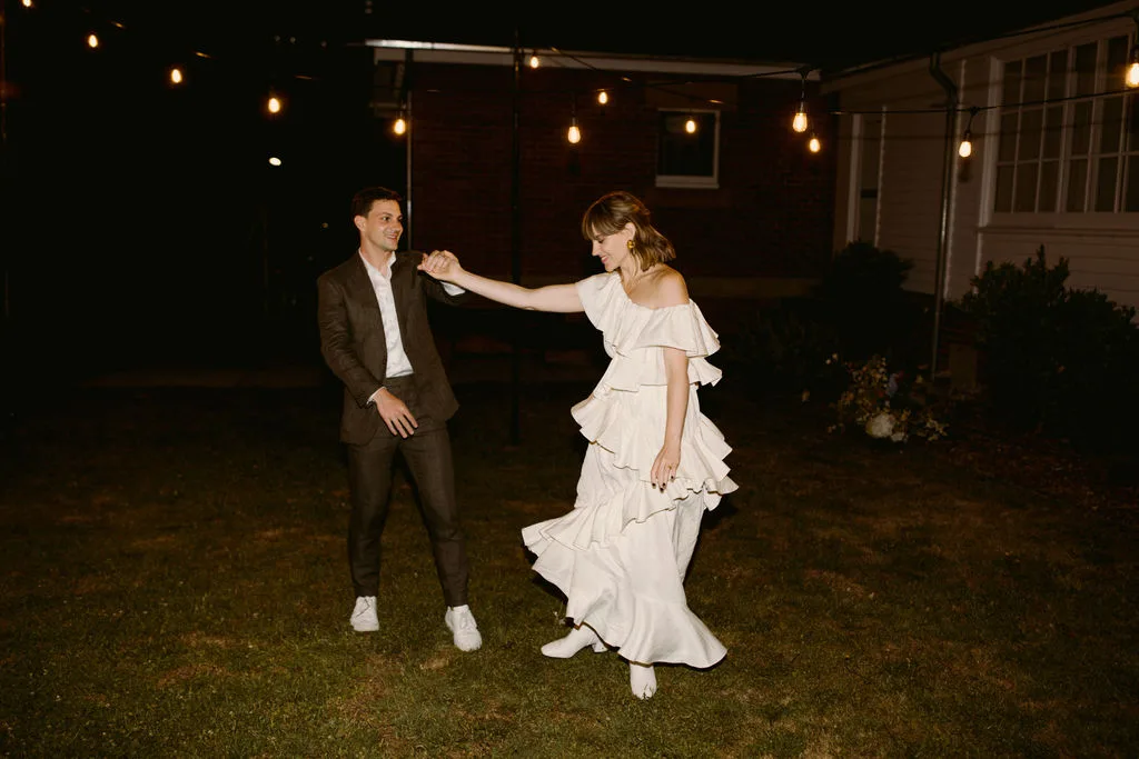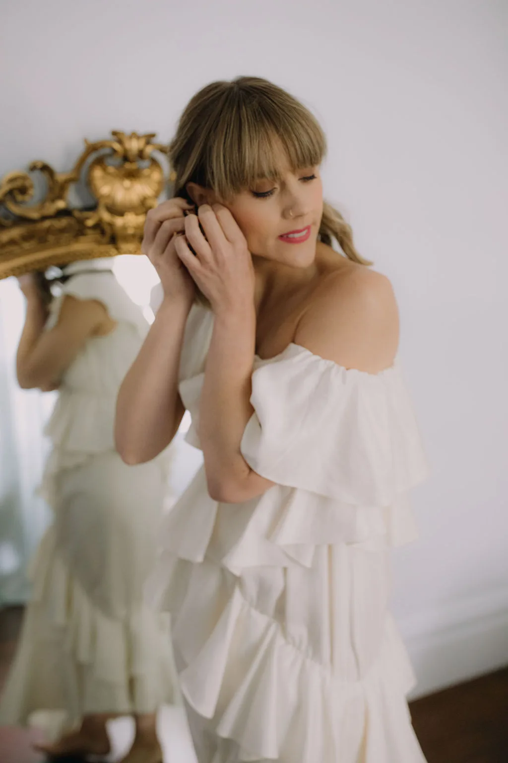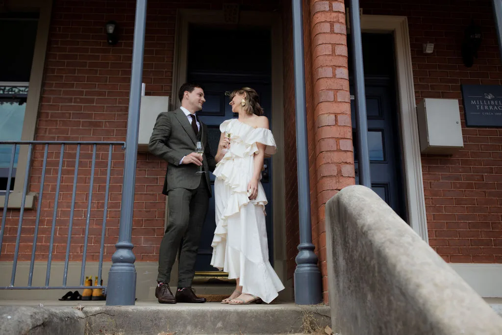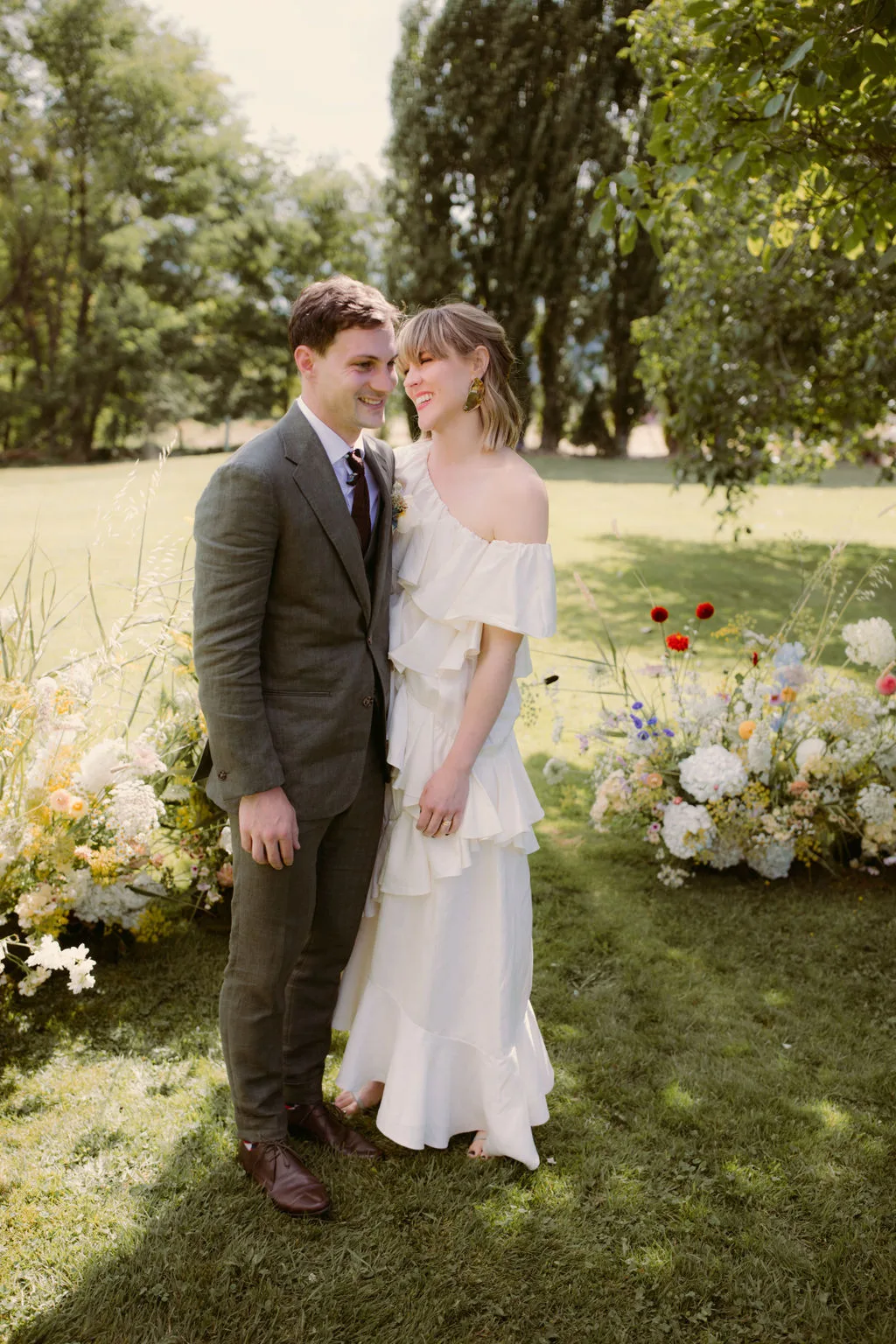 WE’RE GLAD WE… “A friend gave us some sage advice, which was to just take some time in the day just to spend together, just the two of you. You get so distracted by having your favourite people there and the blur of the party, it’s nice to punctuate the day with a little bit of alone time to catch your breath. We also chose to get ready together, at home, which was really lovely.”