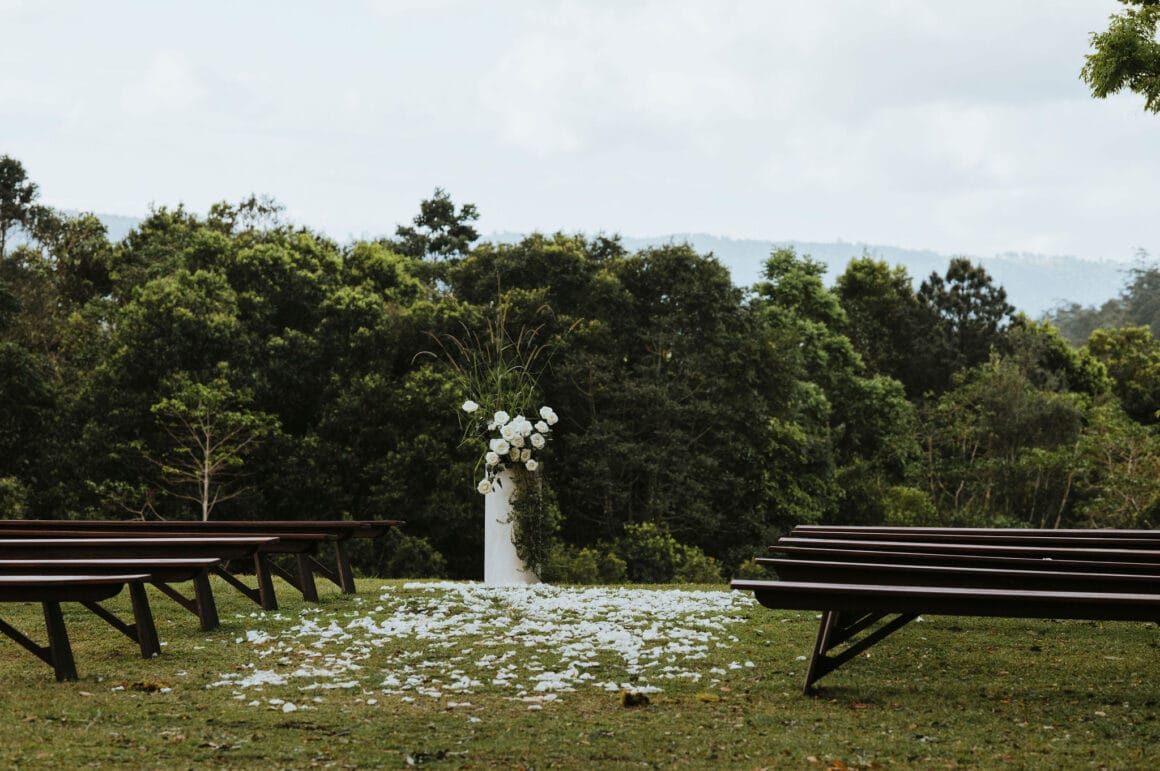 THE VENUE “We knew we wanted a mountain view setting in the hinterland. After touring eight venues, we chose The Bower Estate for its breathtaking views, which we thought would be perfect for our cocktail-style wedding. We also loved The Bower Estate because of their catering partner, Ridgeway Catering, who are known for their incredible food. It just felt like the right fit.”