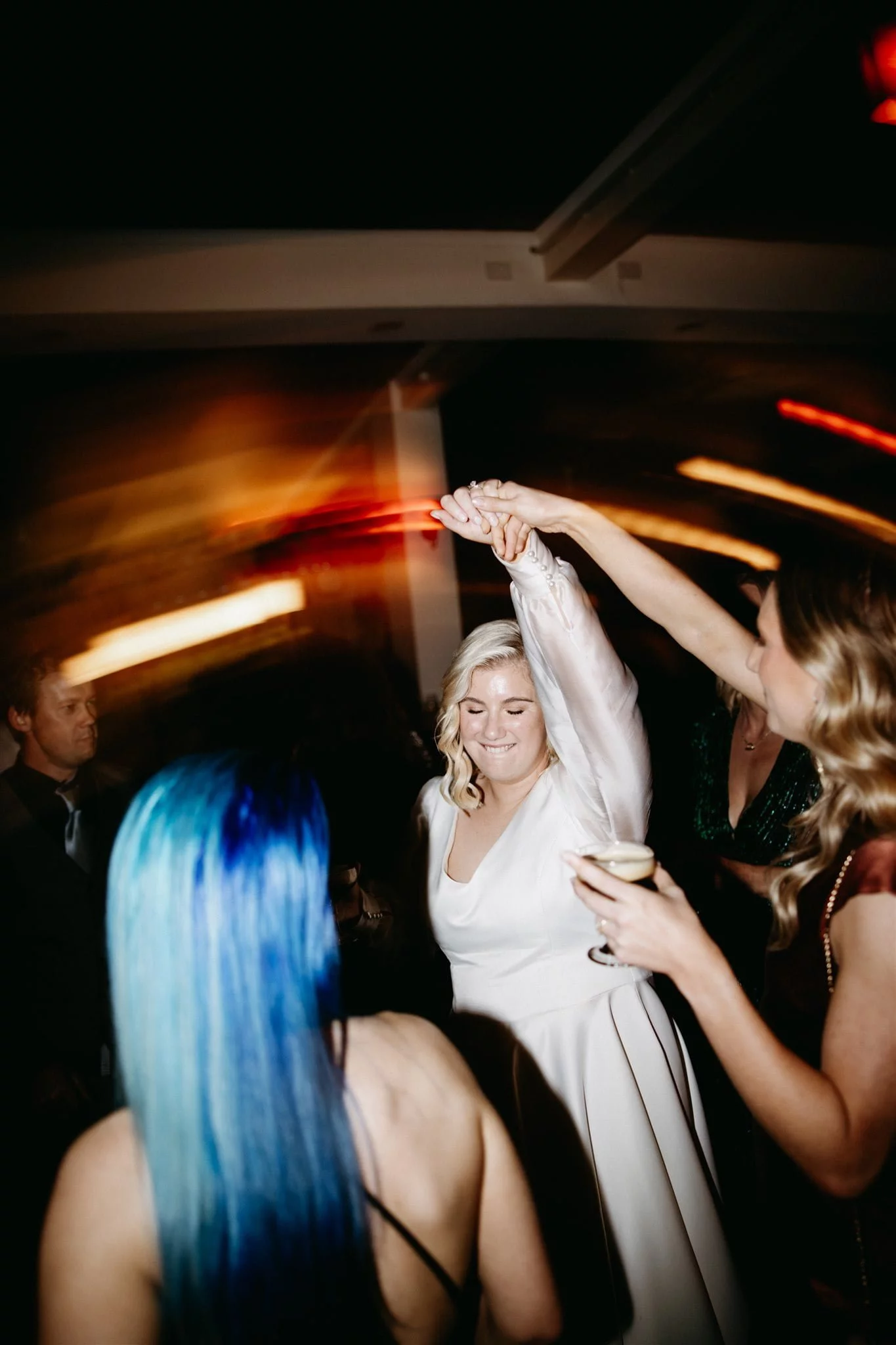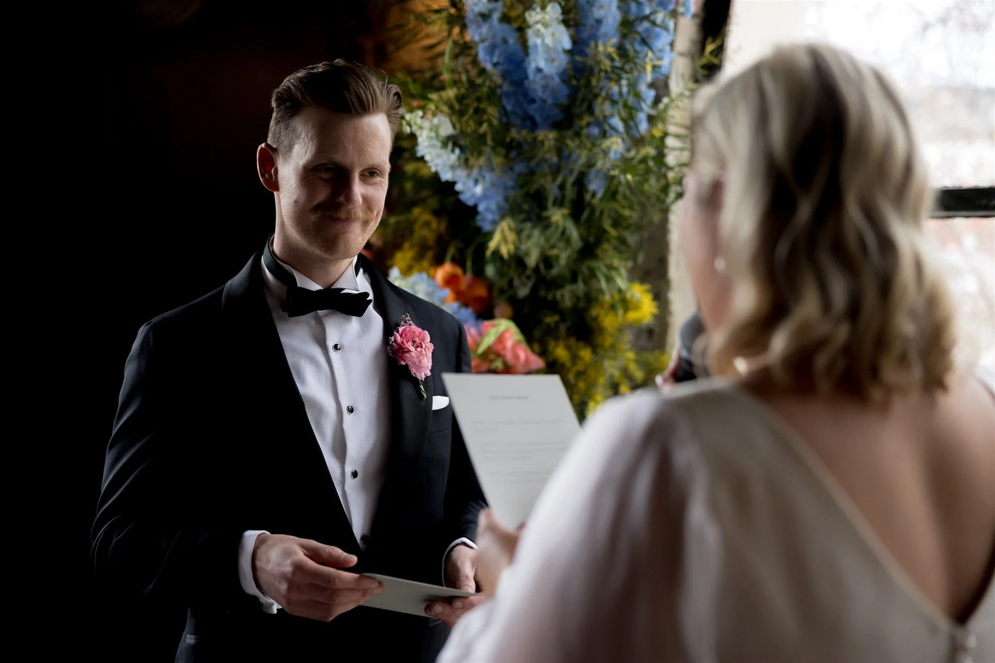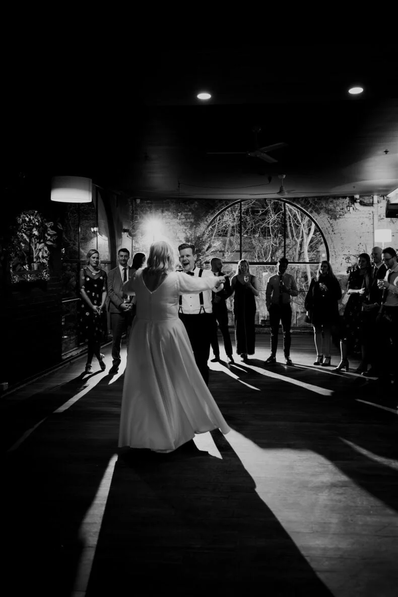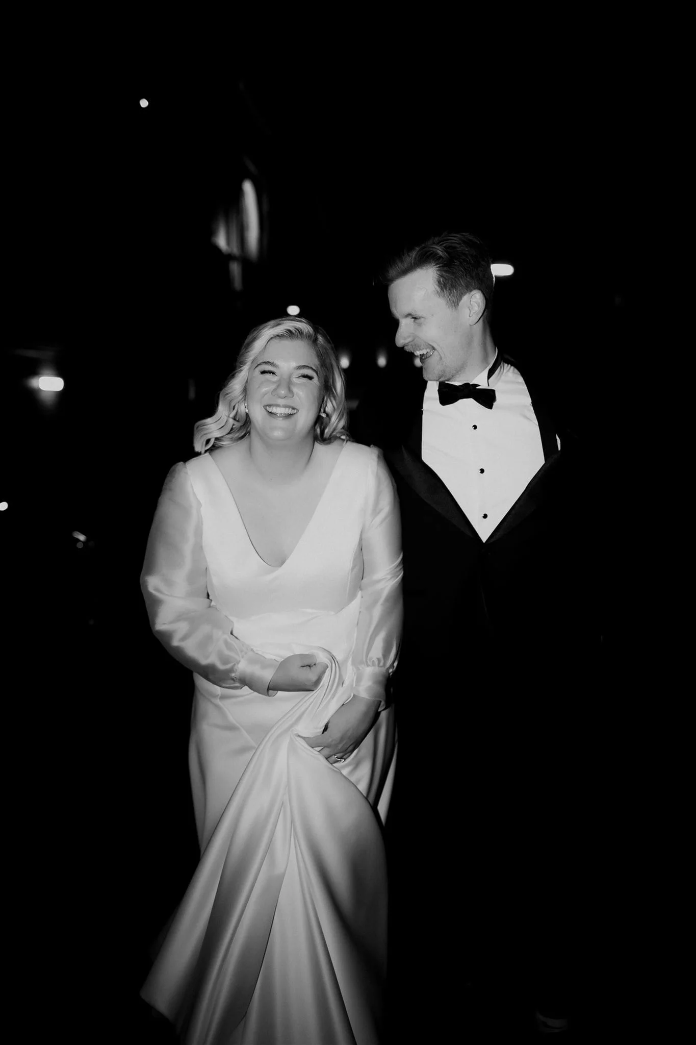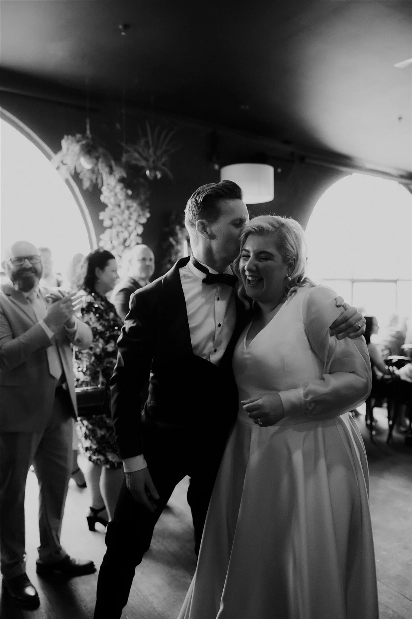 Fast-forward a year and this pair made it official in front of 80 of their loved ones at Panama Dining Room in Melbourne’s Fitzroy. And we’ve got to say, they did a stellar job lining up a pretty epic team of vendors. With Maegan Brown Moments on pics, celebrant Nat Sproal doing the legal bits oh-so beautifully, and Bloom Boy in charge of florals, this was one epic party.