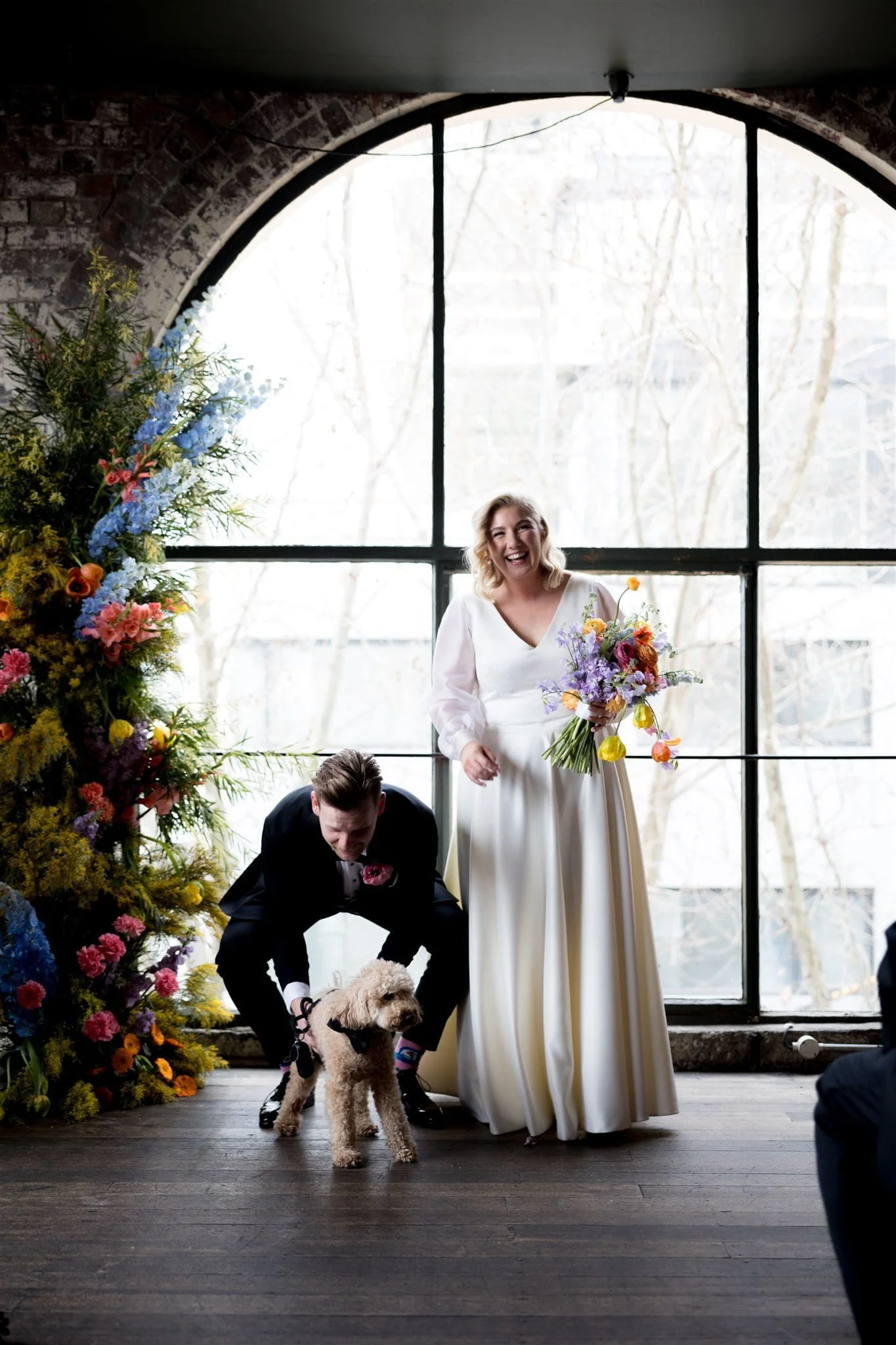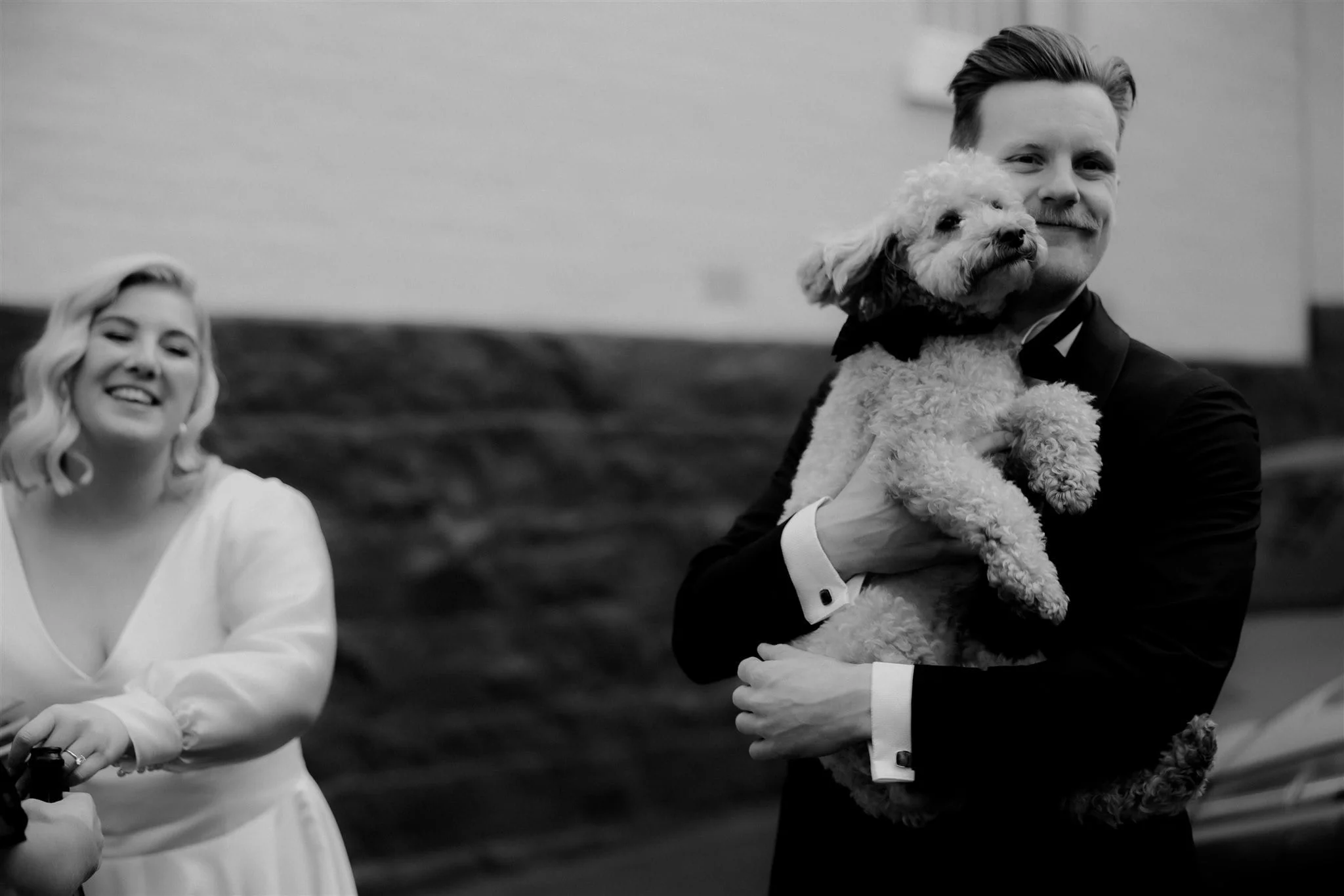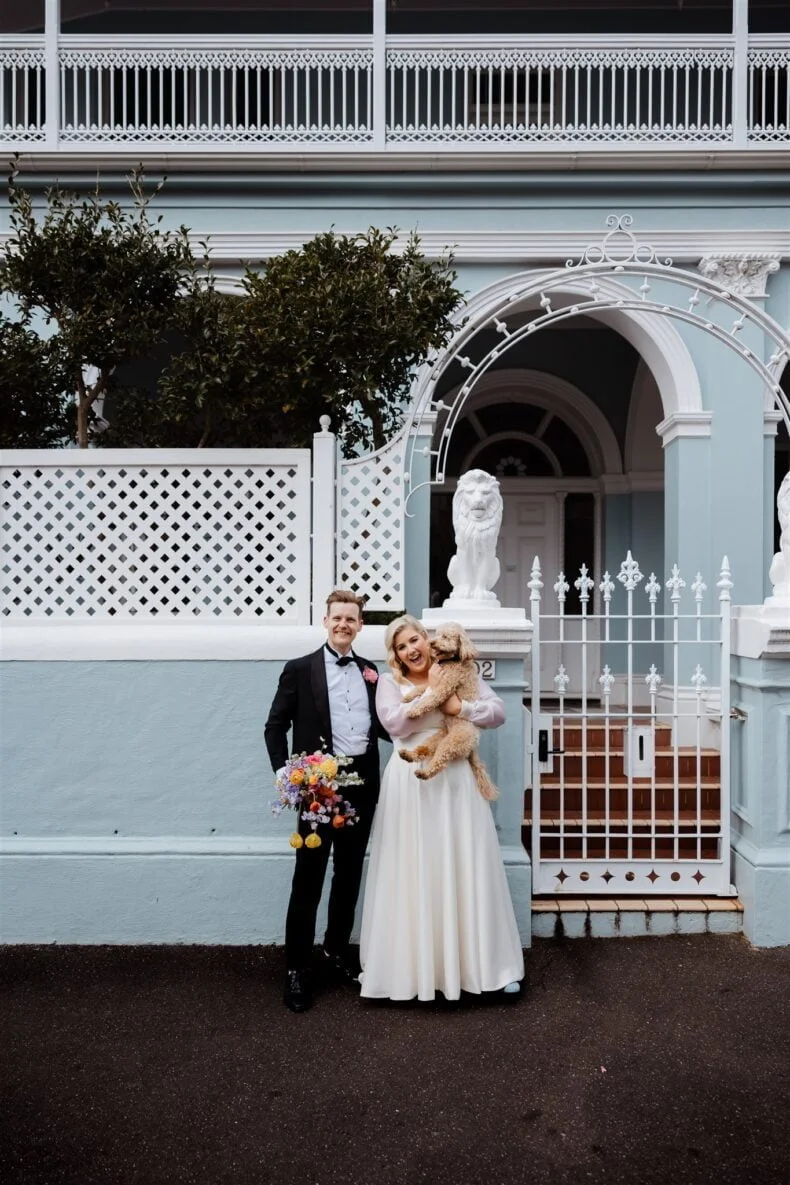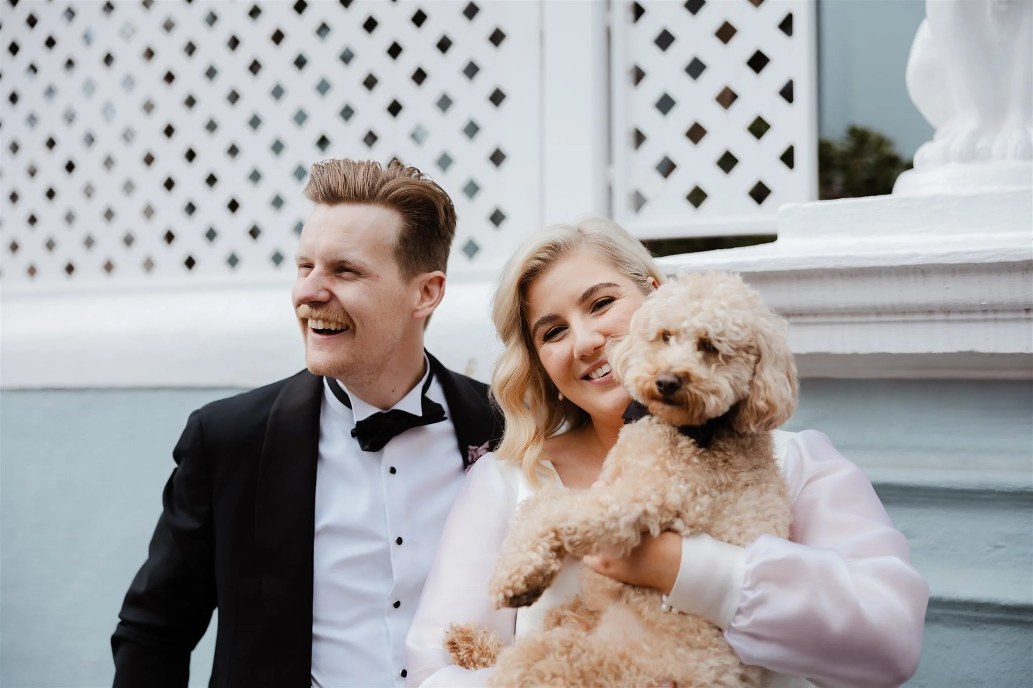 FAVE DEETS “Having our fur baby Louie (mini groodle) with us on the day was such a treat – and the photos are so fun with him in them. Ross at Bloom Boy did an incredible job on the flowers – they are always the first thing people comment on and looked so stunning not only in real life but in the photos. Espresso martinis to kick the dancefloor off was very us and well received, also.”