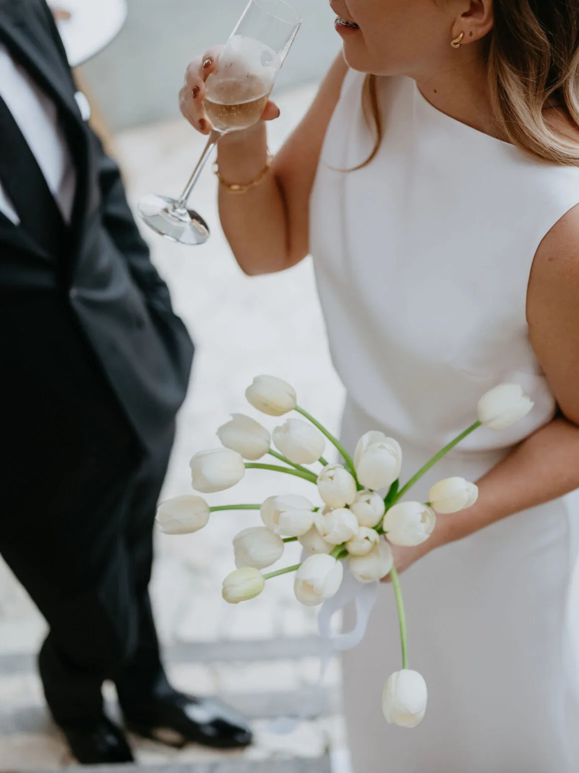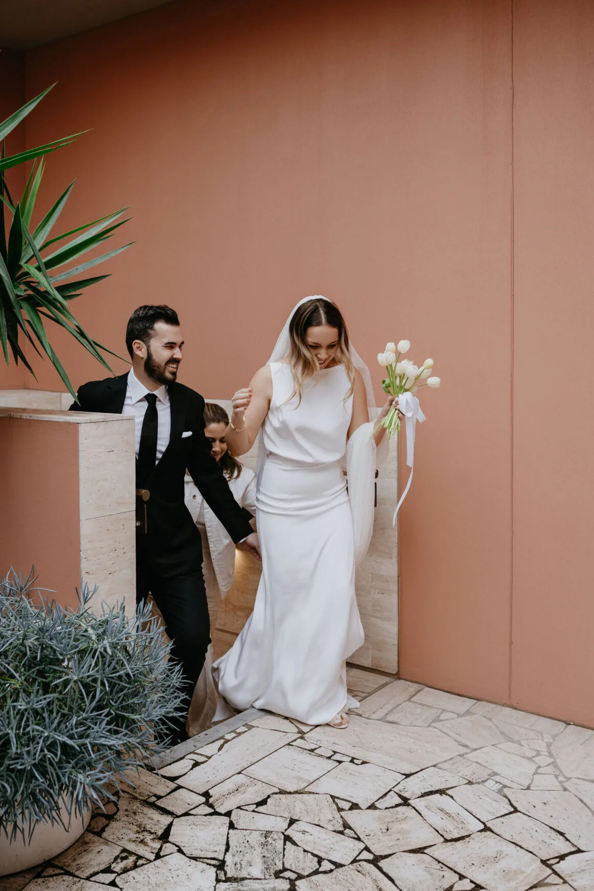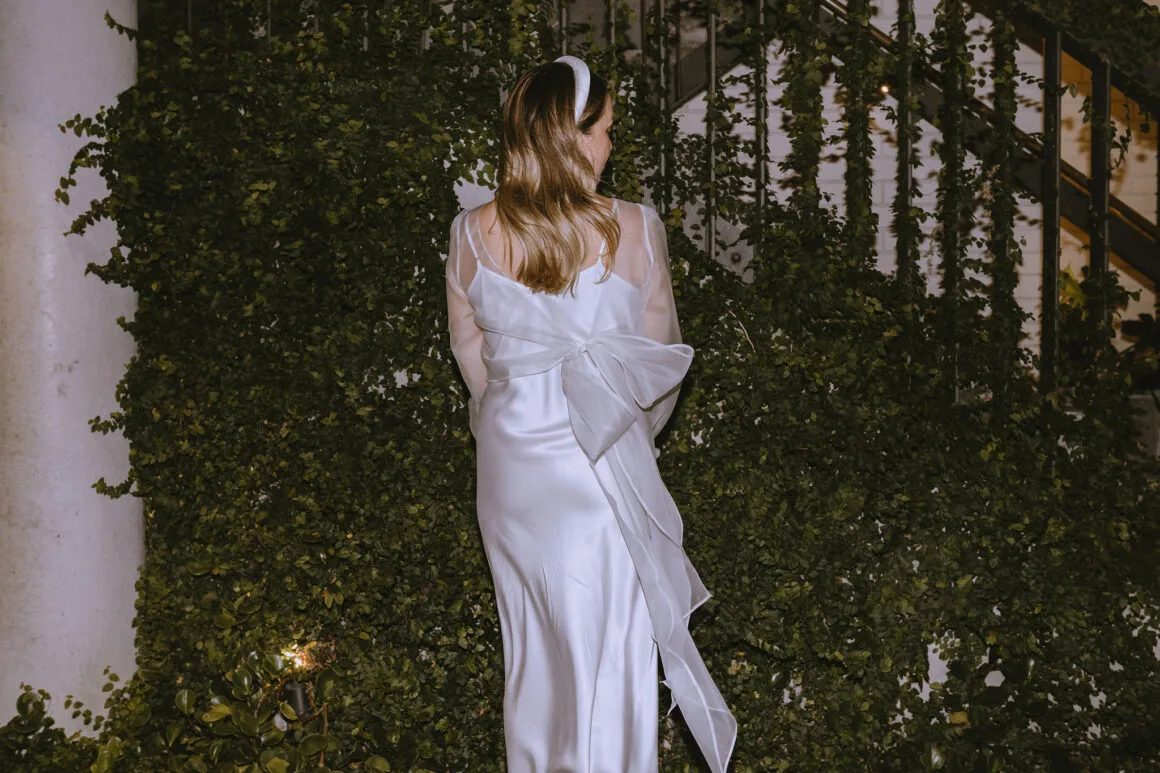 Don’t ask us to pick a favourite between Hayley’s two modern, minimalist bridal looks; it’s impossible. Meanwhile, the groom, looking equally chic, told us that M.J. Bale made getting dressed feel almost too easy.