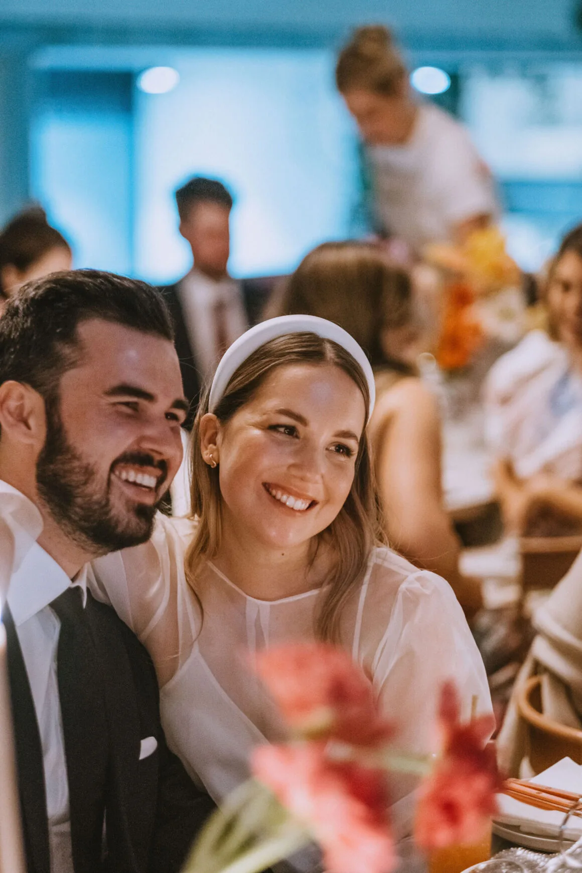 FAVE DETAILS “The florals and dinner styling were by far our favourite details. We had originally planned to do florals ourselves, but as the day got closer, we quickly realised it wasn’t as straightforward as we would have liked. By coincidence, I stumbled across an Instagram post where Fronta Floral has styled the private dining at Biànca, where our reception was. [It was two] weeks before the wedding, and we knew we needed to ditch our DIY plan and reach out . It was a Sunday morning and Davina responded to me within minutes. We let Davina take full creative license, which meant the styling was a complete surprise for everyone, including us!.”
