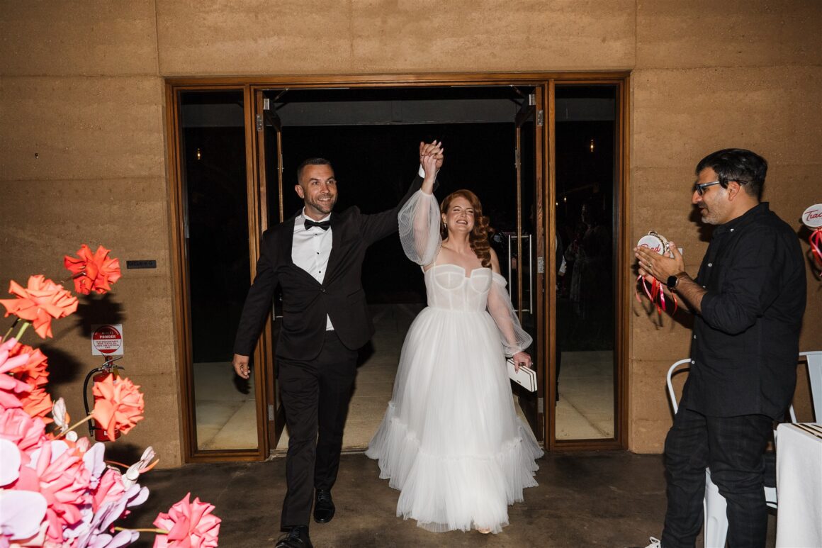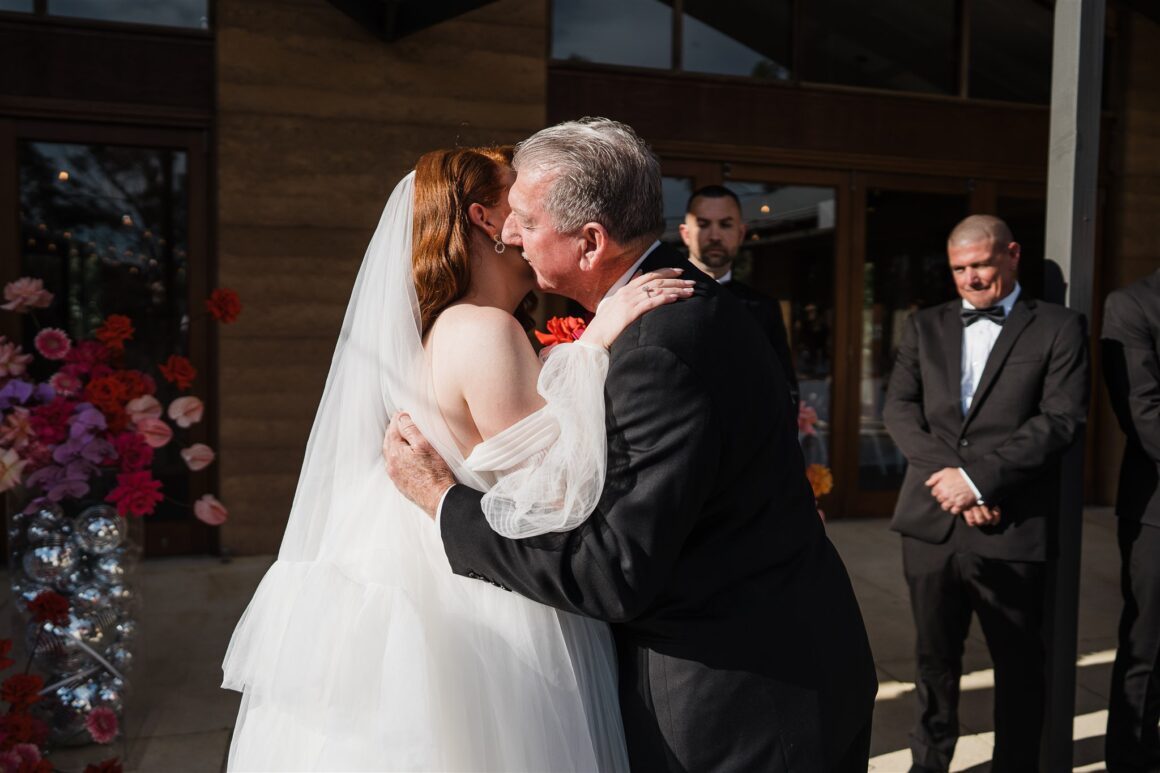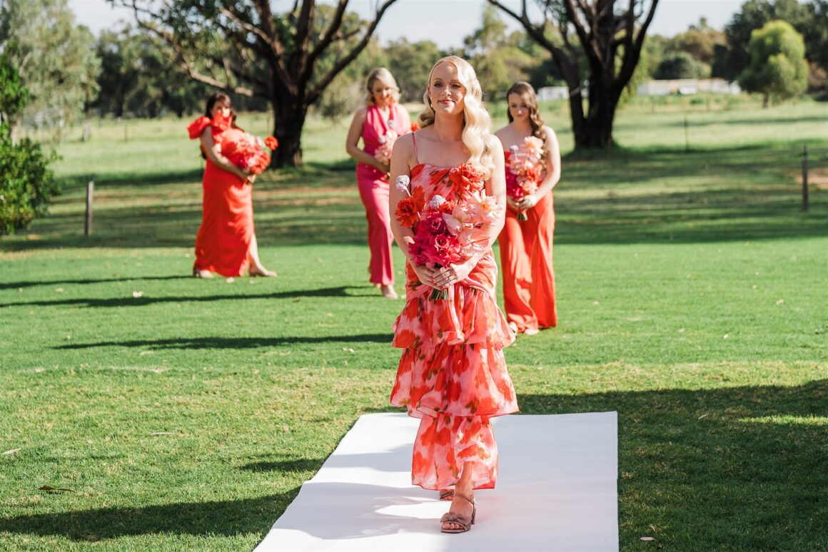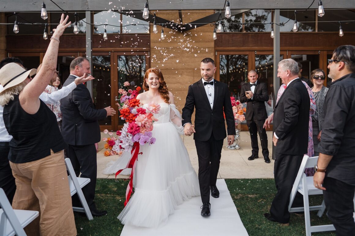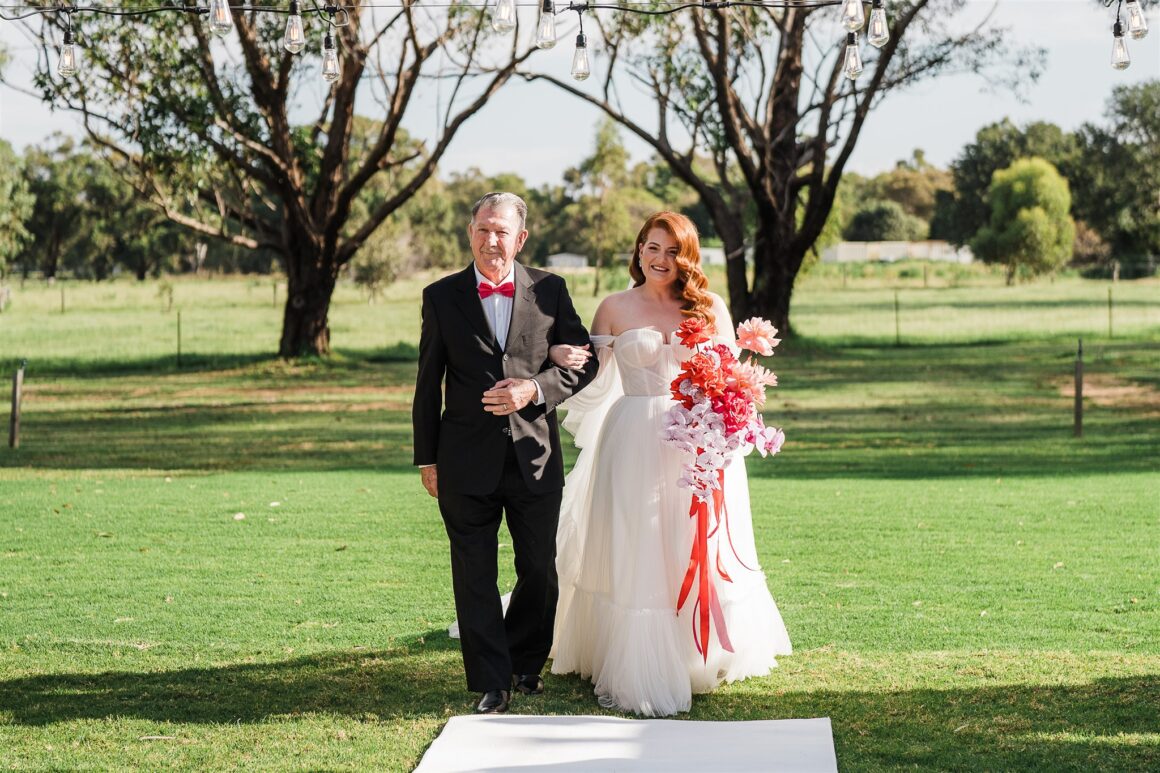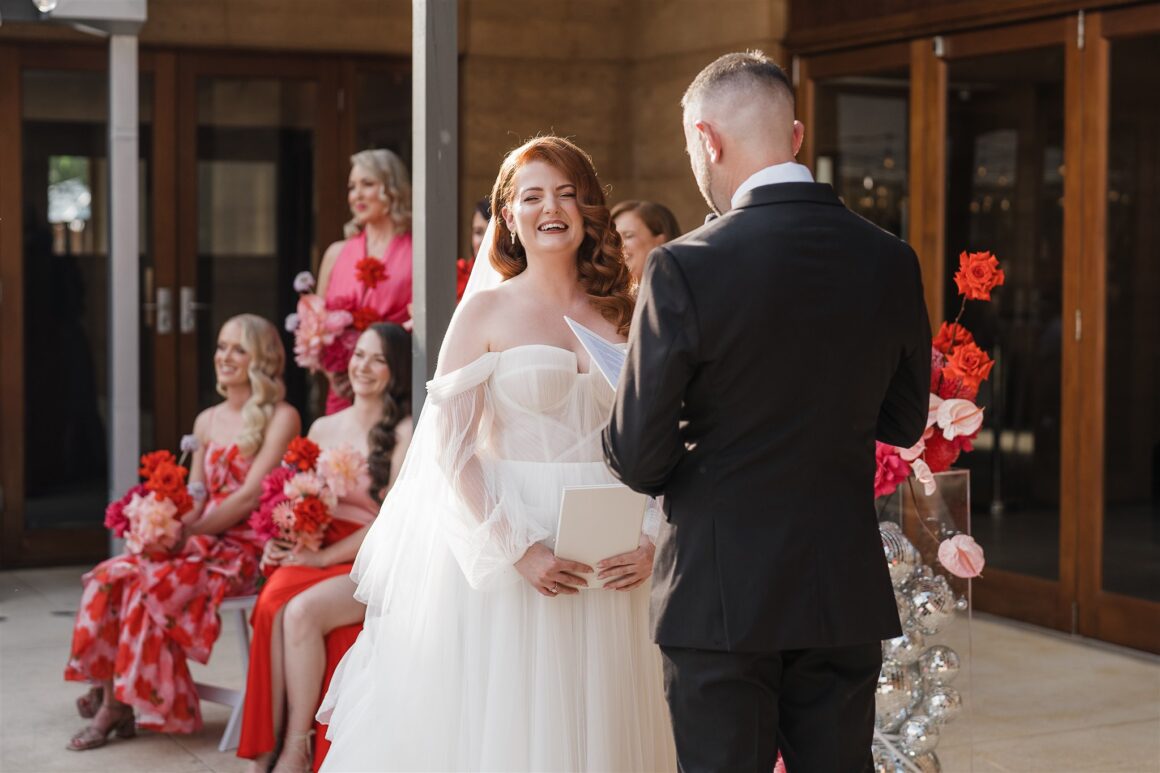 Below we chat with the newlyweds (and gaze lovingly at their wedding photos). Channelling “Valentine’s Day disco at sunset” energy, the pair picked Lily Farm House as their location, also calling on “totally outstanding” celebrant Love By Larissa, and photographer Peggy Saas, who brought a candid approach to capturing the celebration.