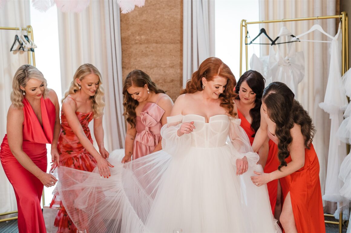 CONTRIBUTING VENDORS Photographer Peggy Saas Cinematographer Tyler & Jake Isard Florist & Cake Topper Franc Flora Bouquet Preservation Pressed Co Stationery, Signage & Wedding Video Editor Holly (Bride) Venue Lily Farm House Catering Acclaimed Catering Cake Maker Juniper Lane Bakehaus Hire Items Hire Society, Bubble & Bloom Event Hire Entertainment Tom Greble, Jasmine Skinner (Friend), Dolce Ensembles, Michelle Smith Celebrant & MC Love By Larissa Rings The Diamond Club, Slate Road Design Content Creator Cin Cin Creative THE BRIDE Bridal Gown Designer Alena Leena Bridal Bridal Boutique Ivory Bride Second Dress Steph Audino Veil Wedding Veil Of Dreams Via Etsy Shoes Loeffler Randall Accessories The Callie Corp, Aldo Hair Natasha Monastra – Koko Blaq Makeup Emer Rose Makeup Fragrance Ellis Brooklyn Bridesmaid Dresses Sheike, Petal & Pup, Hello Molly, Studio Lexi Bridesmaid Gifts Rosie Darling Co THE GROOM Suit & Groomsmen Suits Connor Shirt Tarocash Suspenders TheAttractiveGifts Via Etsy Tie Otaa Cufflinks Aiko Fashion Via eBay Shoes Spendless
