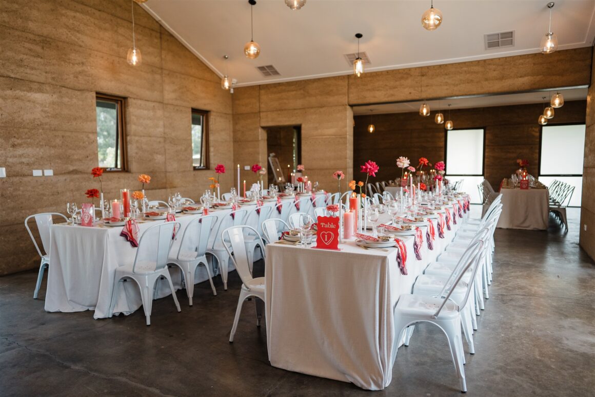 “We saw a few venues but found we were experiencing a lot of the same – too rustic, too hotel-conferencey, too beachy. We were set on wanting a venue where we loved the indoor wet-weather option as much as we loved the outdoors. Our search led us to Lily Farm House after we felt the other venues we looked at just weren’t quite our vibe. Walking into Lily Farm House and meeting the Hoffman family, whose family home it was before they turned it into a wedding venue, we knew immediately, this was it! The rammed earth walls, combined with the polished concrete floor, thoughtful lighting and subtle nods to a mid-century vibe, surrounded by beautiful gardens and lush green grass had us feel right at home, and we immediately gave each other that look – this was the one!”