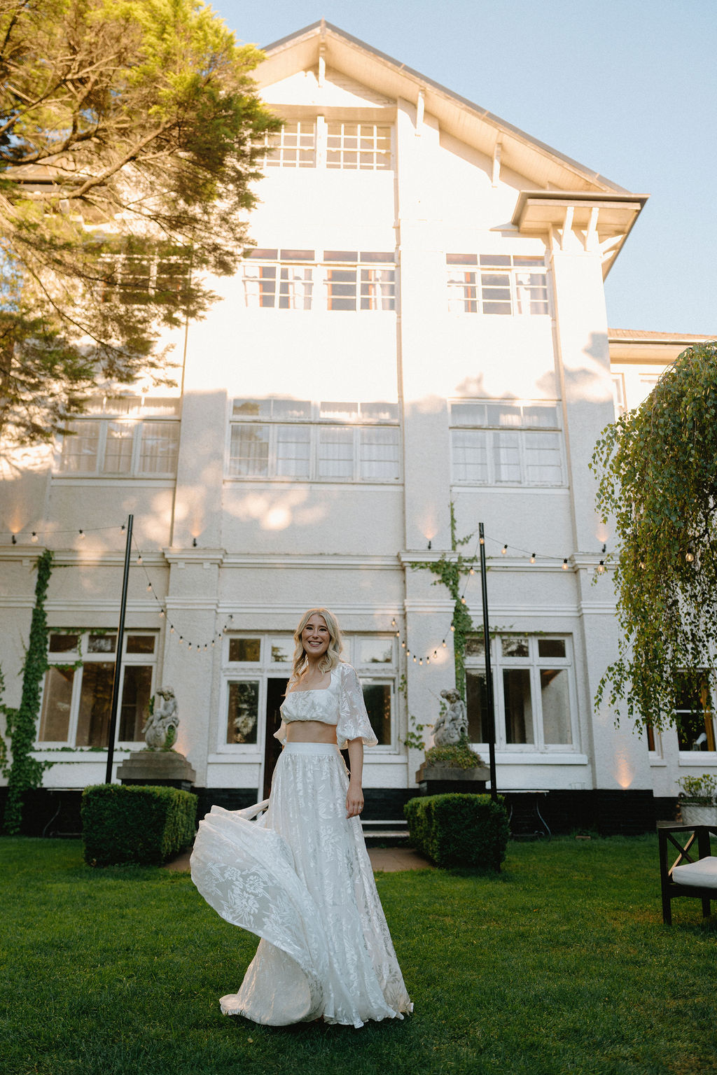 “The dress was from Grace Loves Lace. The attendant who served us was amazing (Alexandria Sydney Store and was dealt with by Loretta). The overall experience was easy and seamless, and they showed genuine care and patience to ensure you chose the perfect dress. I had been looking for around 3 months and had my eye on this dress for two years (but of course had to try on others to make sure). This dress was unique to any others I had seen. It was a two-piece separating the top and bottom. I had always wanted something different to what anybody else had and this delivered.”