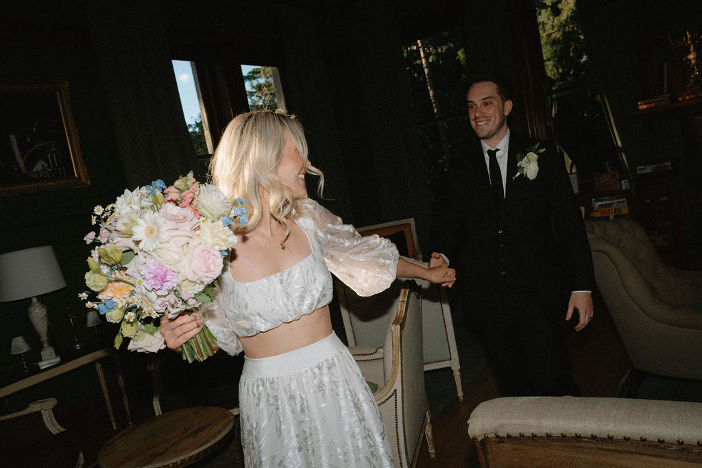 When they first got engaged, Cam and Immy admit they weren’t too fussed on having a wedding, and eloping looked a more attractive option. “But looking back now,” the newlyweds share, “we are so happy we went ahead and had everyone we love in one place. Our vendors were incredible and the venue was amazing. We couldn’t have asked for a better, more fun-filled day.”