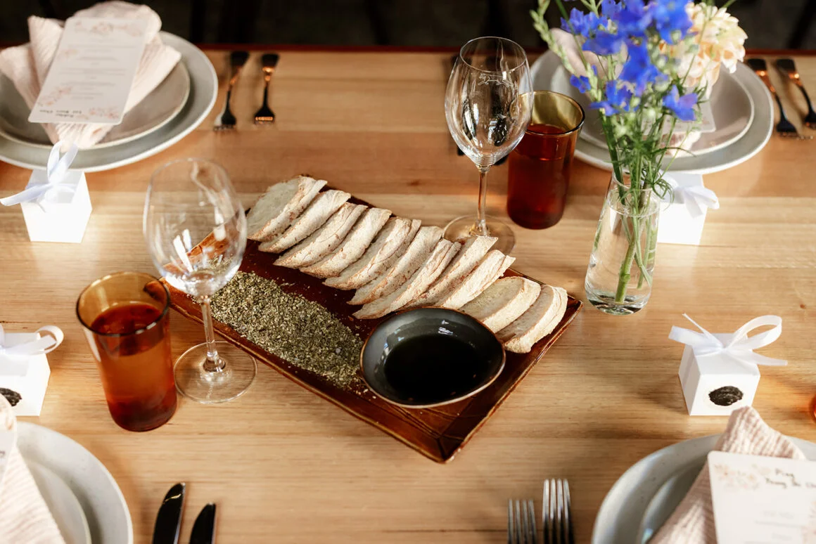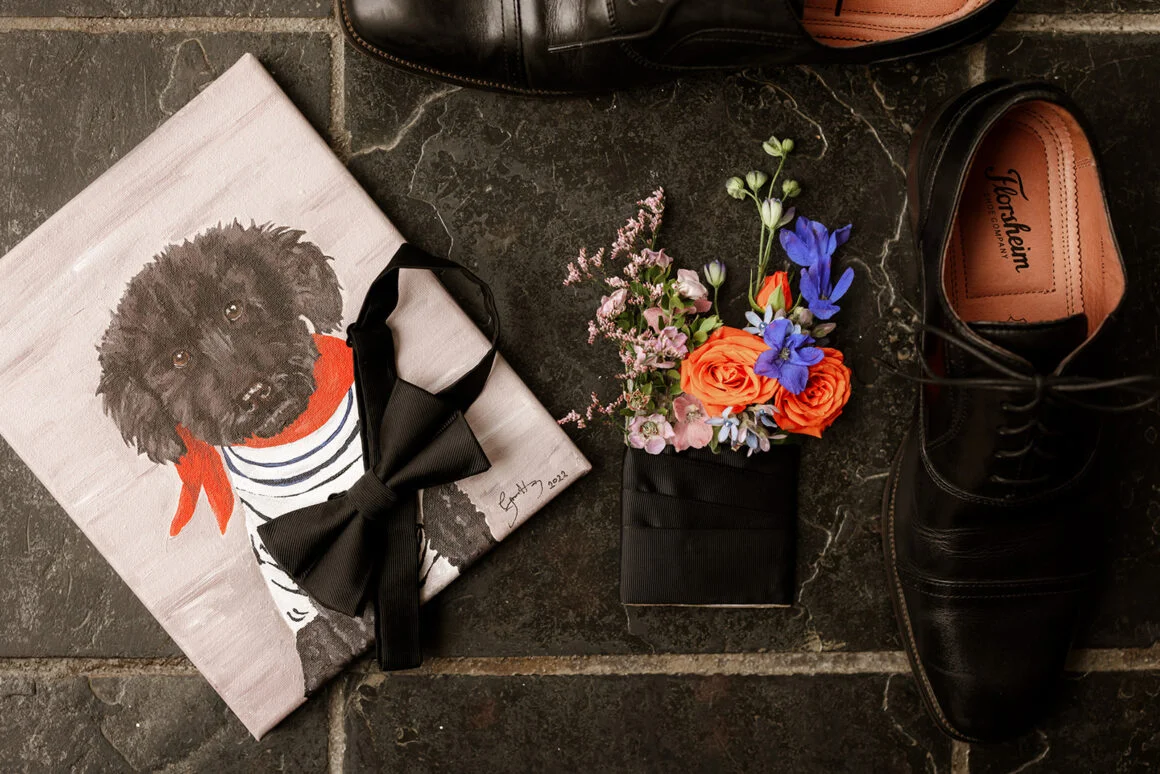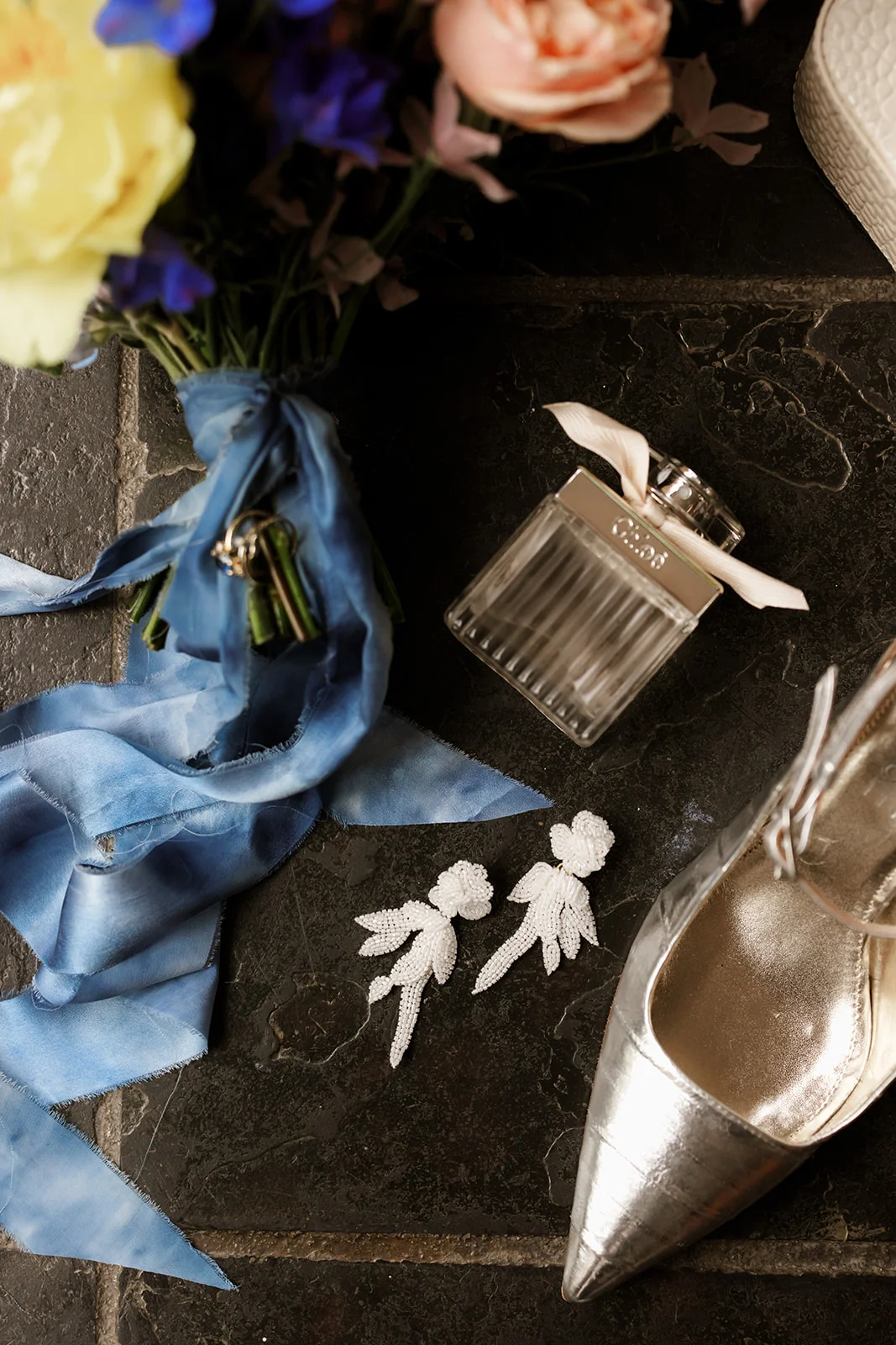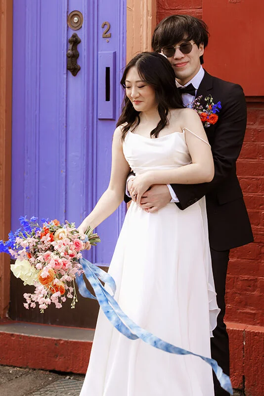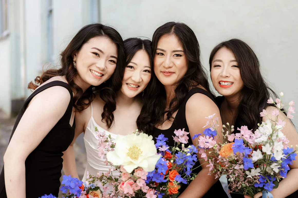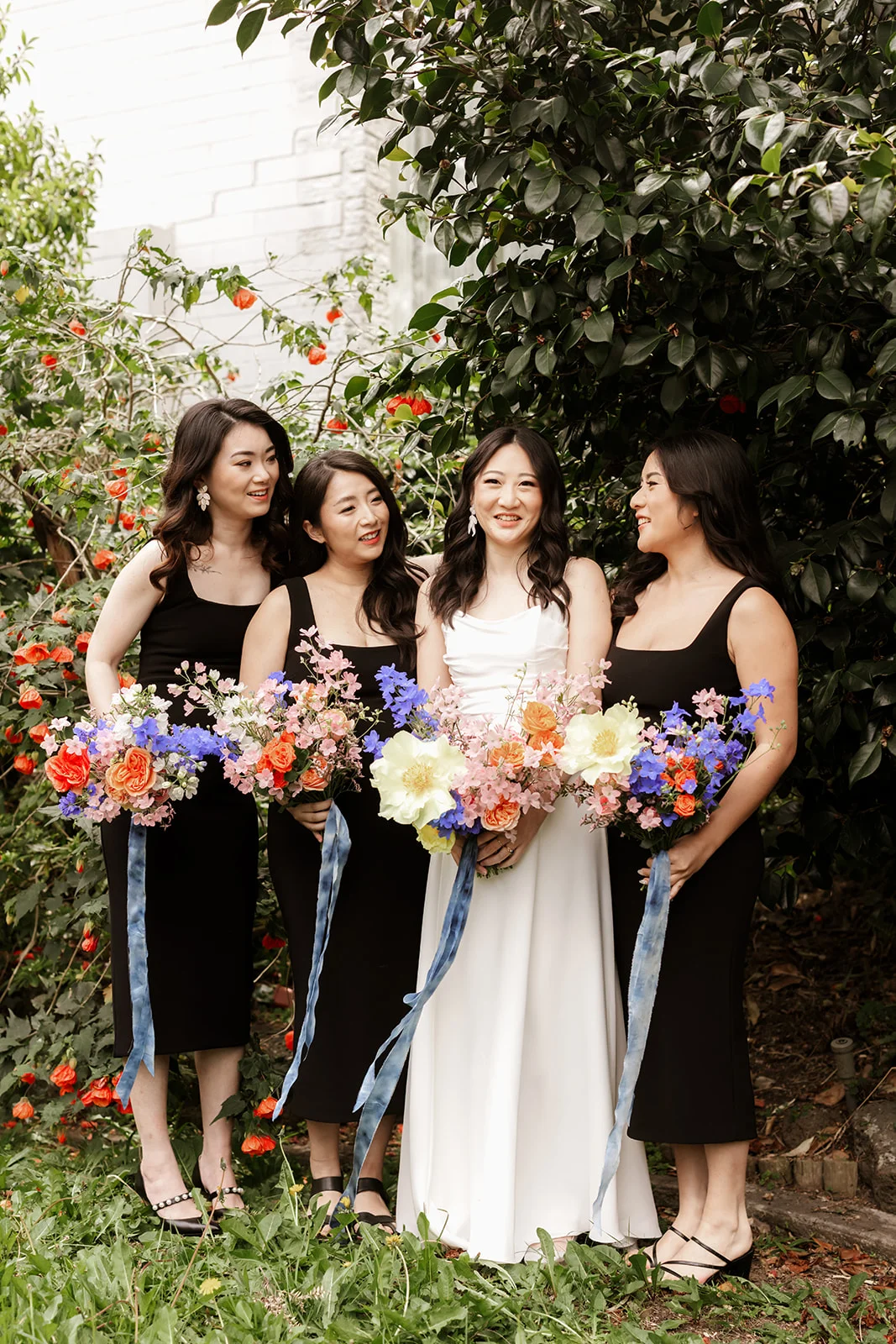FAVE DETAILS “I loved the bouquets from Katie at Ripple Studio. The bouquet style was quite loose with lots of movement and colour and made for great props for the photos. Although we were on a budget, I did want to prioritise having added florals for a bit of colour. We came up with the brief of loose and airy, garden-style, still-life painting, and Katie absolutely delivered! ”