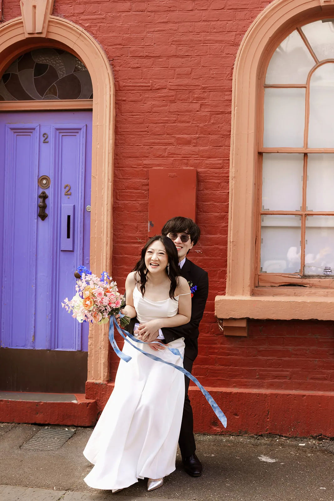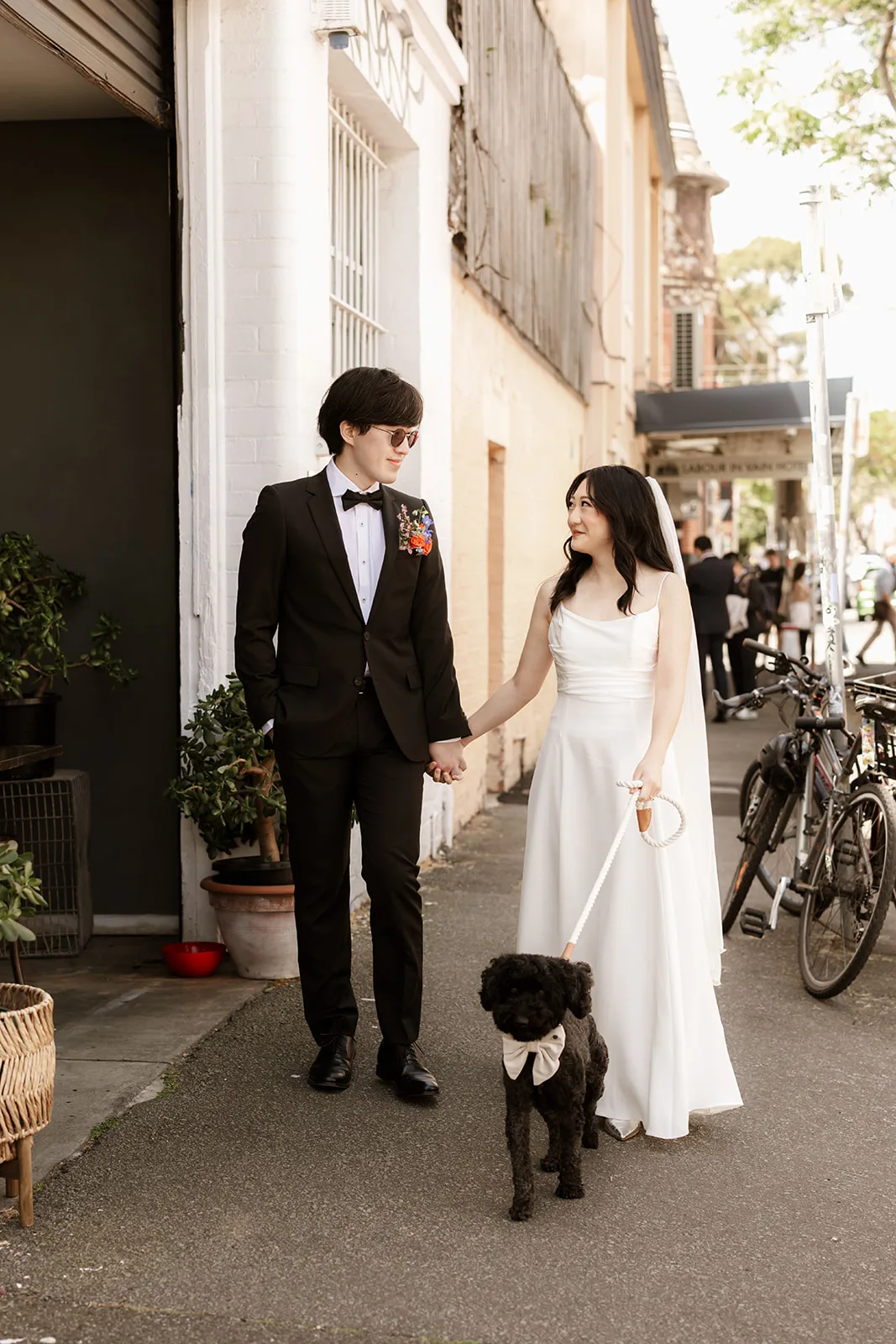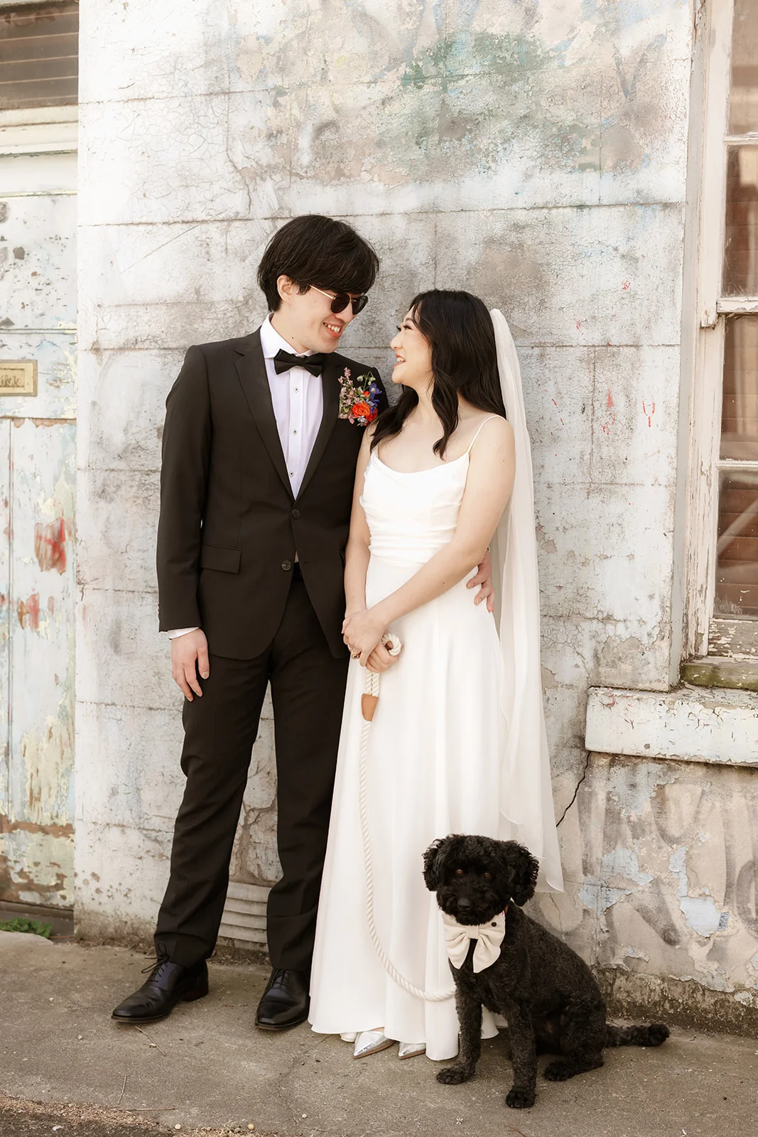 Ines and Jia met through mutual friends while in high school then went to uni together, and while on a trip to Phillp Island, Ines asked her now-husband out. “I still can’t believe my 19-year-old self had the guts to do that!” she laughs. Eleven years later, the pair got hitched at iconic Melbourne venue Rupert on Rupert and had our gal pal Nikki McCrone along for the ride to take these gorgeous photos of their favourite people and their cute, much-loved pooch Willa (just look at her stealing the show above).