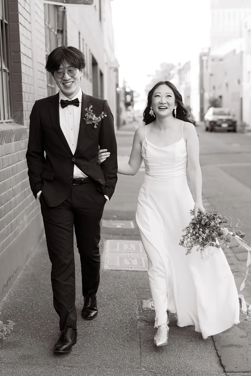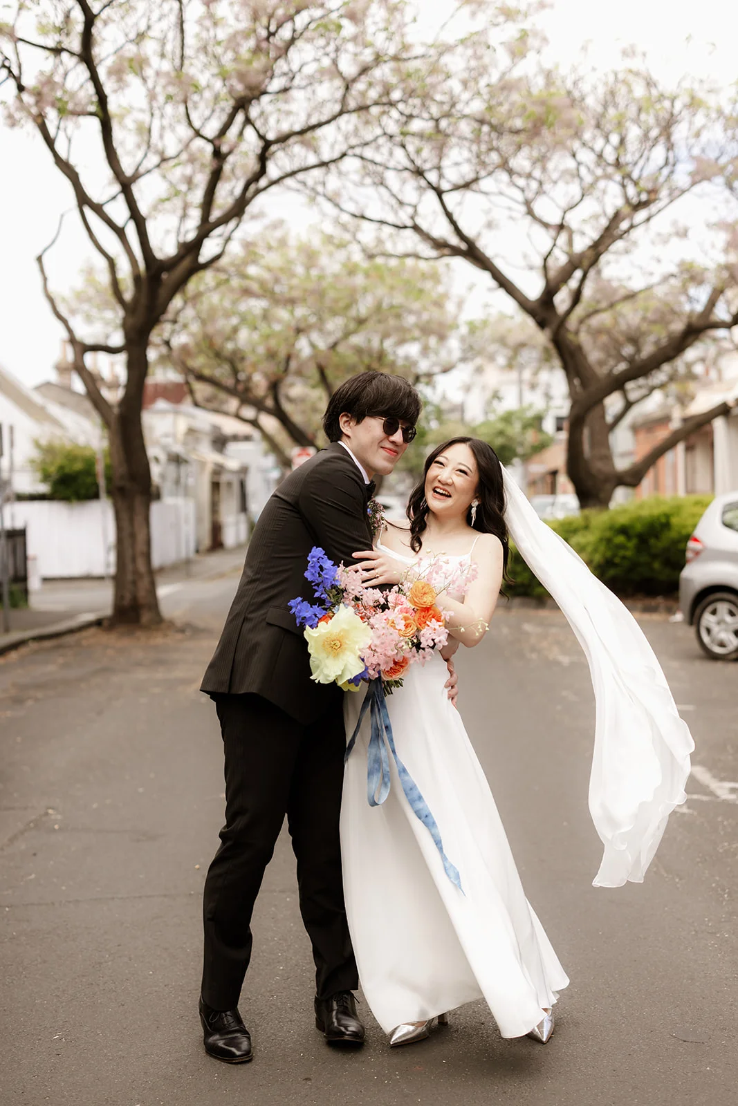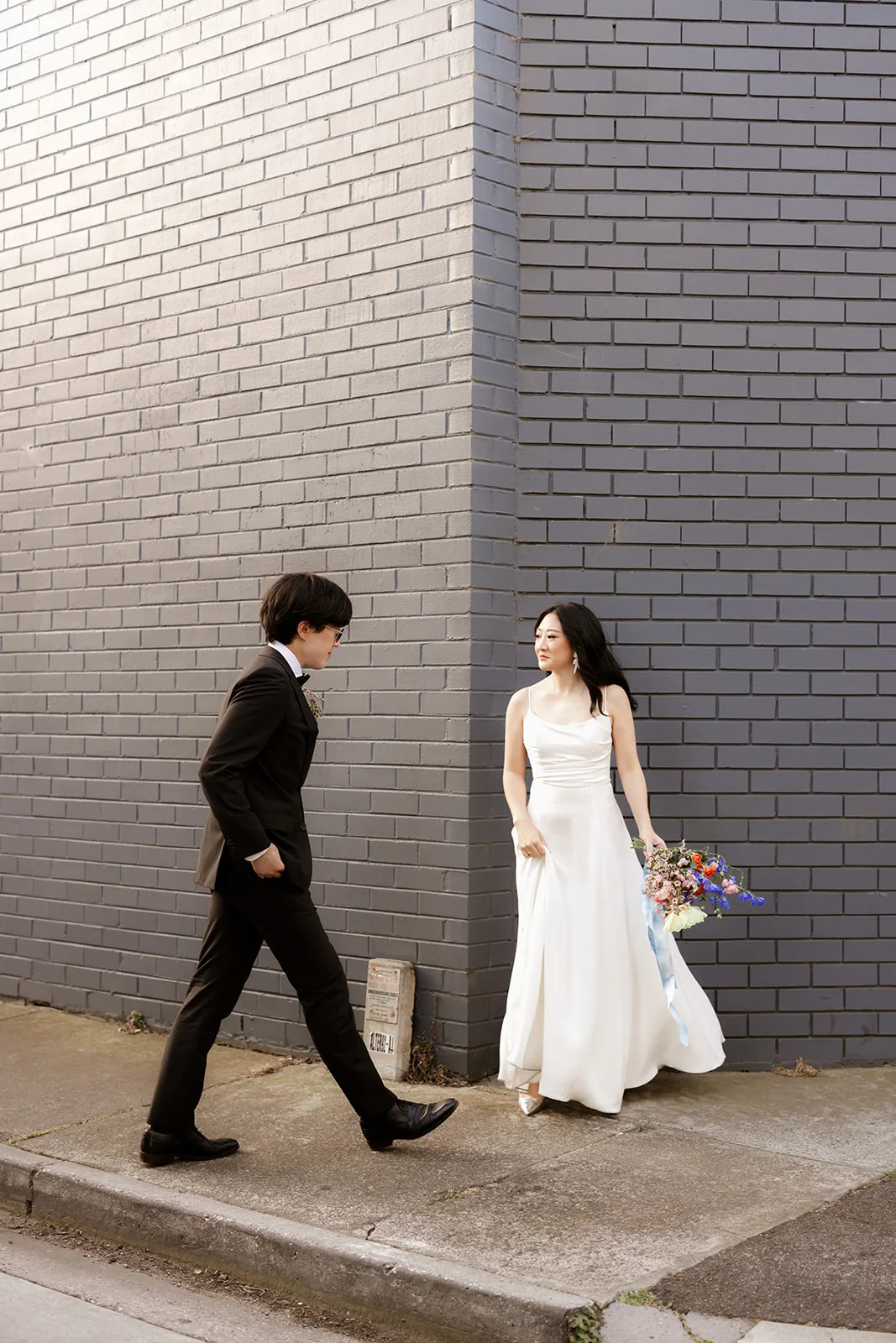 Ines and Jia met through mutual friends while in high school then went to uni together, and while on a trip to Phillp Island, Ines asked her now-husband out. “I still can’t believe my 19-year-old self had the guts to do that!” she laughs. Eleven years later, the pair got hitched at iconic Melbourne venue Rupert on Rupert and had our gal pal Nikki McCrone along for the ride to take these gorgeous photos of their favourite people and their cute, much-loved pooch Willa (just look at her stealing the show above).