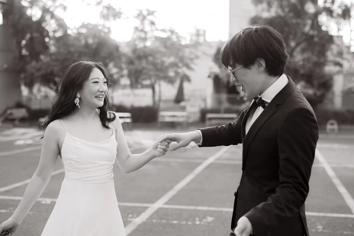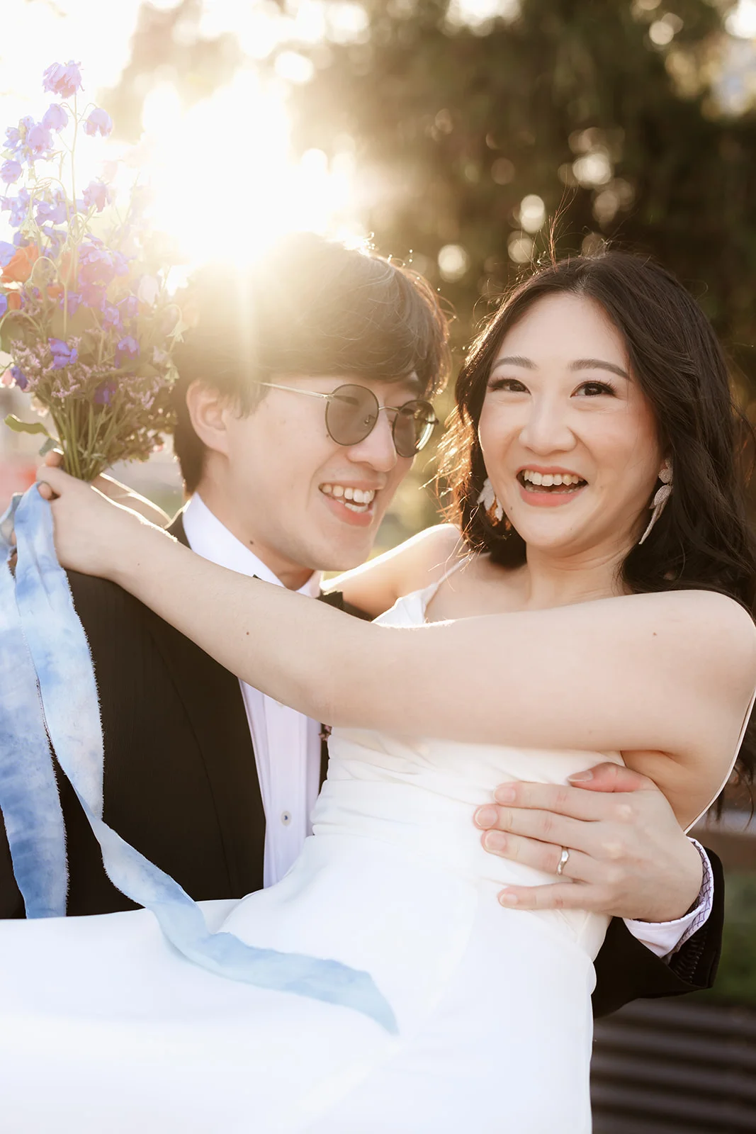 MEMORABLE MOMENTS “I had both my mum and dad walk me down the aisle, and it was really nice to have them both there with me while we were waiting for our cue. Jia and I also really liked that we took a break from the rest of the party to take golden hour photos with our photographer Nikki McCrone, who was awesome. It was lovely to have some quiet time together.”
