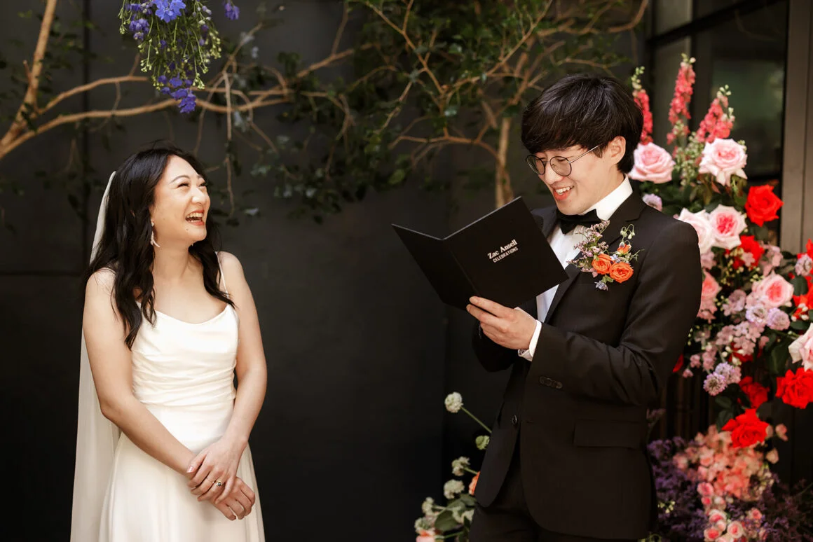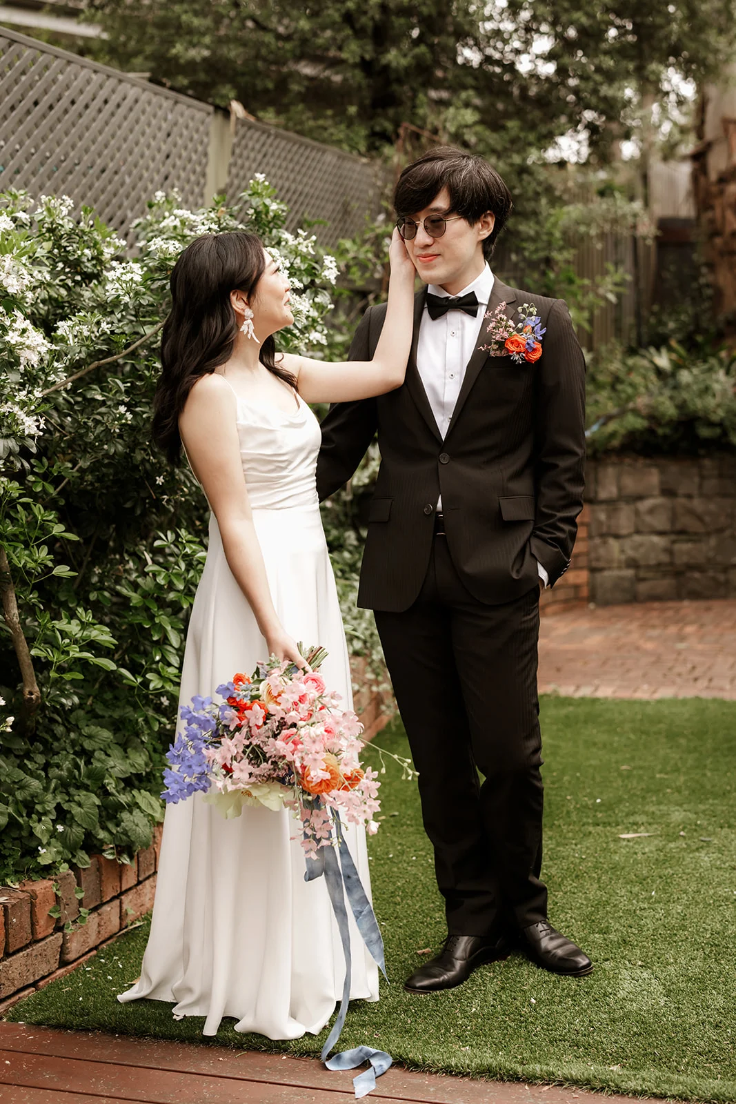 CONTRIBUTING VENDORS Photographer Nikki McCrone Florist Ripple Studio Stationery designed by bridesmaid Printer Vistaprint Ceremony & Reception Venue Rupert on Rupert Photo Booth Boothalicious Celebrant Zac Ansell Rings HLSK, Cushla Whiting THE BRIDE Bridal gown designer Judith Penak Bridal Boutique D’Italia Veil Sassi By Adronis via D’Italia Shoes L’eclisse Accessories A.B.Ellie, The Curated Hair & makeup Stephanie Cahyadi Fragrance Chloe Fleur de parfum Bridesmaid dresses Forever New THE GROOM Suit, Shirt & Groomsmen Suits MJ Bale Tie Groom’s own Shoes Florsheim