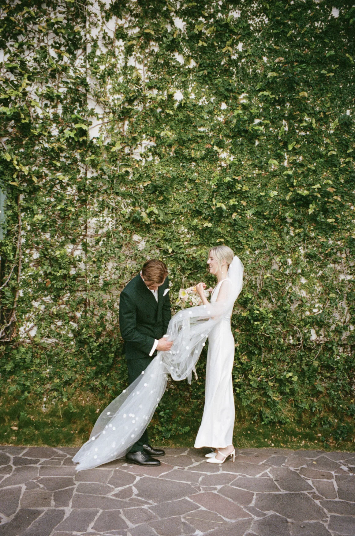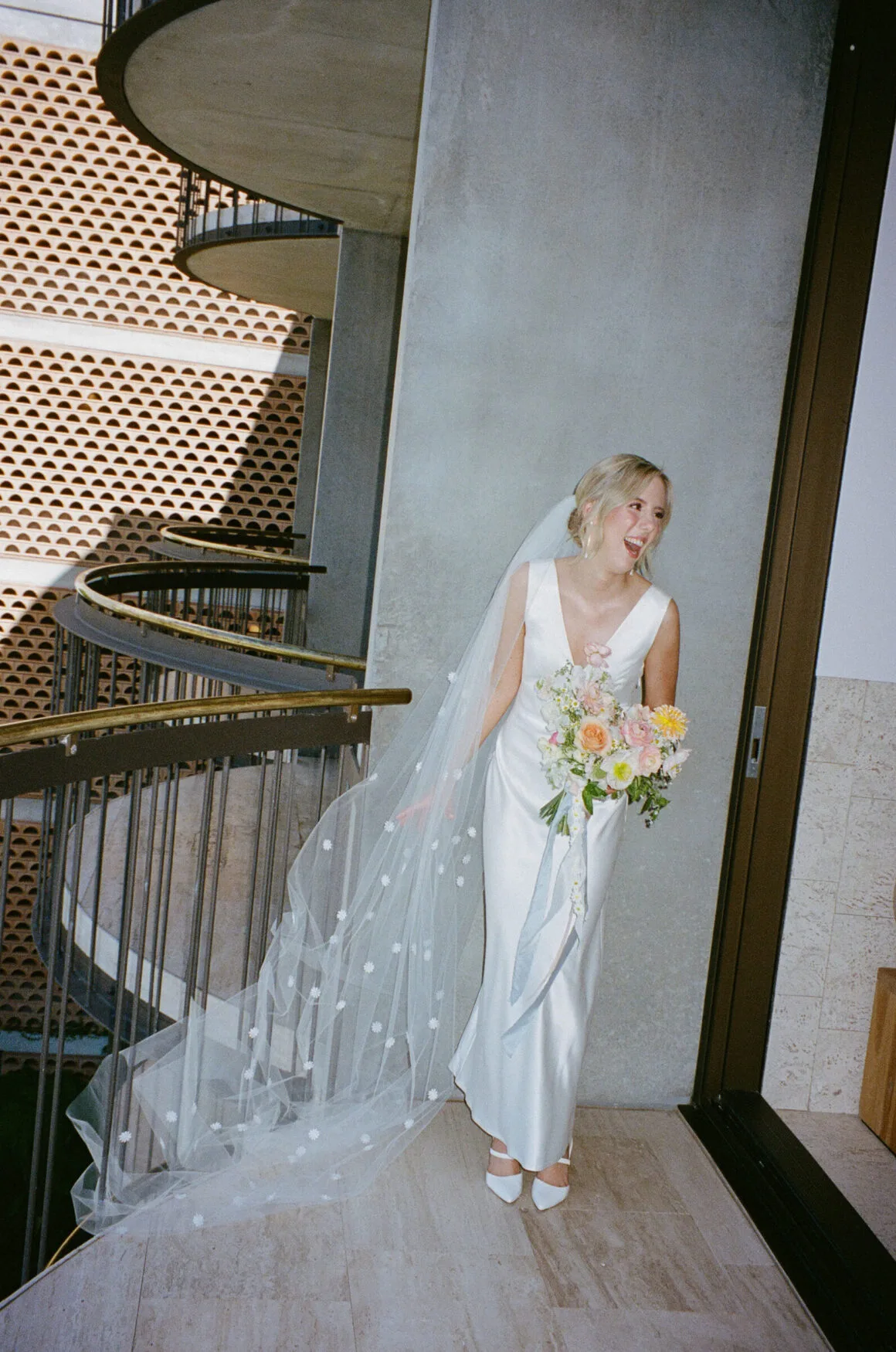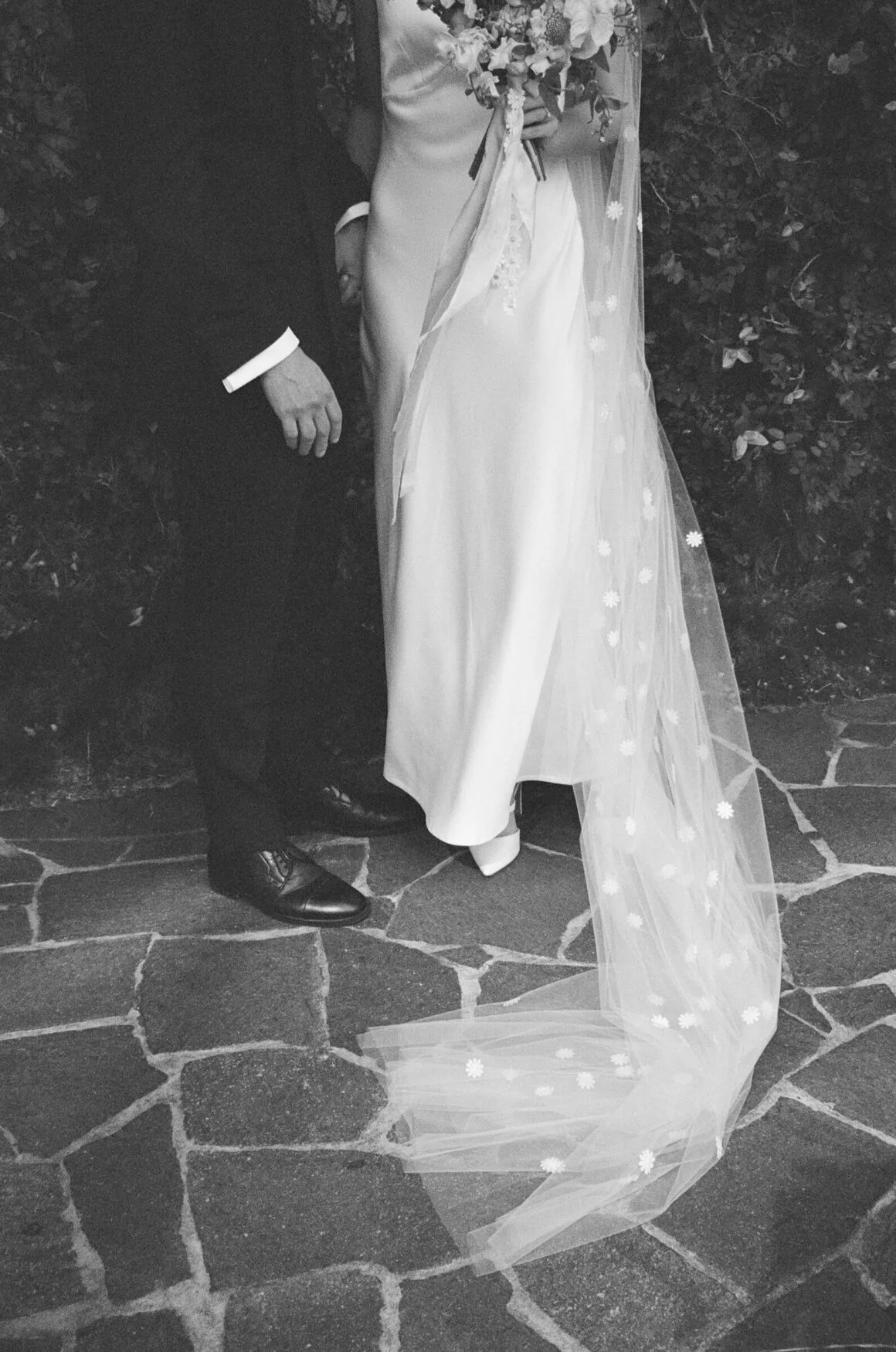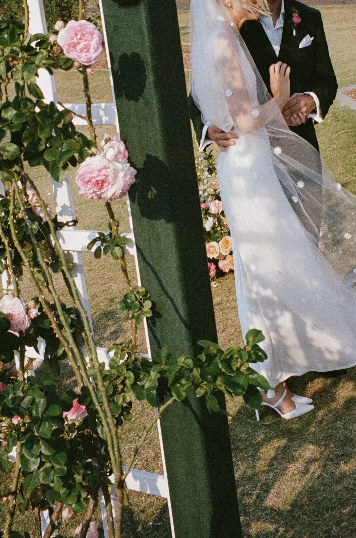 THE DRESS “I wanted something timeless, simple, and most importantly, comfortable enough to dance the night away in. Silk Laundry’s wedding dress collection ticked all the boxes. However, my absolute favourite part of my whole look was my veil. My mum is an incredible sewer and made me a beautiful veil, complete with hand-stitched daisies.”