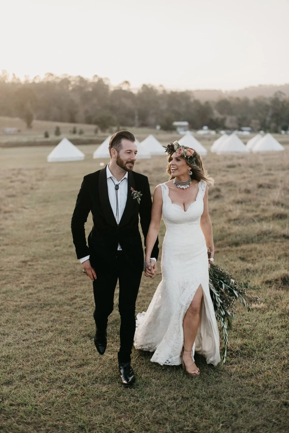 CONTRIBUTING VENDORS Photographer Ephemeral Creative Cinematographer Josue Films Event Planner, Stylist & Lighting Boho Sisters Florist Heavenly Blooms Stationery Fi Fy Fo Fum Designs Ceremony & Reception Yabbaloumba Retreat Catering L&L Co Events Decorative Elements Big W (Balloons & Bunting) Prop Hire Buzzing Events (Lawn games) Entertainment Cut a Rug DJ Celebrant Liz Sinclair Engagement Ring Cushla Whiting Wedding Bands Lee Brennan Design Glamping Tents Pitch Luxury Camping THE BRIDE Bridal Gown D’Italia Reception Dress Spell Bride Robes Cotton On Shoes Famous Footwear & Windsor Smith Earrings Sportsgirl Bracelet Lost Lover Necklace Petal + Pup Hair Tara Morris via Hendrx Hair Co Makeup Natalie Hunter Makeup Bridesmaid Dresses Showpo. THE GROOM Jacket Godwin Charlie Shirts Calibre Pants Nudie Jeans Co Bolo Ties CJ’s Rocks & Gems Shoes Diego’s Boots Watch Frederique Constant Grooming Biba THE KIDS Flower Girl & Page Boy Outfits Goosebumps Clothing THE PETS Pet Tutu’s Pawda Pets via Etsy