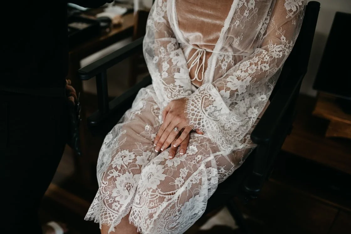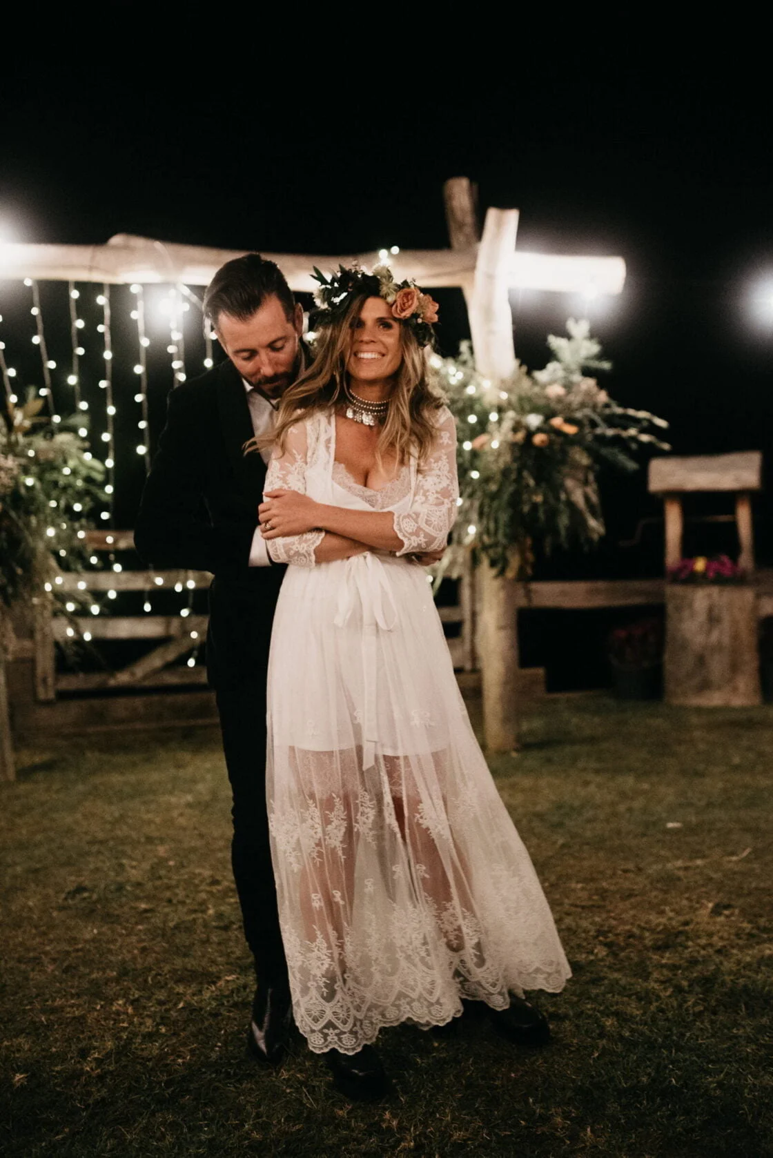 THE DRESS “I ended up getting my dress made from D’Italia. I tried on heaps of dresses and I couldn’t find anything perfect. It took about three months before I decided to get it made. It was hard finding something perfect for my body shape. A week before the wedding, I decided I wanted something a bit more comfortable for the dance floor, so I ordered the Duster dress from Spell Bride. It arrived in time and was perfect for busting a move.”