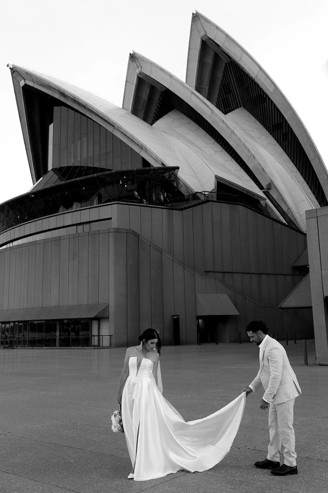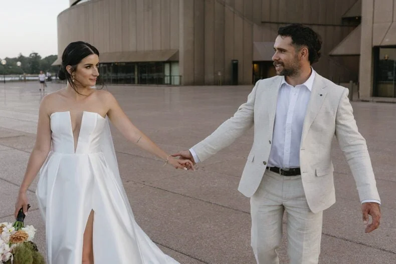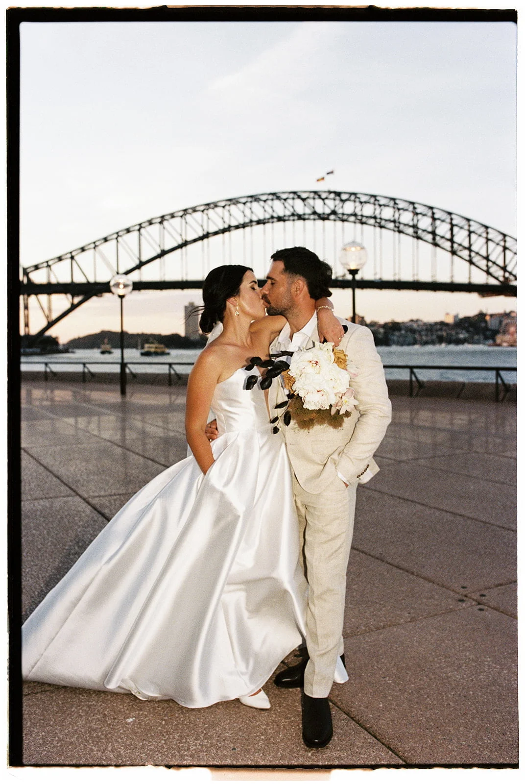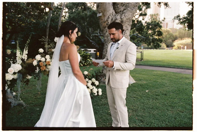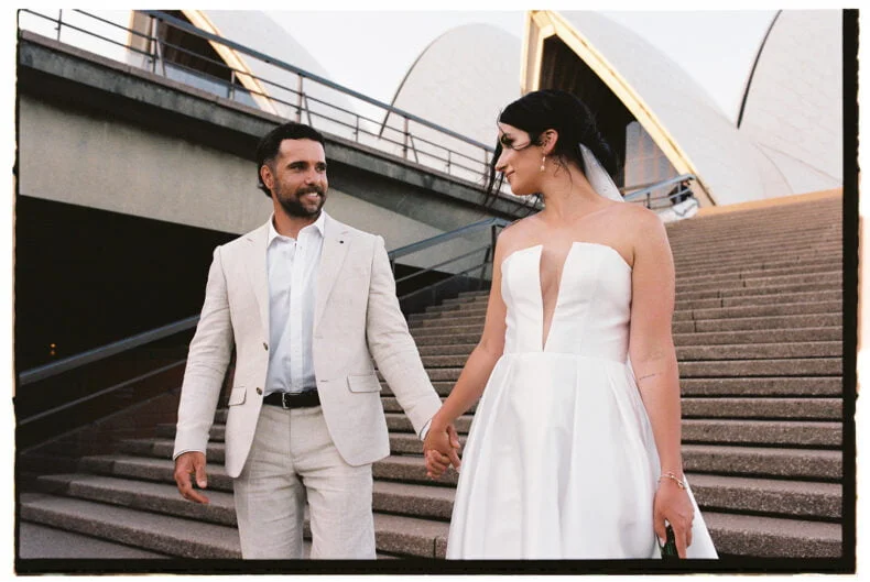 Completing their day with a fancy dinner (and a rare kid-free moment), the duo enjoyed an evening 100 per cent devoted to appreciating each other’s company. Jess and Aron’s intimate Sydney elopement really reminds us of what this thing is all about—two people celebrating their love and shared awesomeness together. Scroll down to hear from Jess and Aron and admire their stunning elopement album and film.