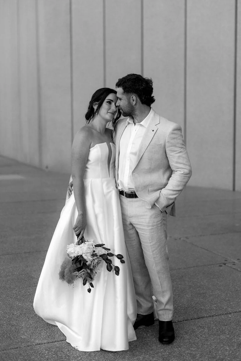 CONTRIBUTING VENDORS Photographer Pearce Brennan Cinematographer Bulb Creative Florist The Lillipillian Celebrant Josh Withers (The Elopement Collective) THE BRIDE Bridal Gown & Veil Designer Made With Love Bridal Shoes Kmart Accessories Aje Hair Boutique Blondes Makeup Kayla Clifford Fragrance Dior THE GROOM Sui Rundle Tailoring Shoes R.M. Williams Grooming Gianni Erina