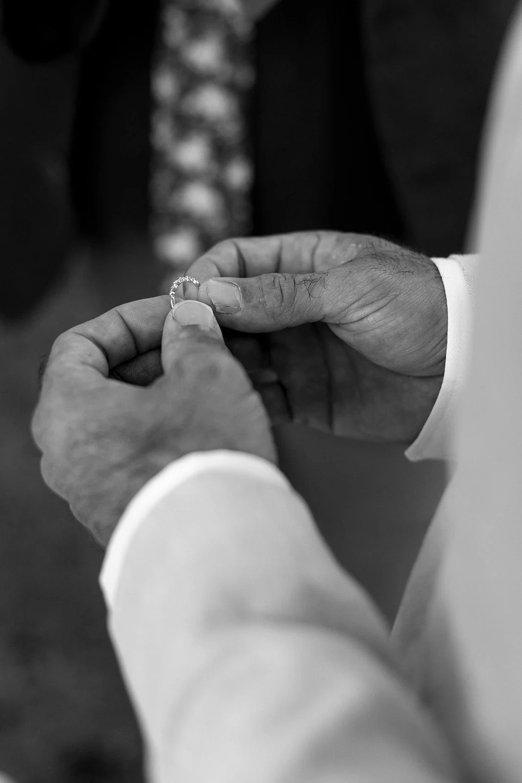 THE PROPOSAL “I had been trying to do it for a long time but chickened out so many times before. I eventually told our son about it and he helped me set up a picnic on our back deck with champagne and a cheese platter. Having just woken up from a nap, Jess came out very surprised, still in pyjamas. I was on one knee with our son standing next to me. It was very special. [We were engaged] for approximately two years. We thought it would have been longer, but in the early hours of the morning, Jess was up with our newborn daughter and saw a post from The Elopement Collective, who had a call-out for couples who hoped to get married in December. The location was in Sydney, which isn’t too far from us. Jess had been in love with their stuff for a long time, so we jumped at the chance.”