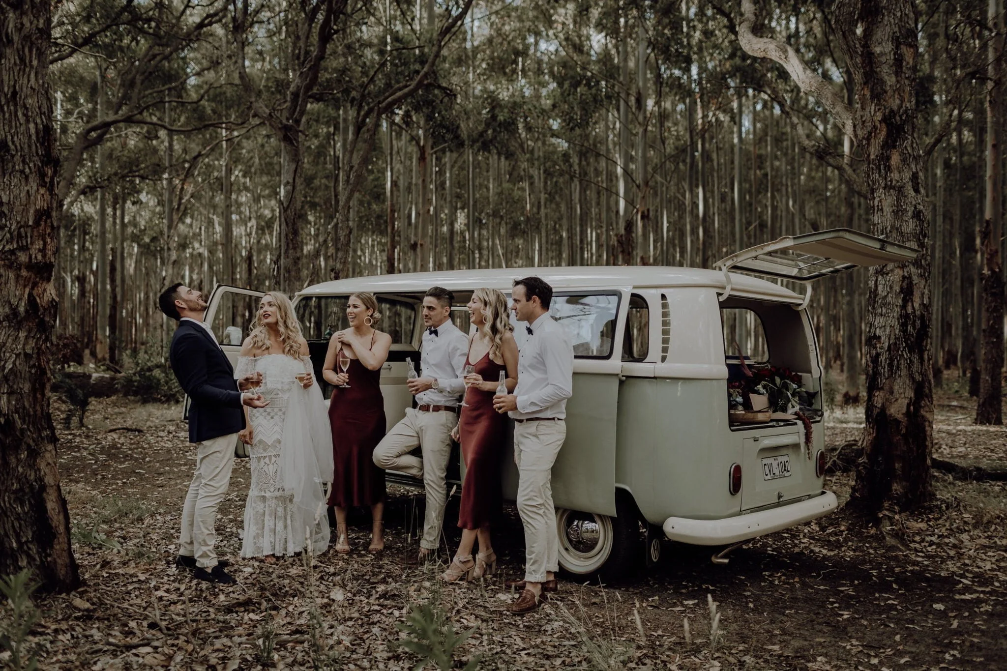 CONTRIBUTING VENDORS Photographer Tyler Brown Ceremony & Reception Windance Margaret River Wedding Coordinator Yallingup Event HIre Catering & Food Truck Dal Pizzaiolo/ Domenico Catering Bar Billiecart Bar-a-Van Hire Items Yallingup Event Hire Celebrant Carla Patterson Transport Dunsborough Wedding Co. Kombi BRIDE Bridal Gown & Veil Grace Loves Lace Earrings Christie Nicolaides Hair & Makeup Brittany Mason Makeup Bridesmaid Dresses Silk Laundry Bridesmaid Gifts The Daily Edited & F+H Jewellery Engagement Ring James Allen Wedding band Everett GROOM Jacket Paul Smith, Shirt Parker & Co, Pants M.J. Bale, Shoes Tods Grooming Suedehead Barber & Record Shop Groomsmen Suits M.J. Bale & yd. Wedding Band Averie Jewelry