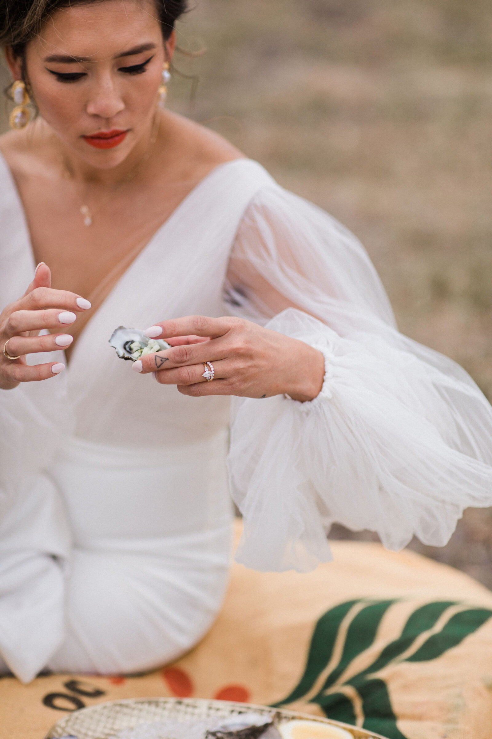 THE DRESS “It was at Love Marie in Camden where I found my dress. Having no specific style in mind, I entered the boutique and perused what was available. The final decision came down to the dress I chose, Melrose by Chosen by Kyha, and another popular one, Hazel. While I liked both, the fit of the Melrose dress and the insight from Amy at Love Marie, mentioning its uniqueness, swayed my choice.”