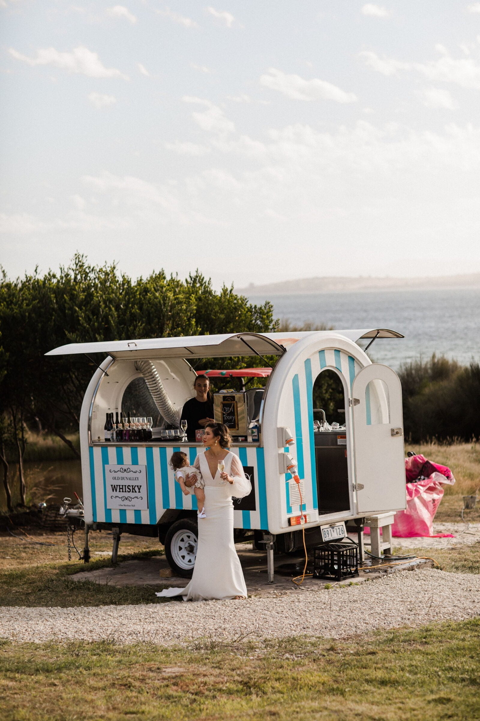 STANDOUT VENDORS “Sabre Catering + Events – the catering and the service they provided was above and beyond. Dunallay Bay Distillery – Mum and her partner Mark opened up their business and their home to us and our friends, and created a beautiful space for us to celebrate. To top it off, they provided us with beautiful 200mL bottles of gin to give to our guests as wedding favours. And Baker Boys Band – everyone loved the vibe and music.”