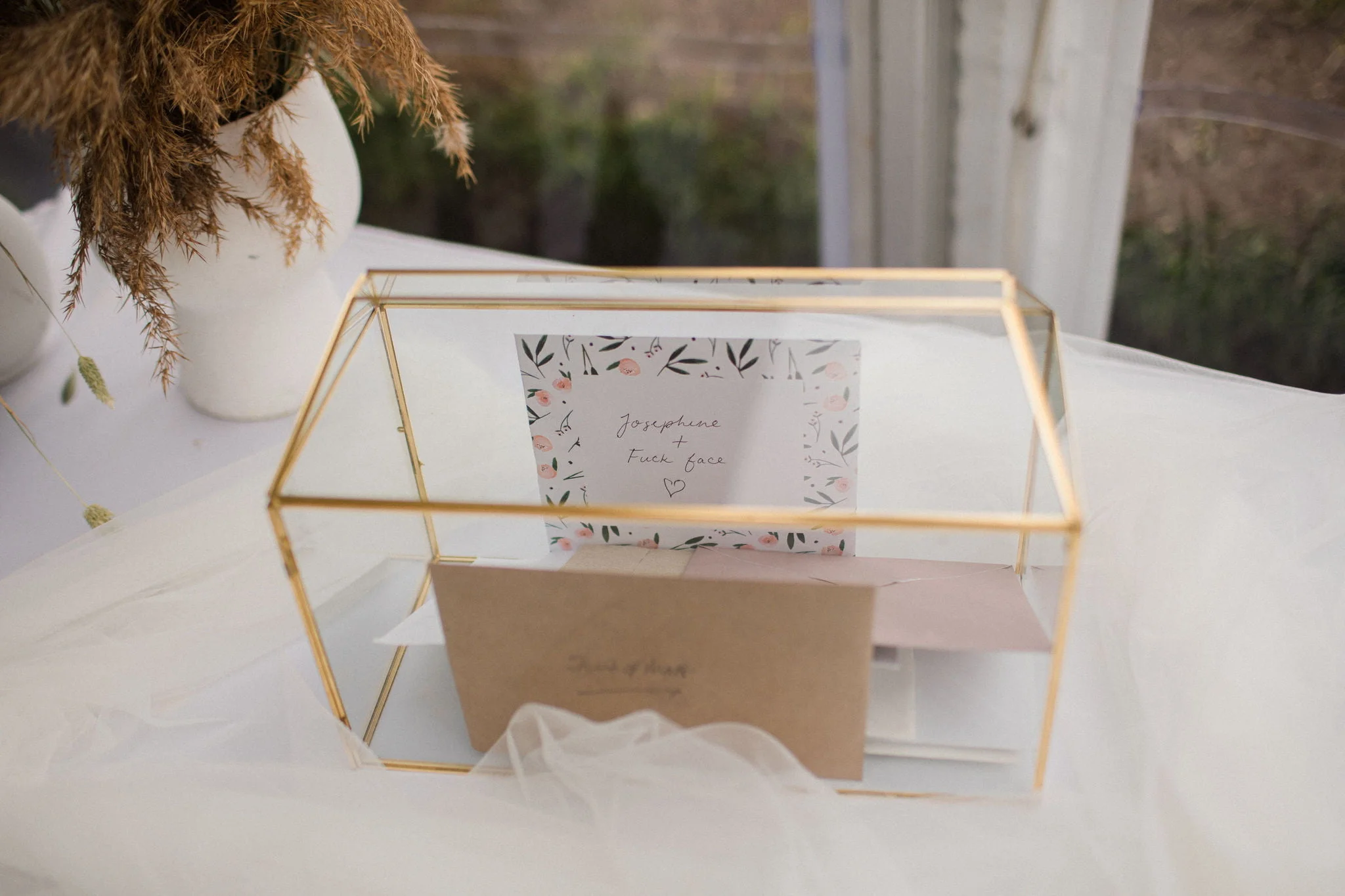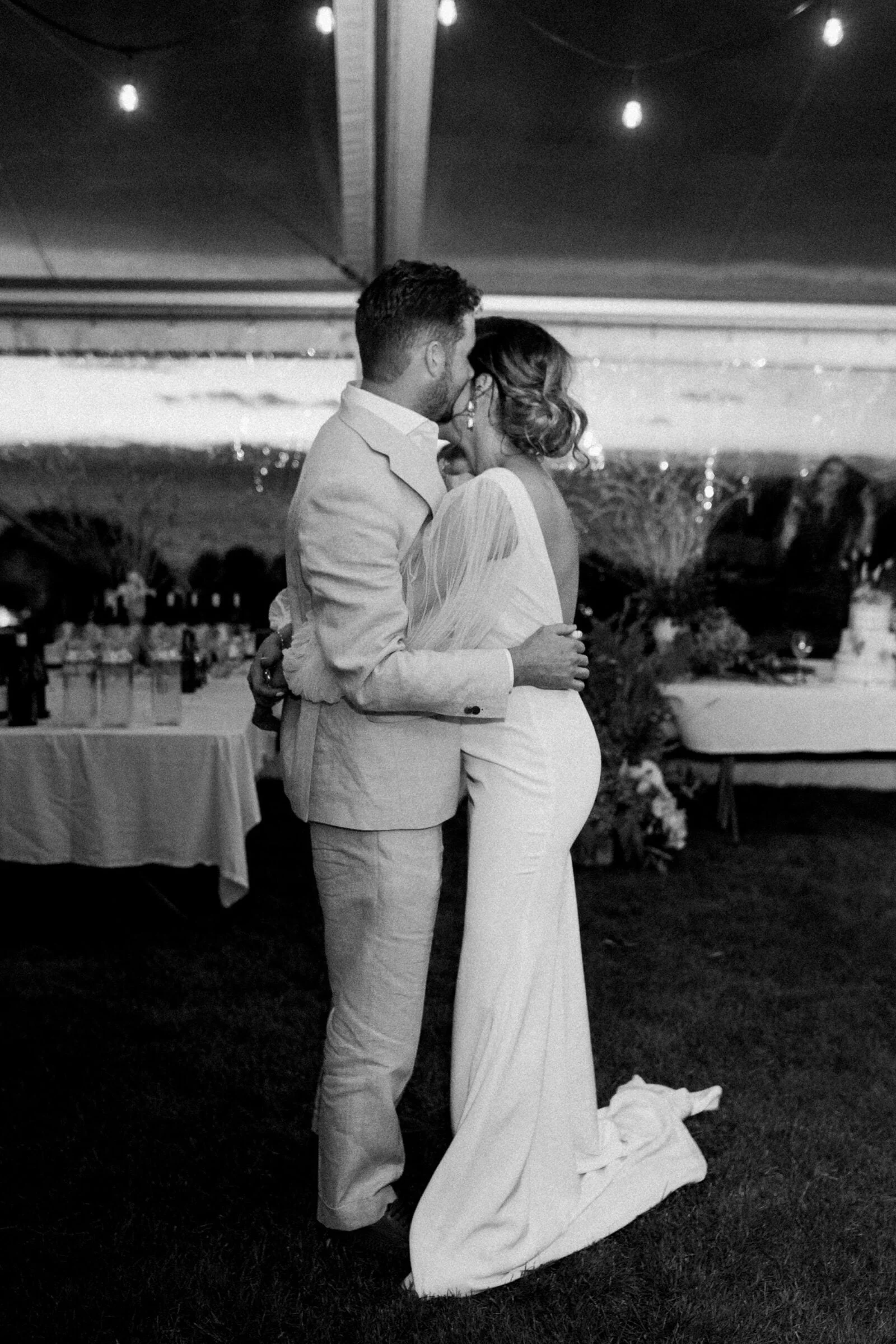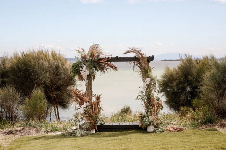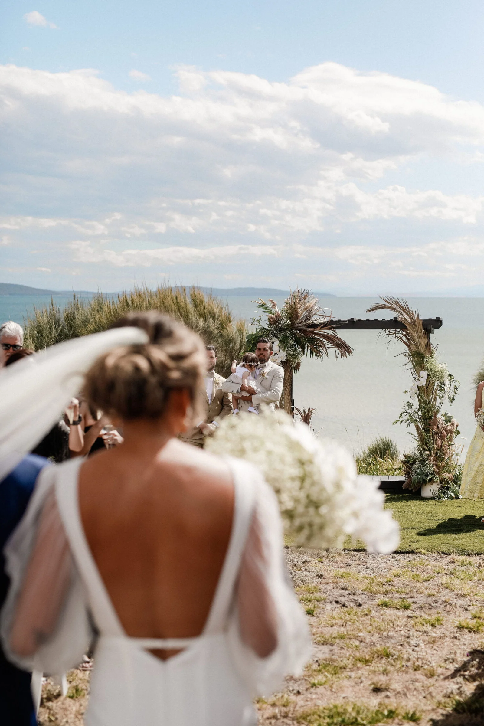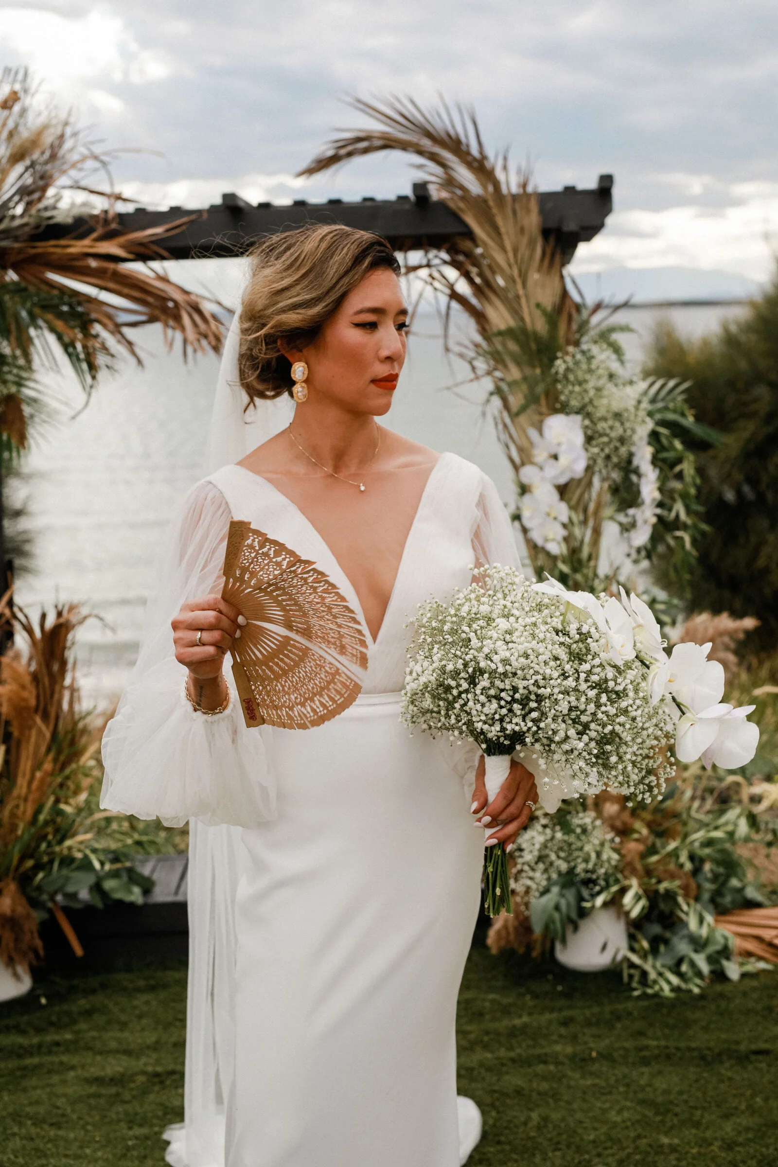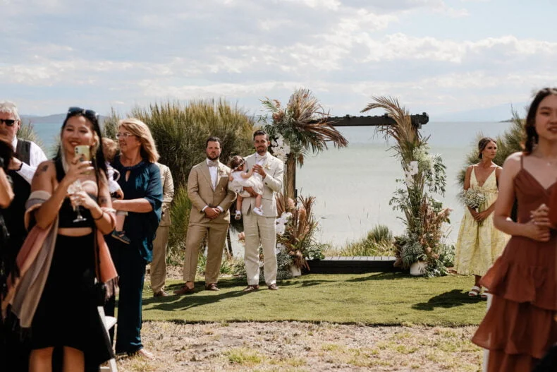 CONTRIBUTING VENDORS Photographer Cassie Sullivan Weddings Florist Billy Button Co Stationery (Place cards) Letters by Jessie, (Invites) Paperless Post Printer Carbon8 Ceremony & reception venue Private property adjoining Dunalley Bay Tasting Hut Catering Sabre Events + Catering Cake Made by family friend Wedding favours Dunalley Bay Distillery Hire Items & Marquee Salters Hire Entertainment & sound hire Baker Boys Band Celebrant Le Lien; Emily Campbell Rings Mejuri Transport Belbins Buses Portaloos Little Island Event Co THE BRIDE Bridal gown designer Chosen by Kyha Bridal Boutique Love Marie Veil eBay Robes In Bed Shoes Cult Gaia Accessories Natalie Alamein Hair Kimberley Temata Makeup The Makeup Bar Hobart Fragrance Black Saffron by Byredo Bridesmaid dresses ASOS THE GROOM Suit, shirt, bow tie & groomsmen suits Mawson Ossa Shoes Urge via The Iconic Watch Nixon