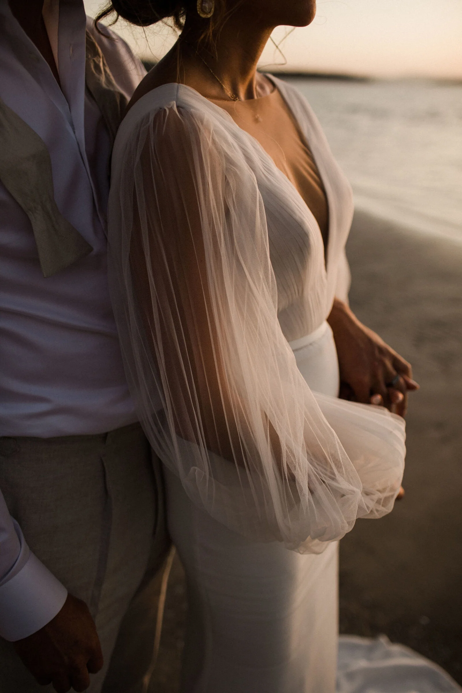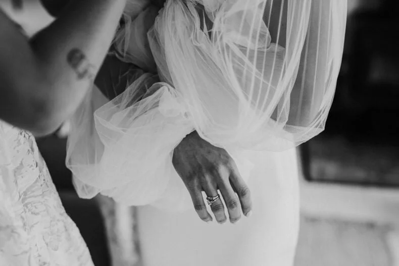 THE DRESS “It was at Love Marie in Camden where I found my dress. Having no specific style in mind, I entered the boutique and perused what was available. The final decision came down to the dress I chose, Melrose by Chosen by Kyha, and another popular one, Hazel. While I liked both, the fit of the Melrose dress and the insight from Amy at Love Marie, mentioning its uniqueness, swayed my choice.”