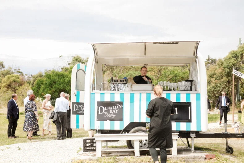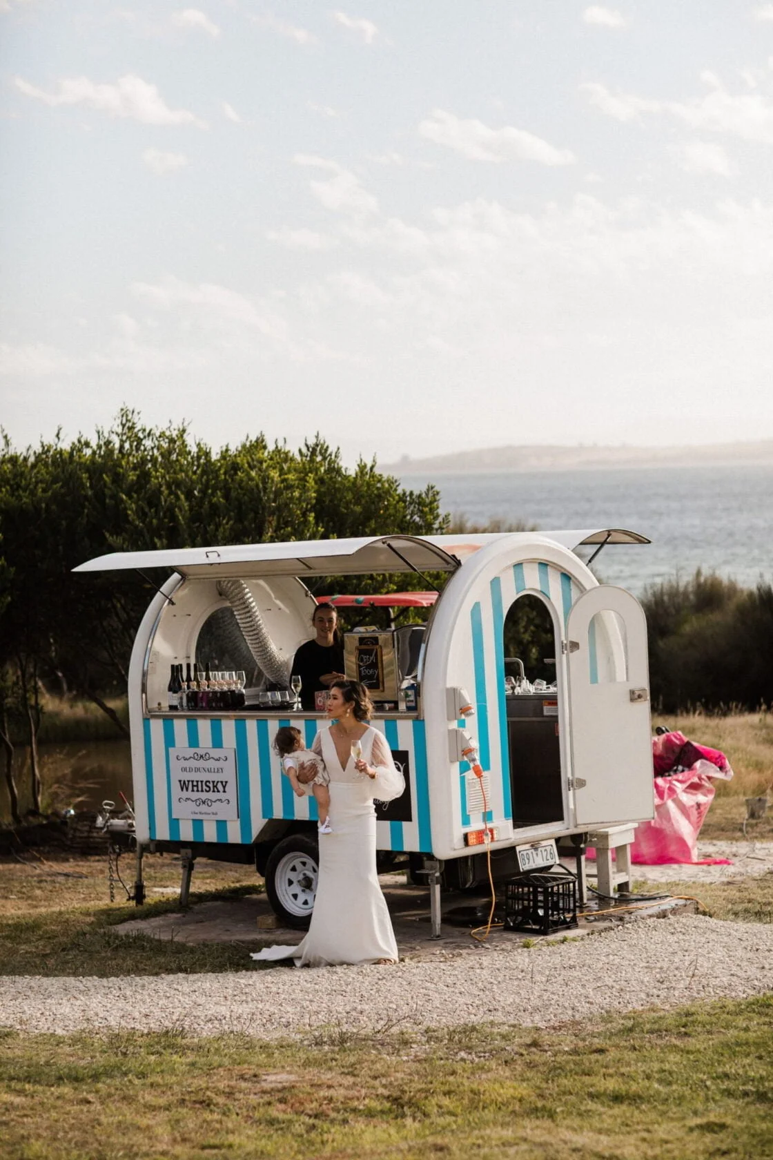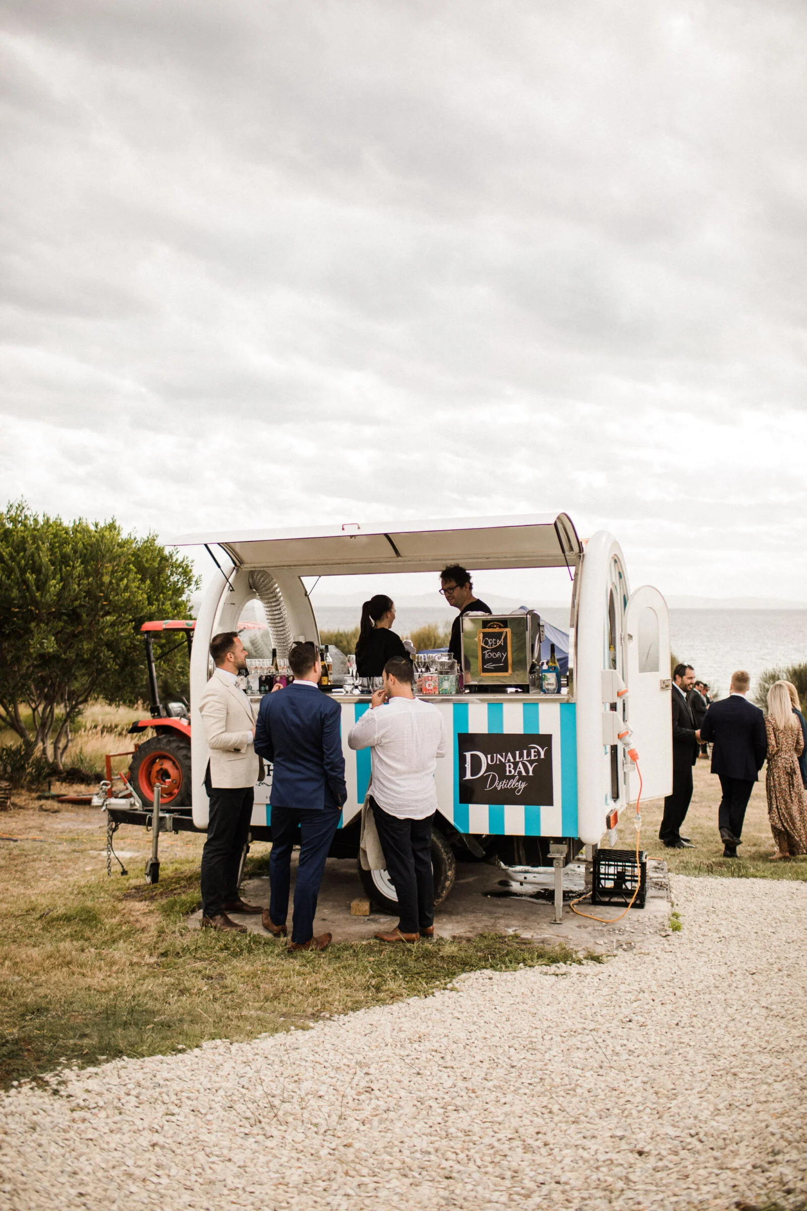 STANDOUT VENDORS “Sabre Catering + Events – the catering and the service they provided was above and beyond. Dunallay Bay Distillery – Mum and her partner Mark opened up their business and their home to us and our friends, and created a beautiful space for us to celebrate. To top it off, they provided us with beautiful 200mL bottles of gin to give to our guests as wedding favours. And Baker Boys Band – everyone loved the vibe and music.”