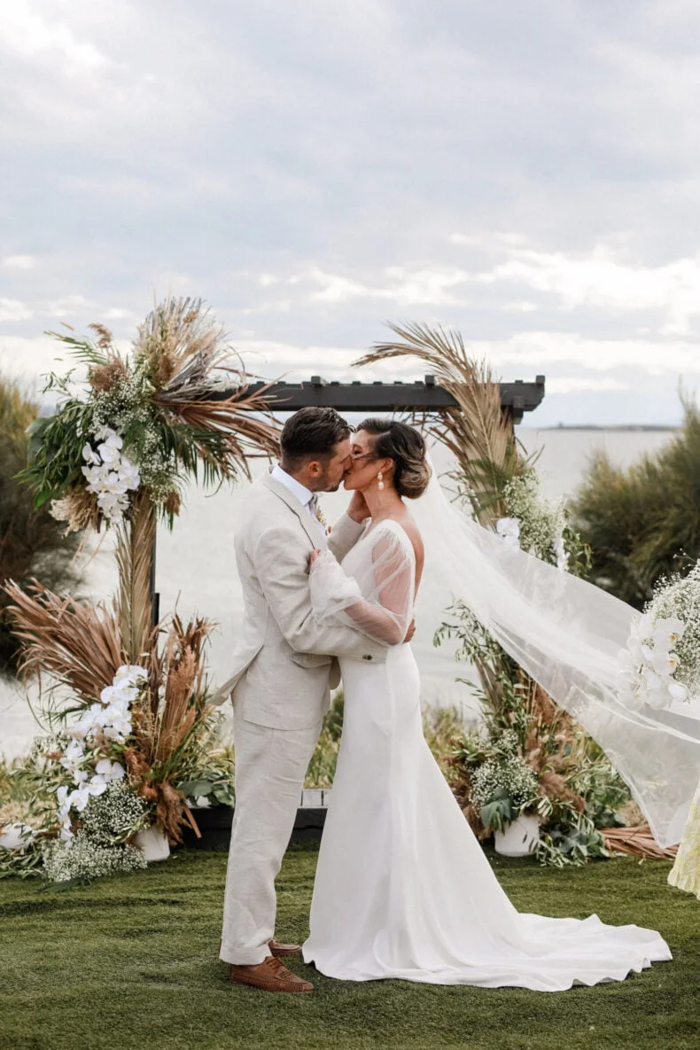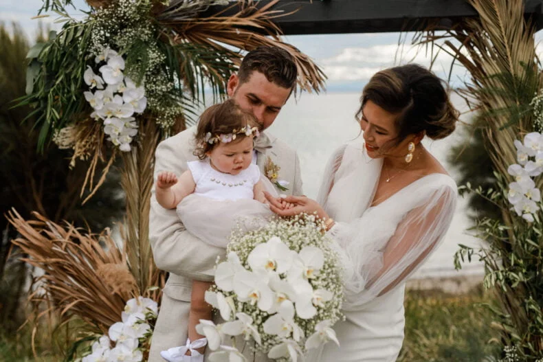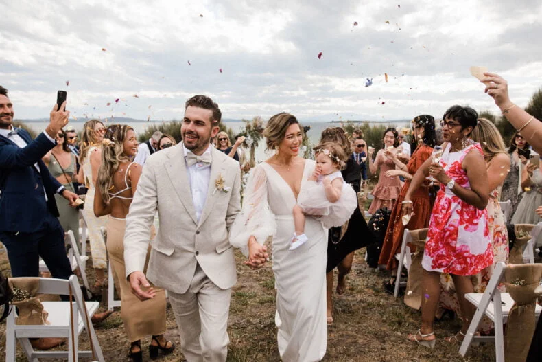 Jo and Matt lived across the street from each other their whole lives, but only met while coming home one night in 2008. “This was followed by a very hot and cold 10-year on-and off ‘fling’” Jo laughs. But in 2021 they were very much ‘on’, getting engaged during a bushwalk near their Sydney home, welcoming a lovely little girl, Scarlett in 2022, then becoming Mr and Mrs at Jo’s mum’s beautiful coastal distillery in Tassie the following year. The day was a total hit, in no small part due to HM favourites Sabre Catering + Events tasked with serving the delish food and Baker Boys Band in charge of the d-floor (as usual “everyone loved the vibe”). Cassie Sullivan Weddings also did a phenom job of capturing all the love-filled moments, and we can’t for you to see..