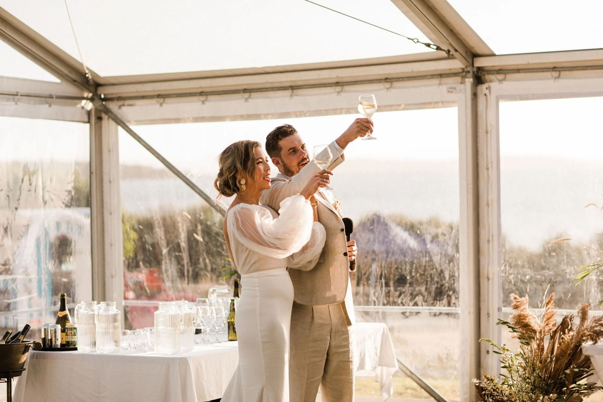 THE VENUE “My mum and partner bought a 1km stretch of land in Tassie that overlooks the water during Covid and on top of that they started a distillery business, called Dunalley Bay Distillery . It wasn’t exactly a no-brainer, but it obviously had some sentimental value, and the view speaks for itself. After some umming and ahhing, we thought, ‘Okay, let’s give it a go’. We thought it would also be a great opportunity to get people to Tassie.”